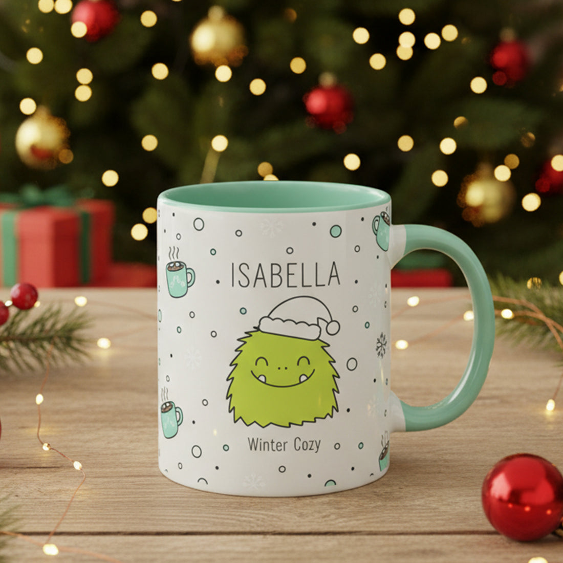 Custom Name Winter Cozy Mug Gift, Cute Christmas Monster Coffee Cup, Personalized Holiday Mug for Kids & Family, Festive Hot Cocoa Cup| Mug 26