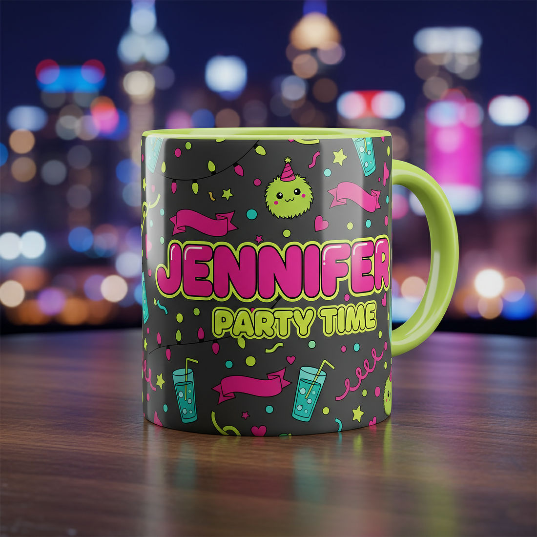 Custom Name Neon Party Mug Gift for Friends, Personalized Colorful Coffee Cup for Birthday Celebration, Cute Fun Drink Cup for Party Lovers| Mug 03