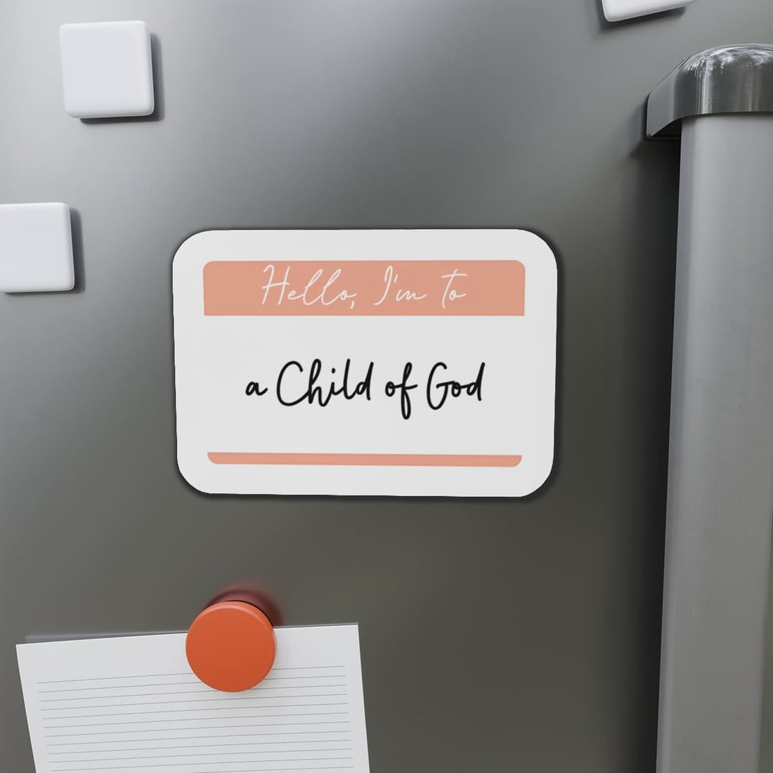 STK65 Child of God Name Tag Sticker – Christian Vinyl Faith Decal for Laptop, Water Bottle, Journal – Cute Hello My Name Is Design