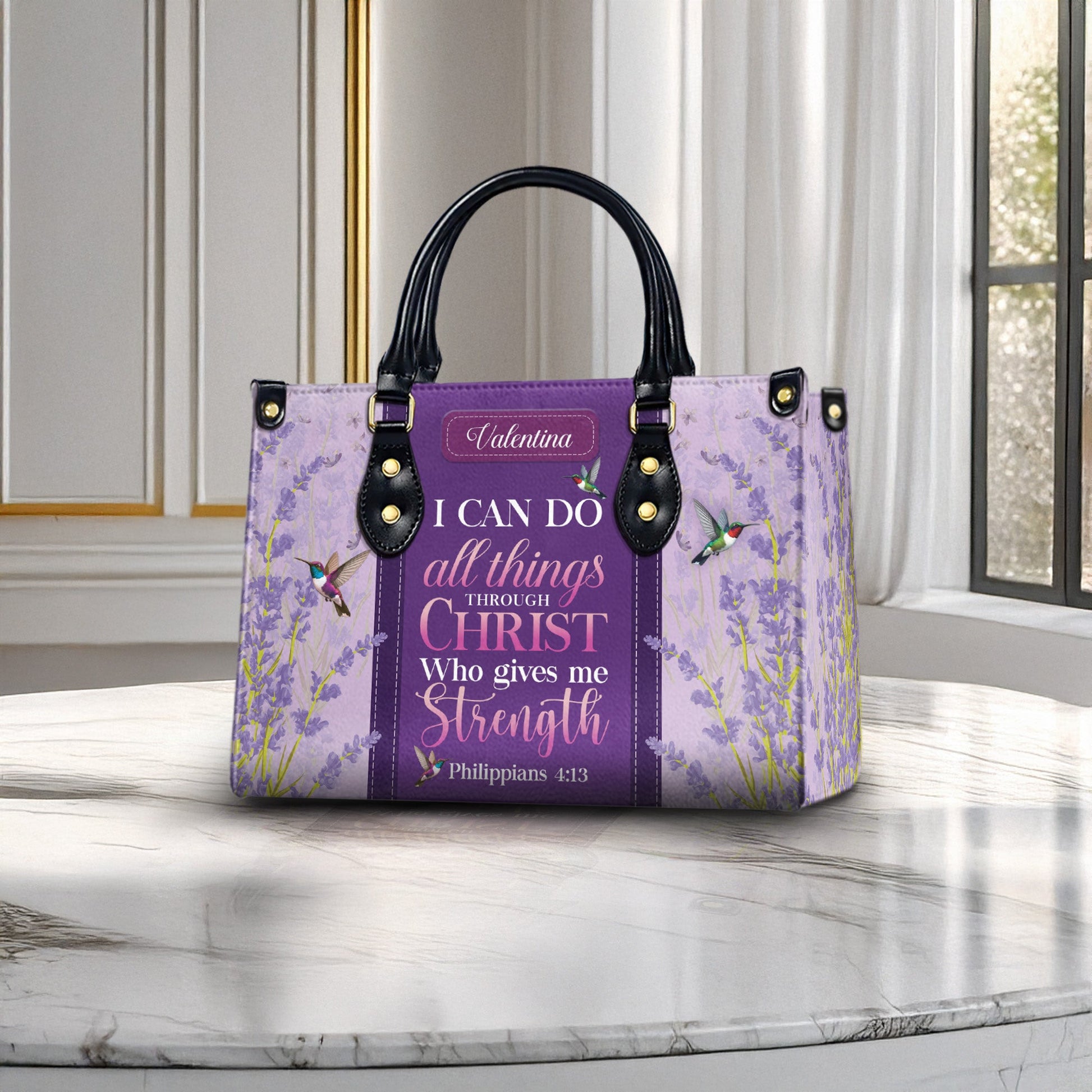 🌸 Personalized Christian Handbag – Philippians 4:13 | Elegant Faith-Inspired Gift for Women 🌸