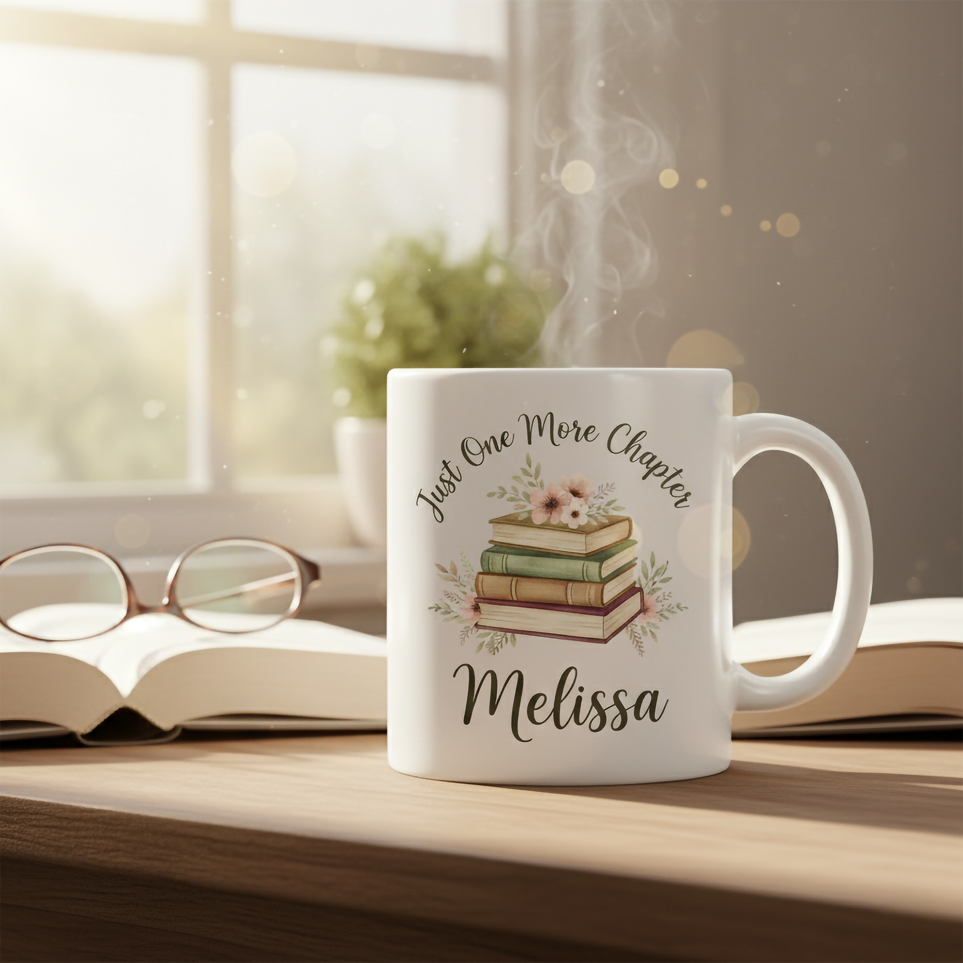 For book lovers, there’s something magical about the quiet moments spent with a warm drink and a good story. This personalized mug is made for those who always say “just one more chapter” — and truly mean it. It brings together the comfort of slow mornings, the peaceful rhythm of turning pages, and the simple joy of escaping into another world. Add your name to the design and make each sip part of your reading ritual, a gentle reminder that you deserve these calm, cozy moments with your favorite stories. And if you're gifting it, you’re not just giving a mug — you’re giving someone a small daily escape, a little piece of comfort they can hold.