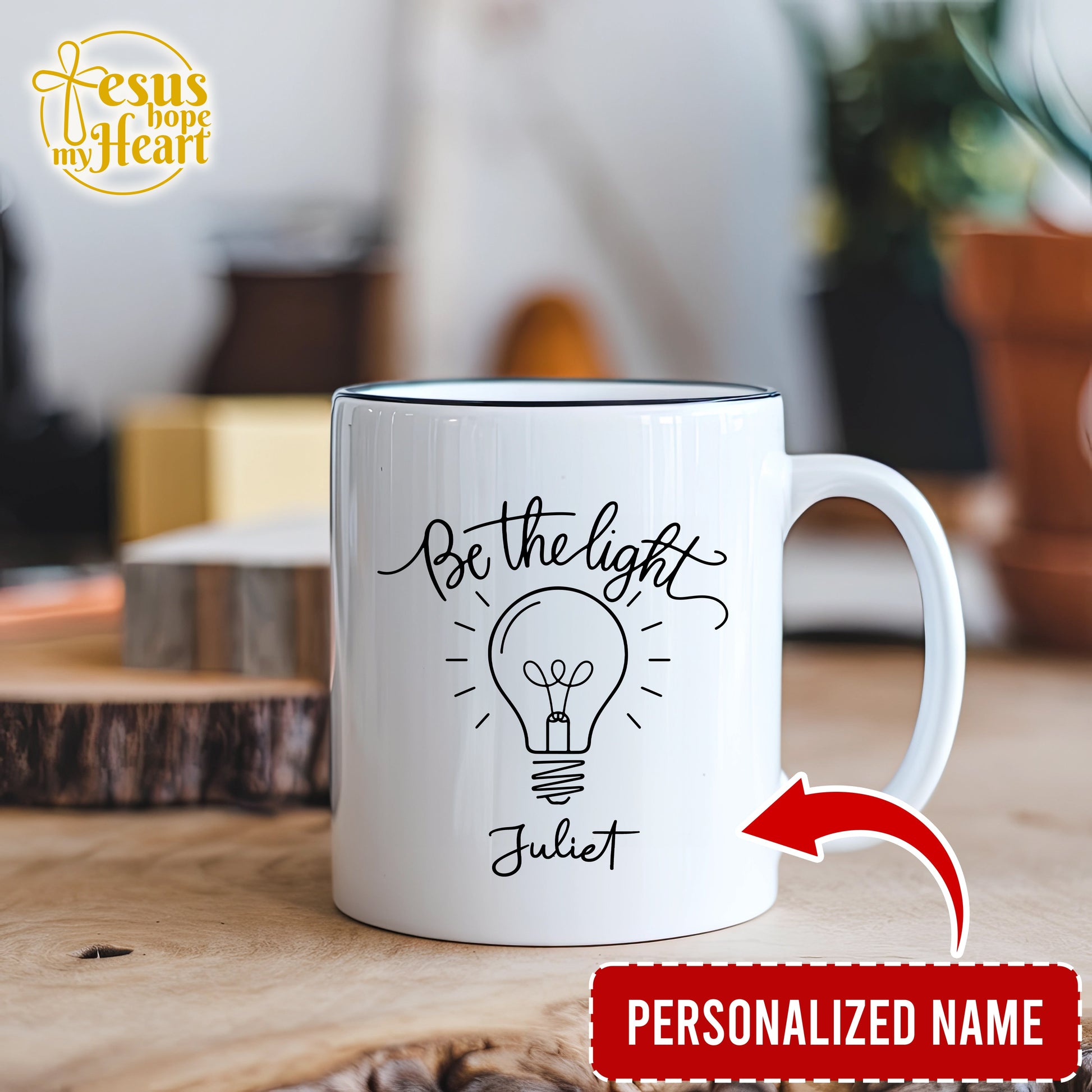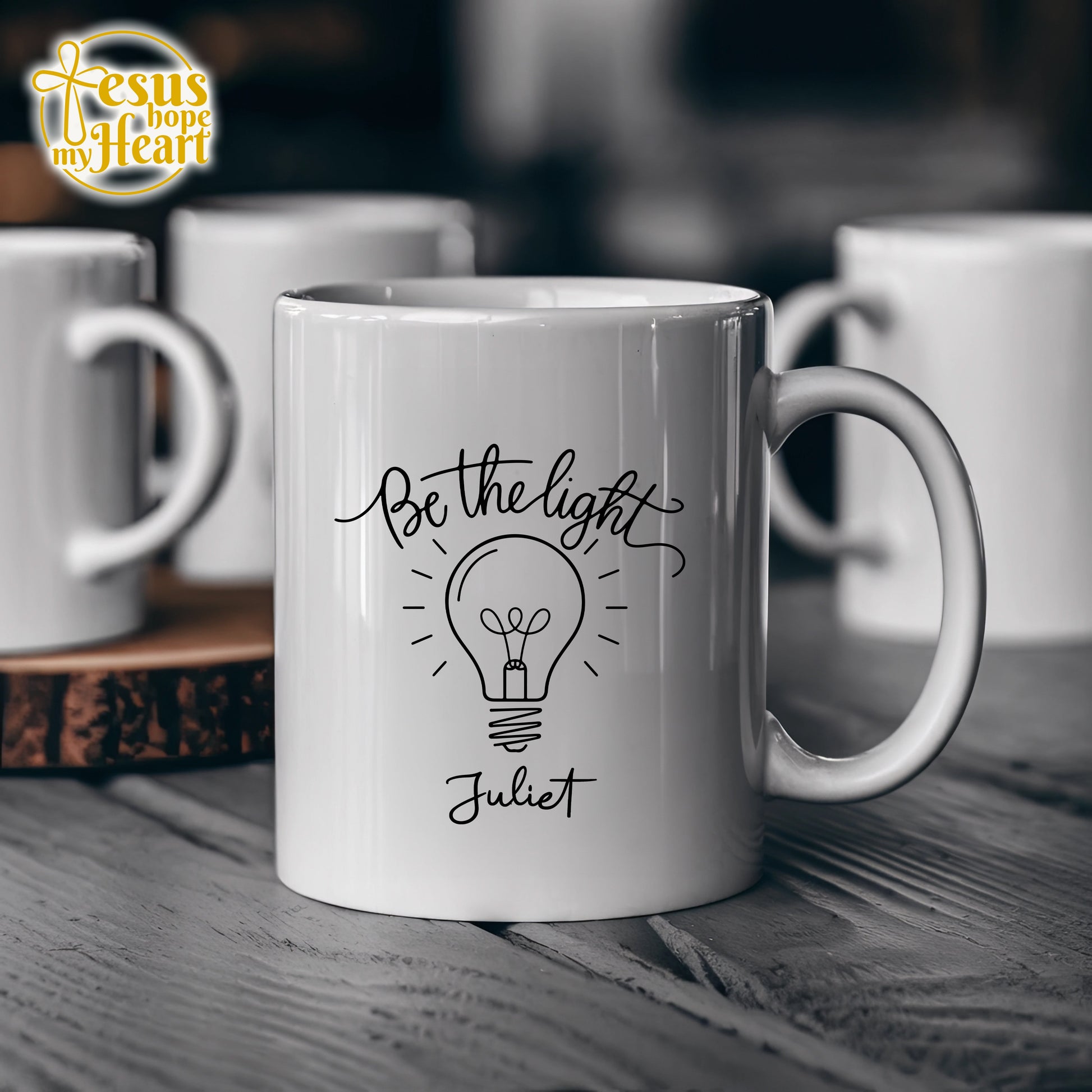 Be The Light Personalized Mug, Custom Christian Gift Mug, Faith Coffee Cup, Inspirational Mug for Her, 11oz 15oz Ceramic
