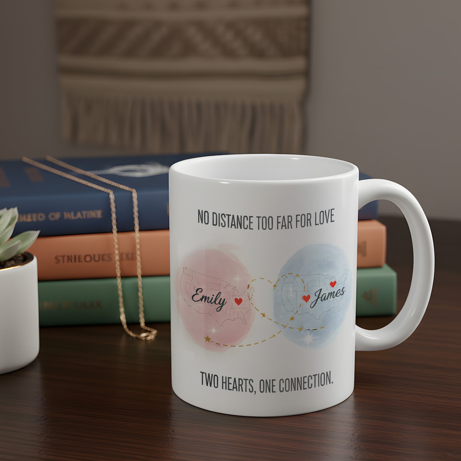 Personalized Mug, Custom Name Mug, Long Distance Love Mug, Couples Coffee Cup, Two Hearts One Connection Mug, Custom Couple Mug| Mug 85
