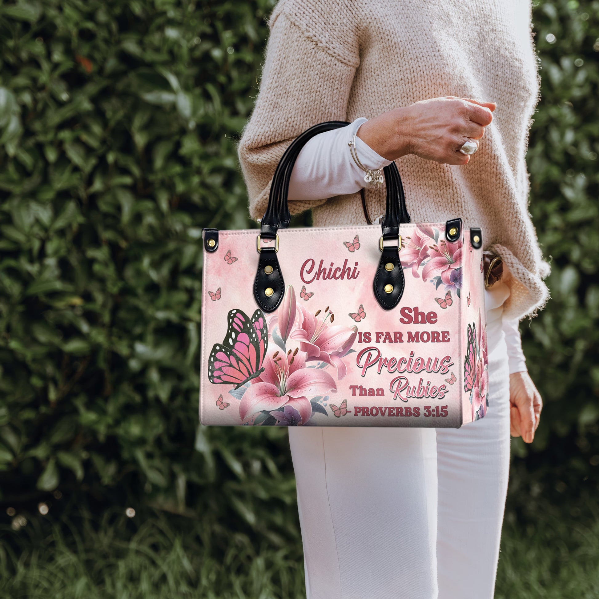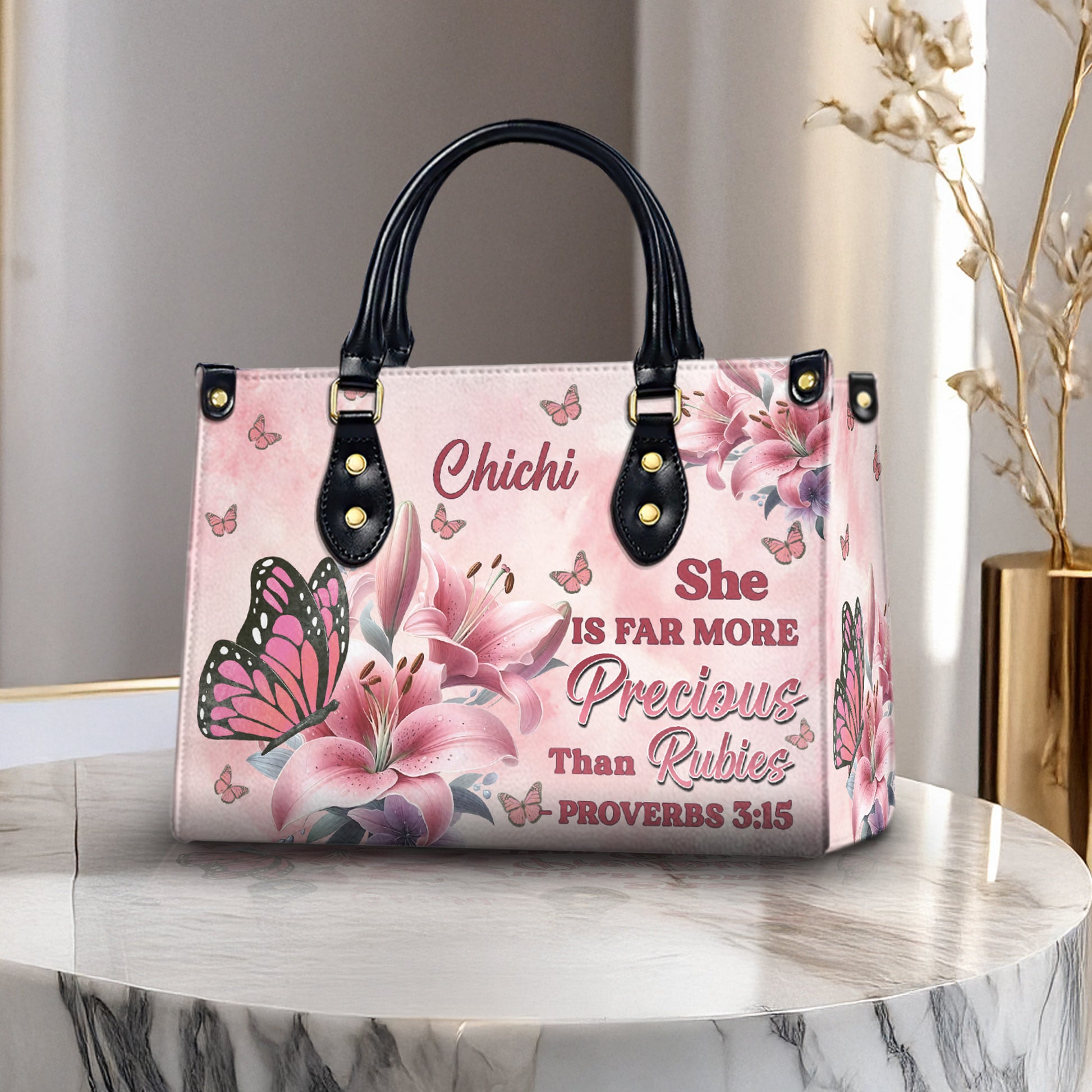 HB40-Personalized Christian Handbag for Women, Proverbs 3:15 Gift, Far More Precious Than Rubies, Pink Scripture Purse for Mom, mother's day gift