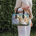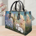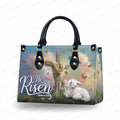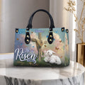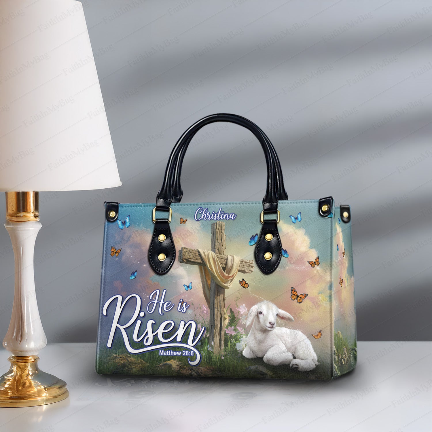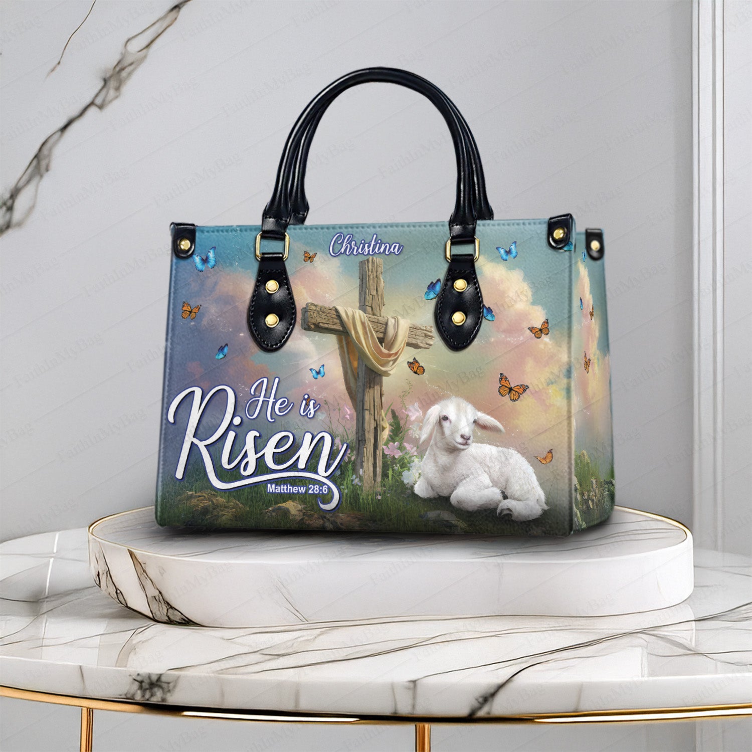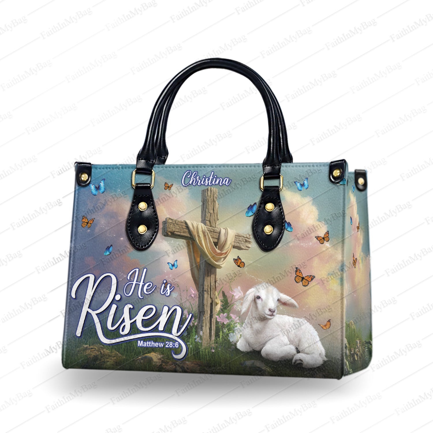 HB23-Custom Name Christian Leather Handbag - He Is Risen Easter Bag, Jesus Cross, Lamb, Personalized Religious Gift for Women, Mom, Jesus Lovers.
