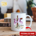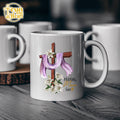 This beautifully designed Christian mug is crafted with love and faith. Featuring a wooden cross adorned with lilies and a purple cloth, it serves as a reminder of grace, devotion, and the power of prayer.