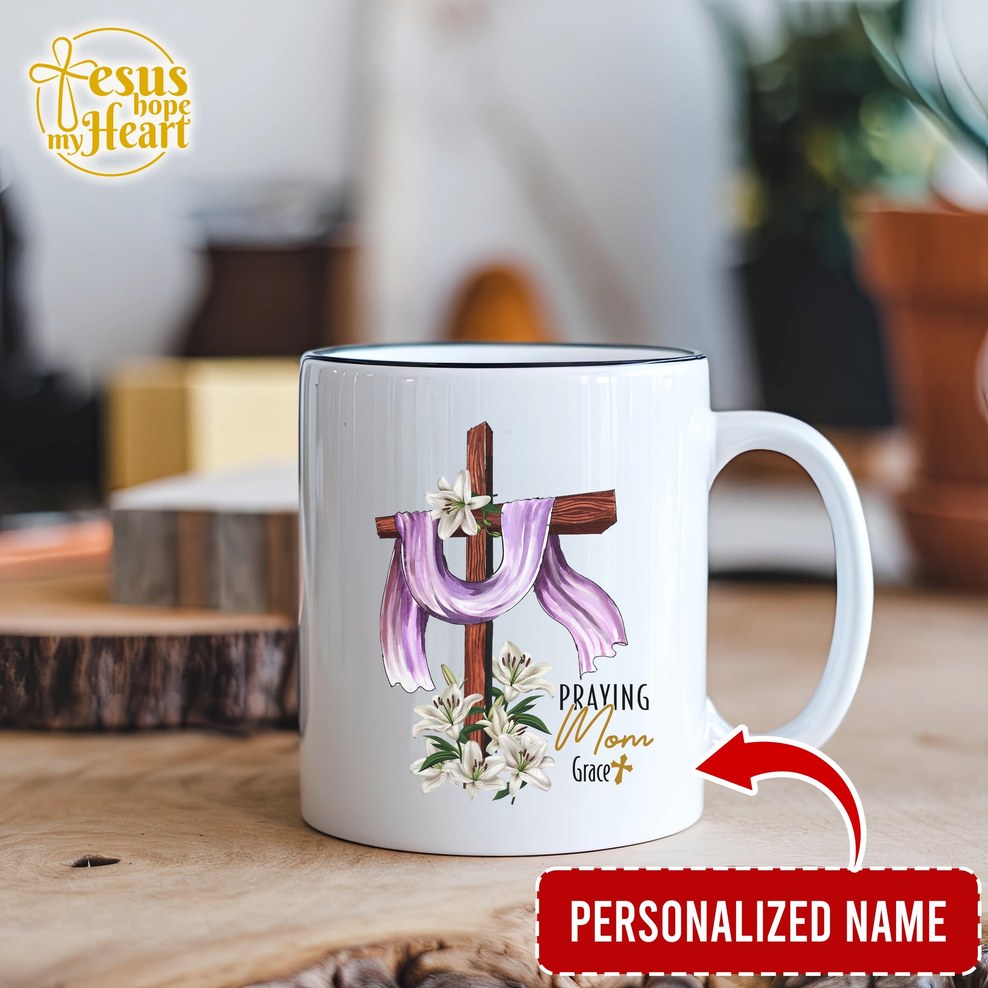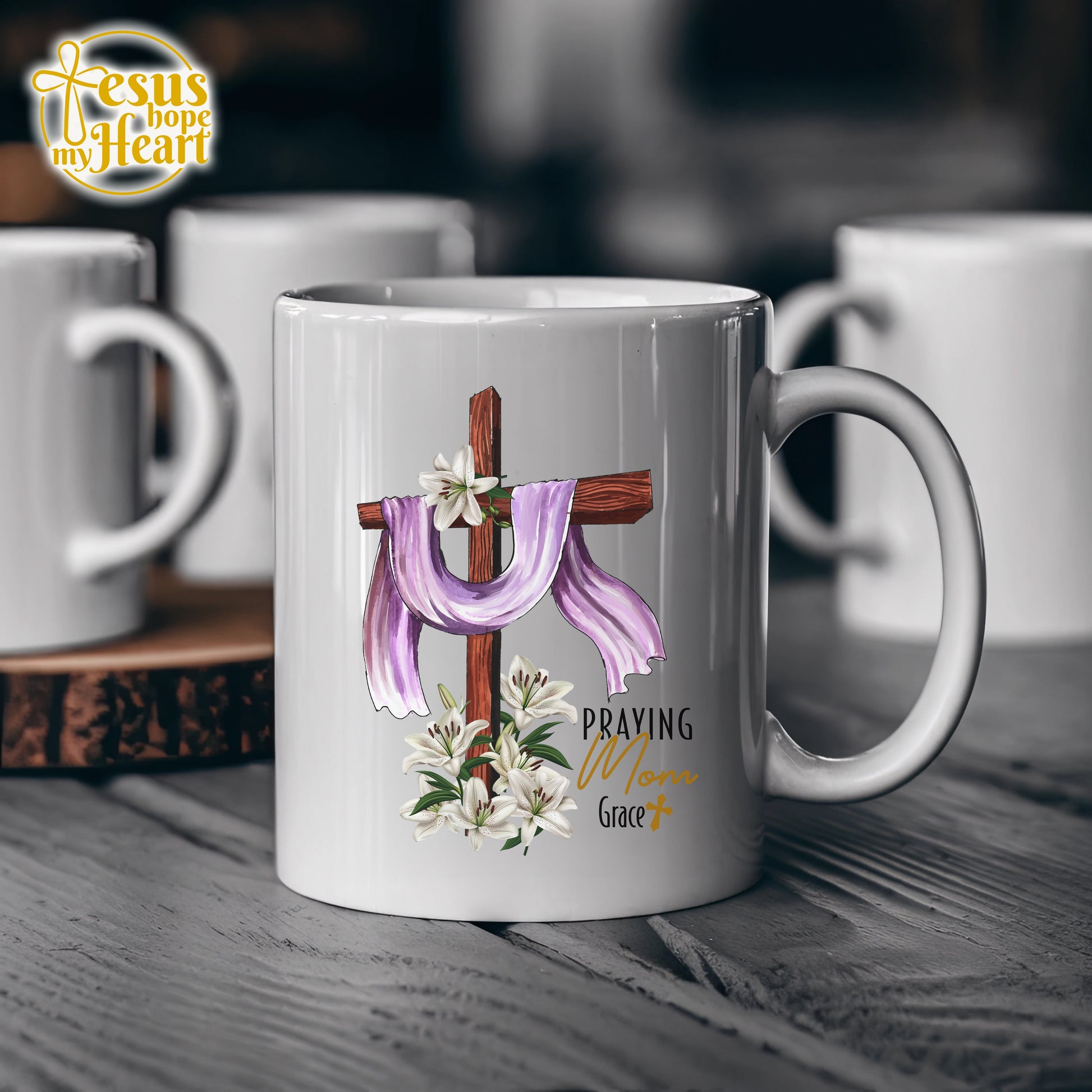 Christian Mom Mug - Praying Mom Coffee Cup - Religious Easter Gift - Faith Cross Mug - Christian Gift for Women