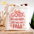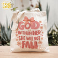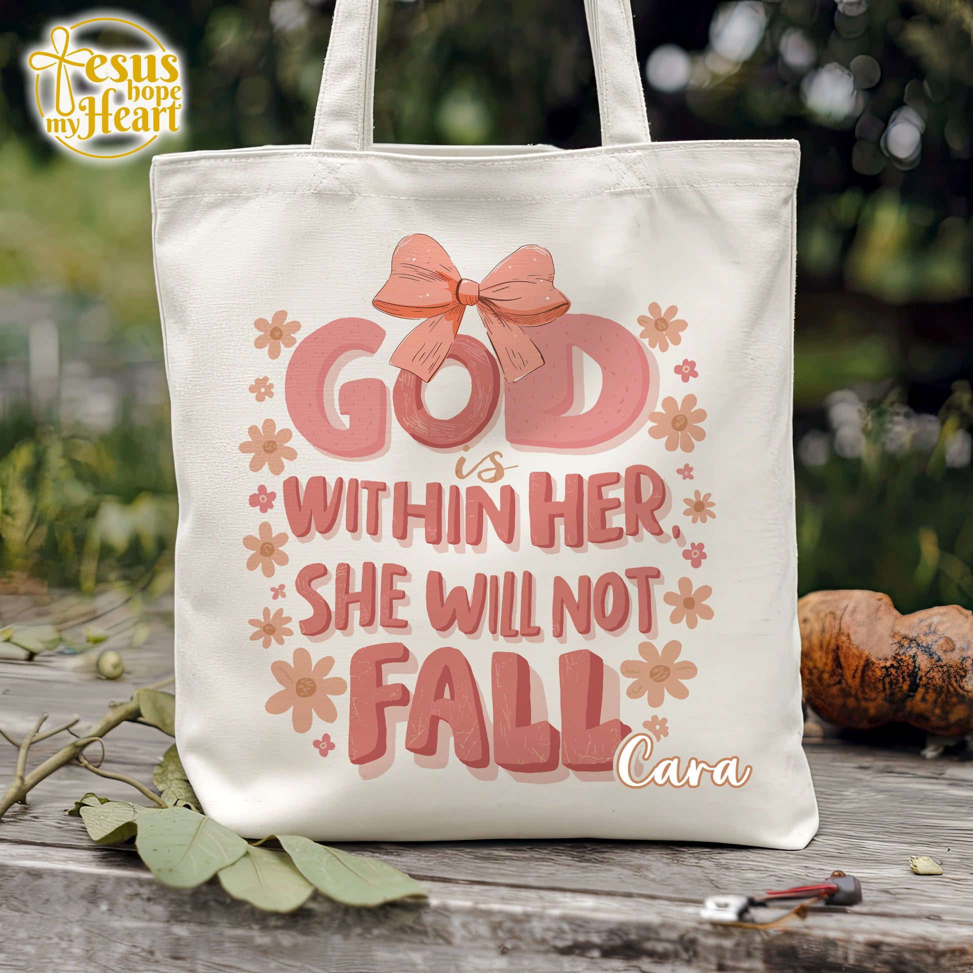 Christian Tote Bag - God Is Within Her, She Will Not Fall - Religious Gift - Faith Bible Verse Bag - Christian Gift for Women
