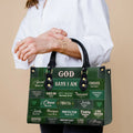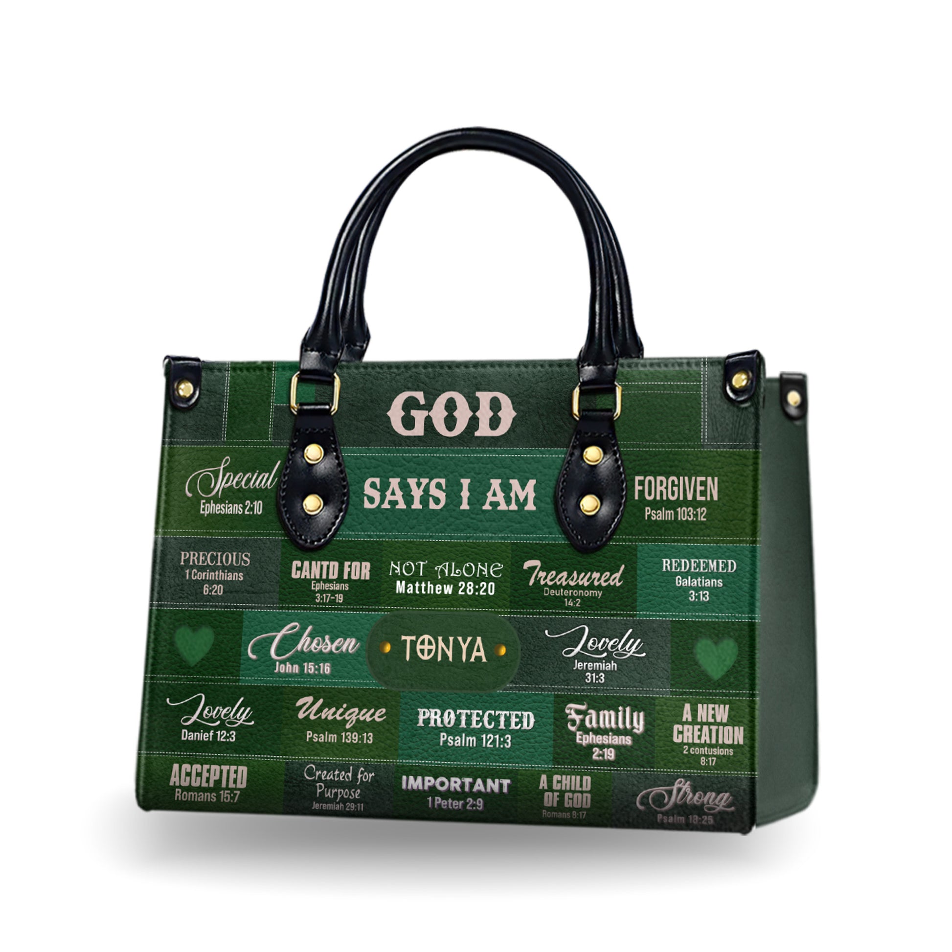 HB49-Christianartbag Handbags, God Says I Am Leather Handbag Green, Personalized Bags, Gifts for Women, Christmas Gift.