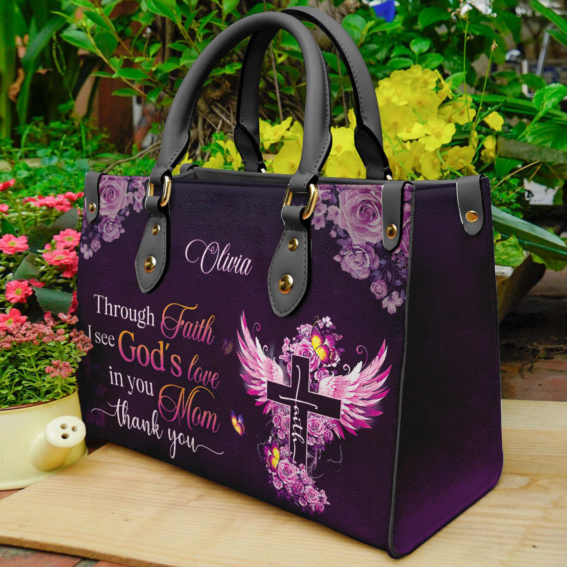 HB47-Christianartbag Handbags, Personalized Bags Through faith I see God's love in you Leather, Gifts for Women