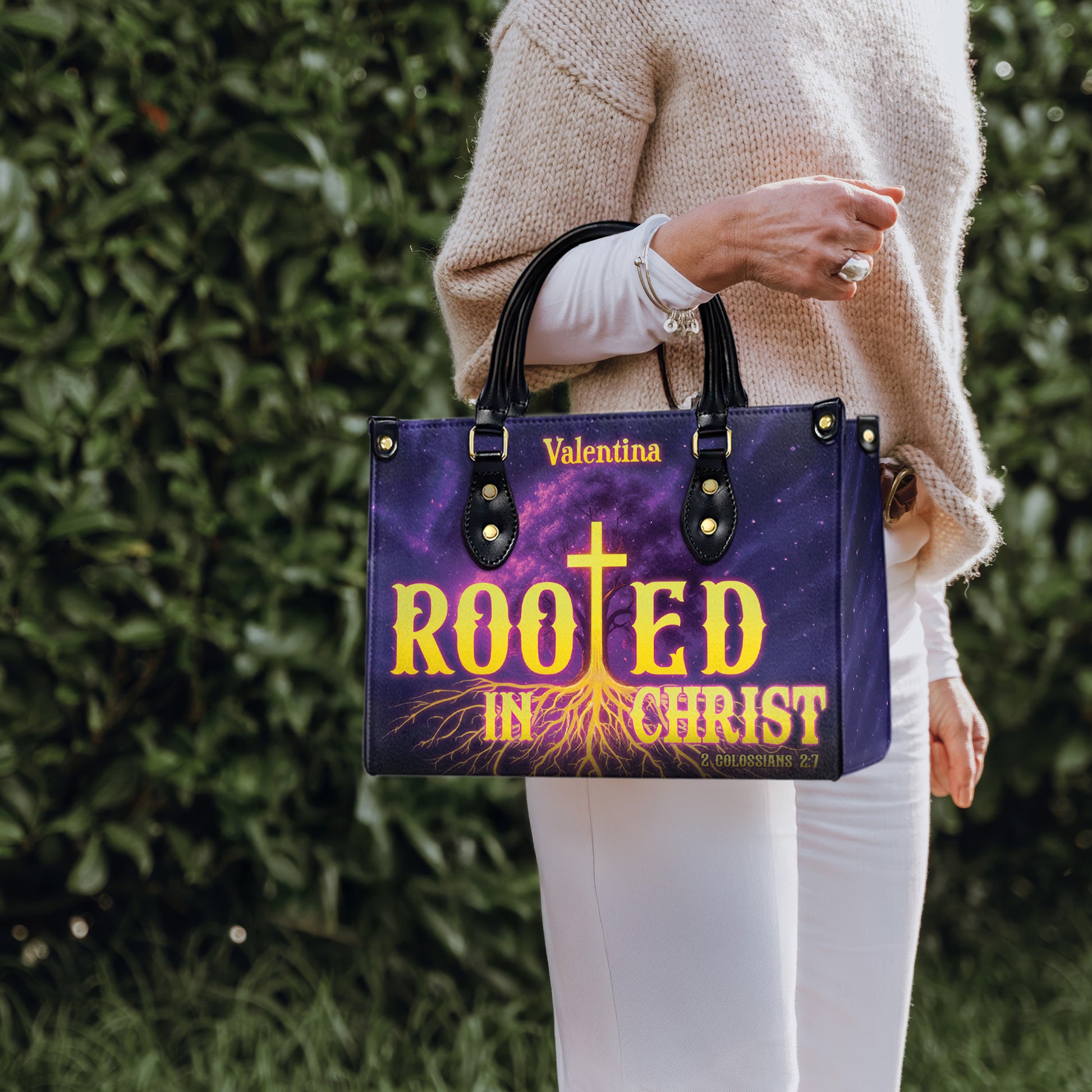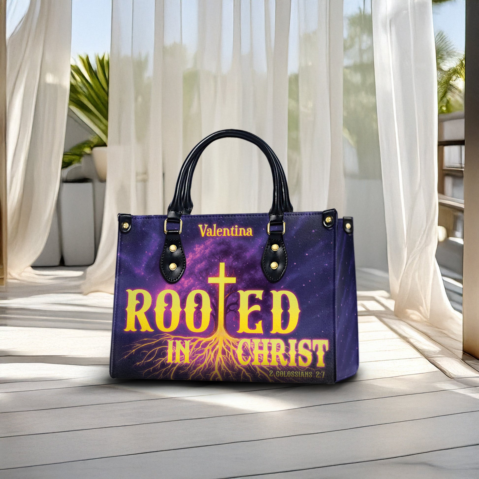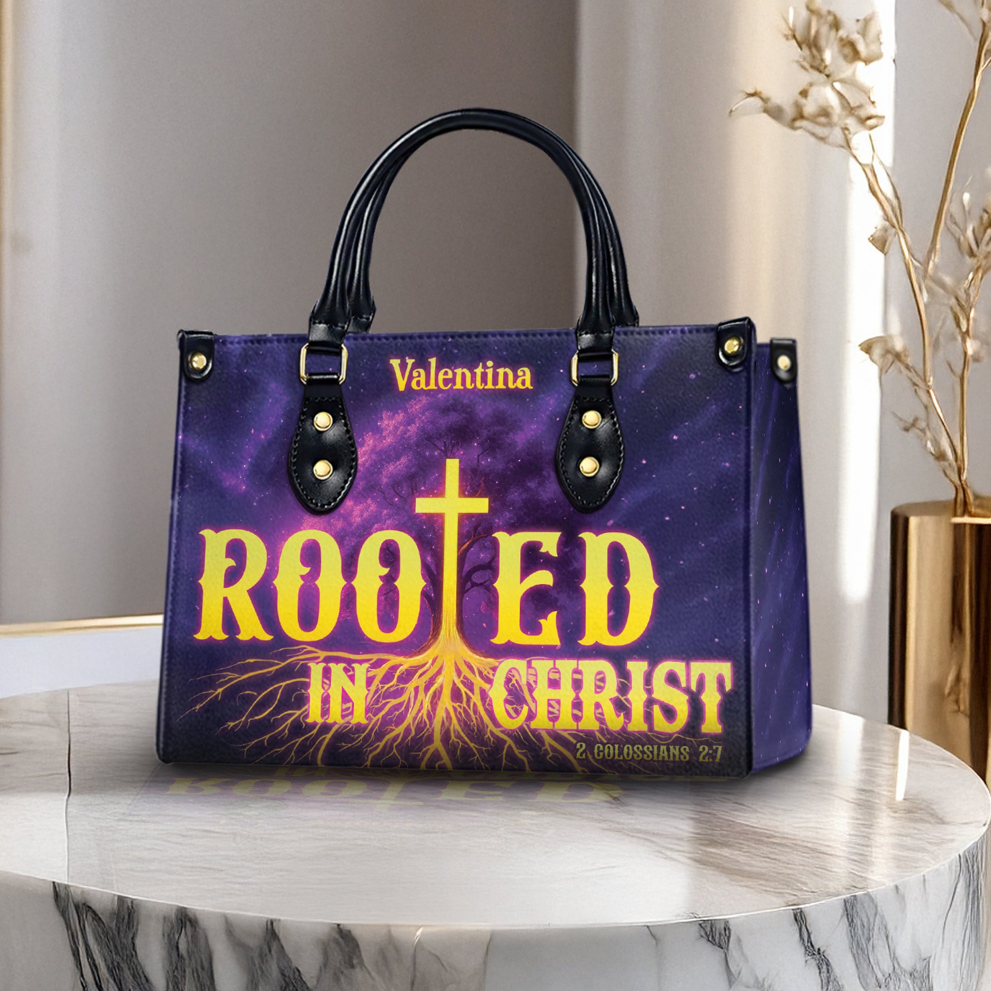 HB27-Personalized Christian Handbag - Rooted in Christ Purse for Women, Religious Faith Gift, Bible Verse Bag, Custom Name Tote