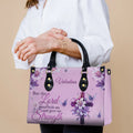 HB65-custom name christian handbag for women, lavender cross floral purse with butterflies, 2 timothy 4 17 verse the lord gave me strength bag