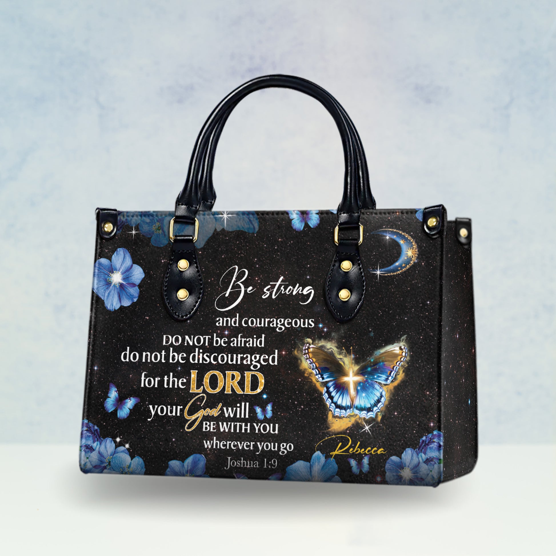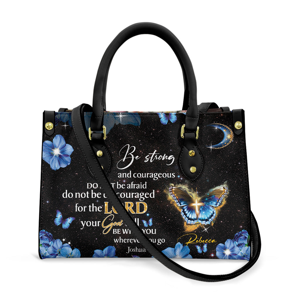 HB60-custom name christian handbag for women, butterfly and flower purse with joshua 1 9 verse, be strong faith scripture bag