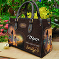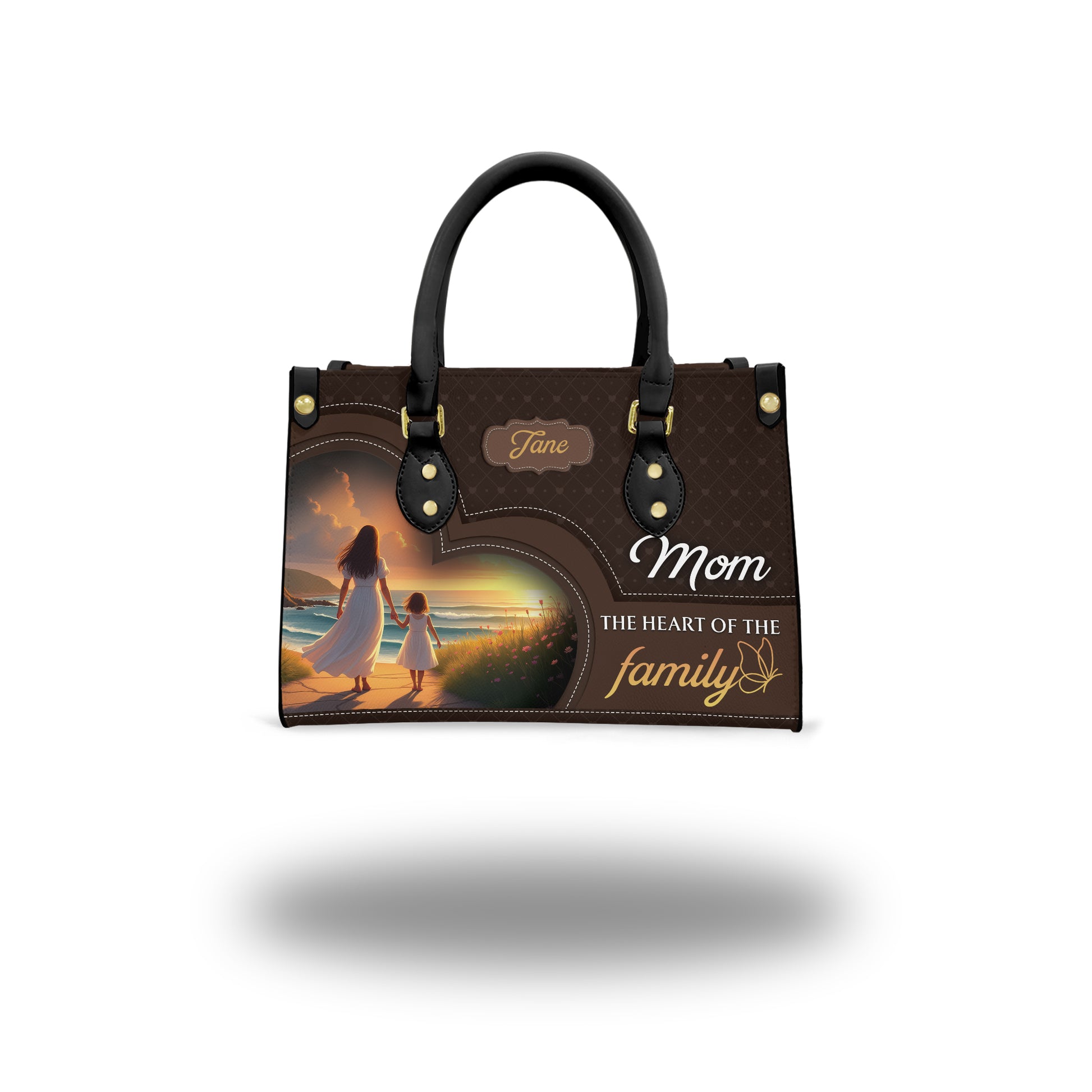 Celebrate the heart of your home with this beautifully personalized "Mom - The Heart of the Family" handbag. Thoughtfully designed with a touching sunset scene of a mother and child, this elegant bag symbolizes love, guidance, and unwavering strength. The soft leather feel and detailed artwork make it a cherished gift for mothers of faith and grace.