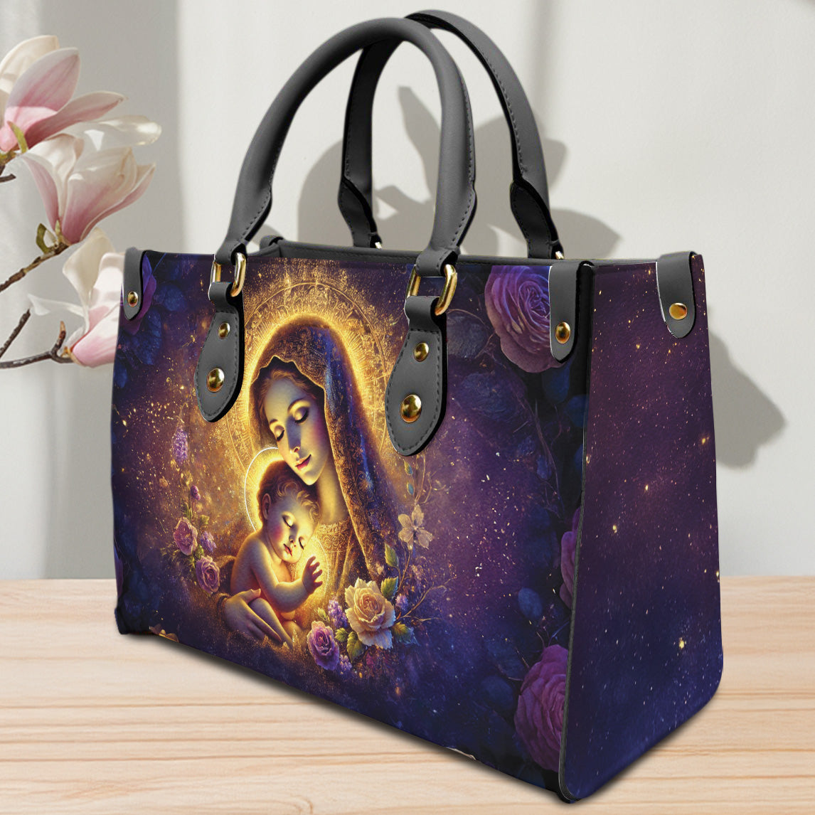 HB81-Mary and Baby Jesus Handbag – Christian Catholic Purse – Blessed Virgin Tote – Religious Gift for Women – Spiritual Mother's Bag