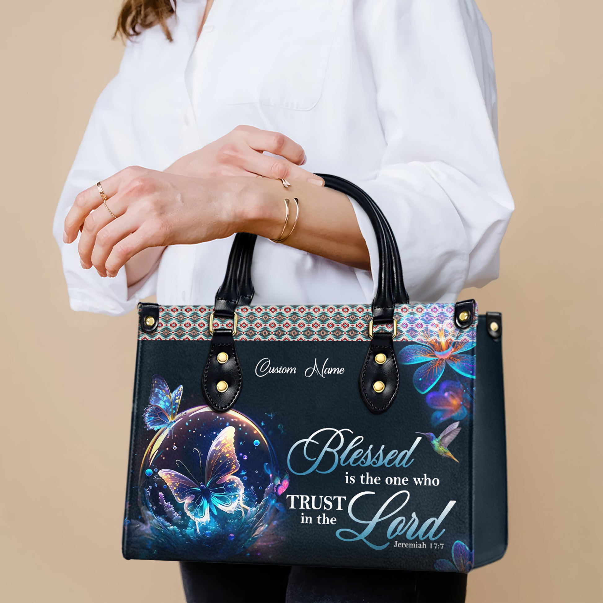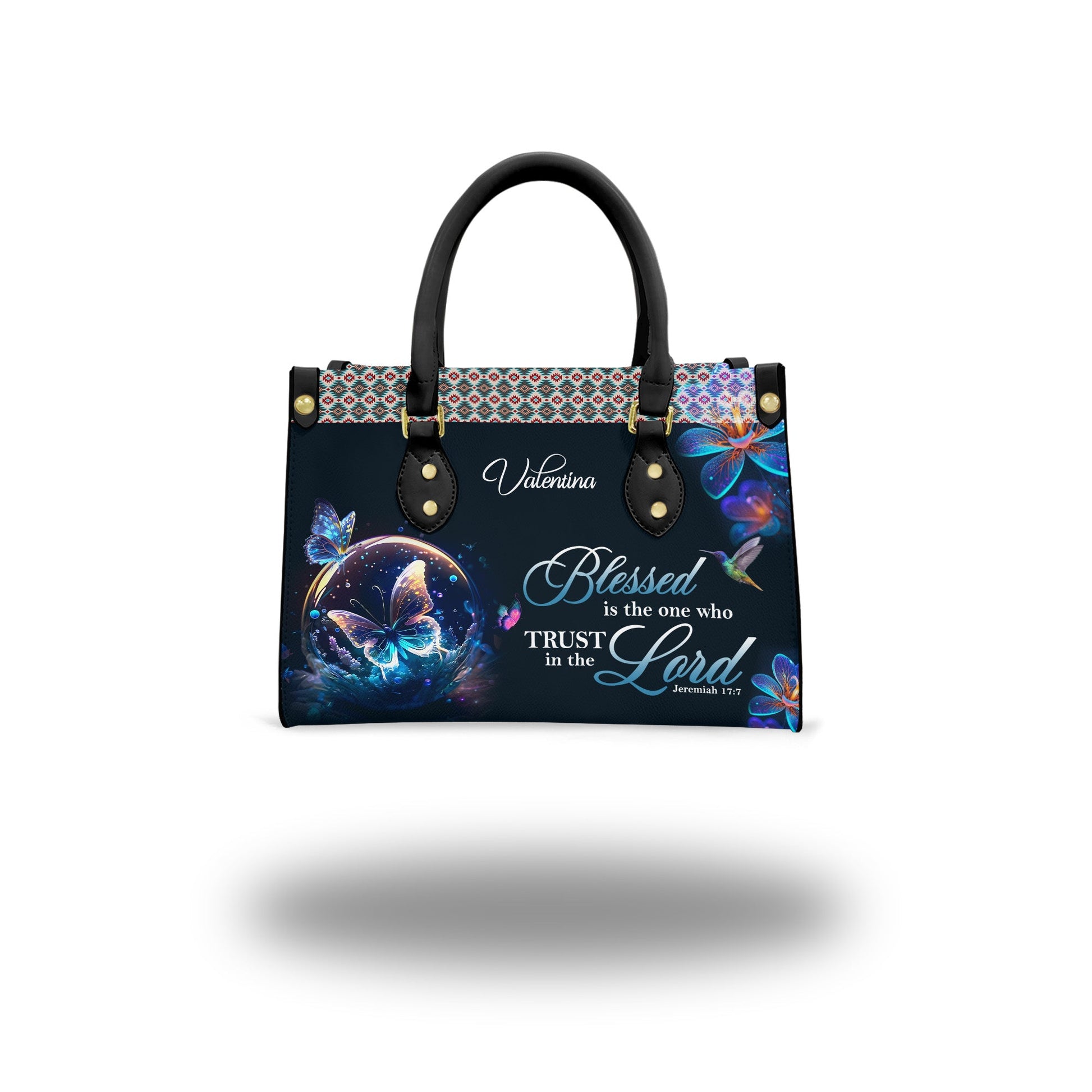 Let your faith shine with every step you take. This elegant Christian handbag features glowing butterflies, blooming flowers, and a radiant reminder from Jeremiah 17:7. Personalize it with your name and carry a powerful message of trust, hope, and divine strength wherever you go.