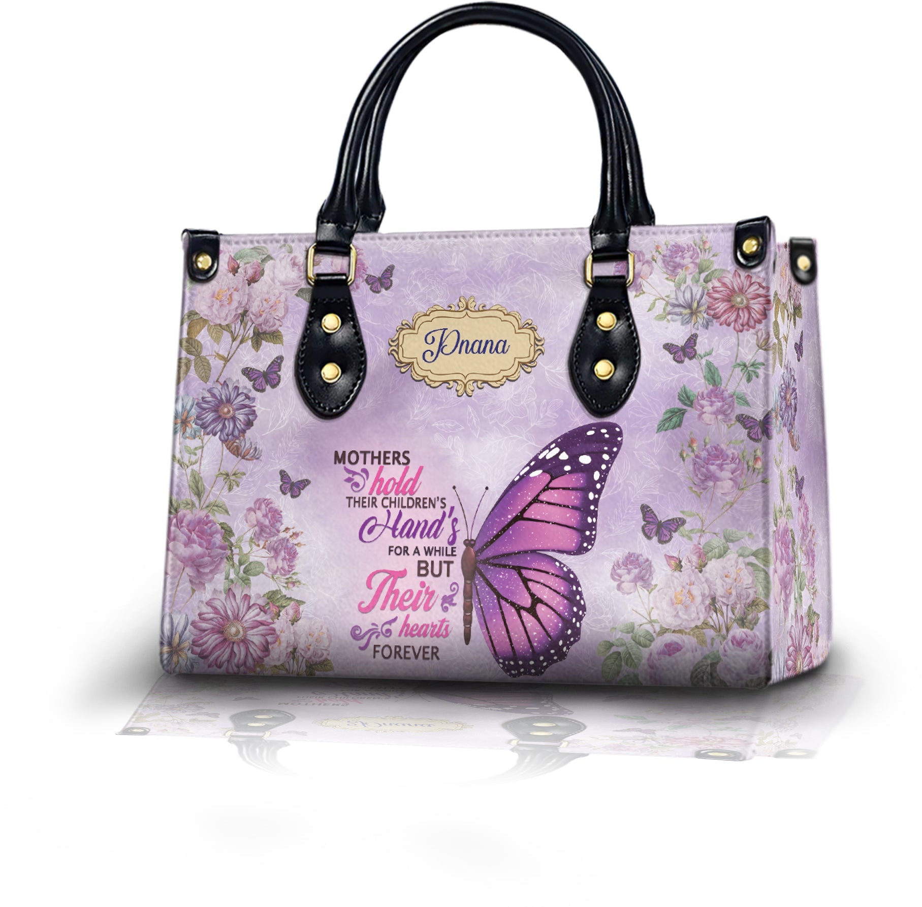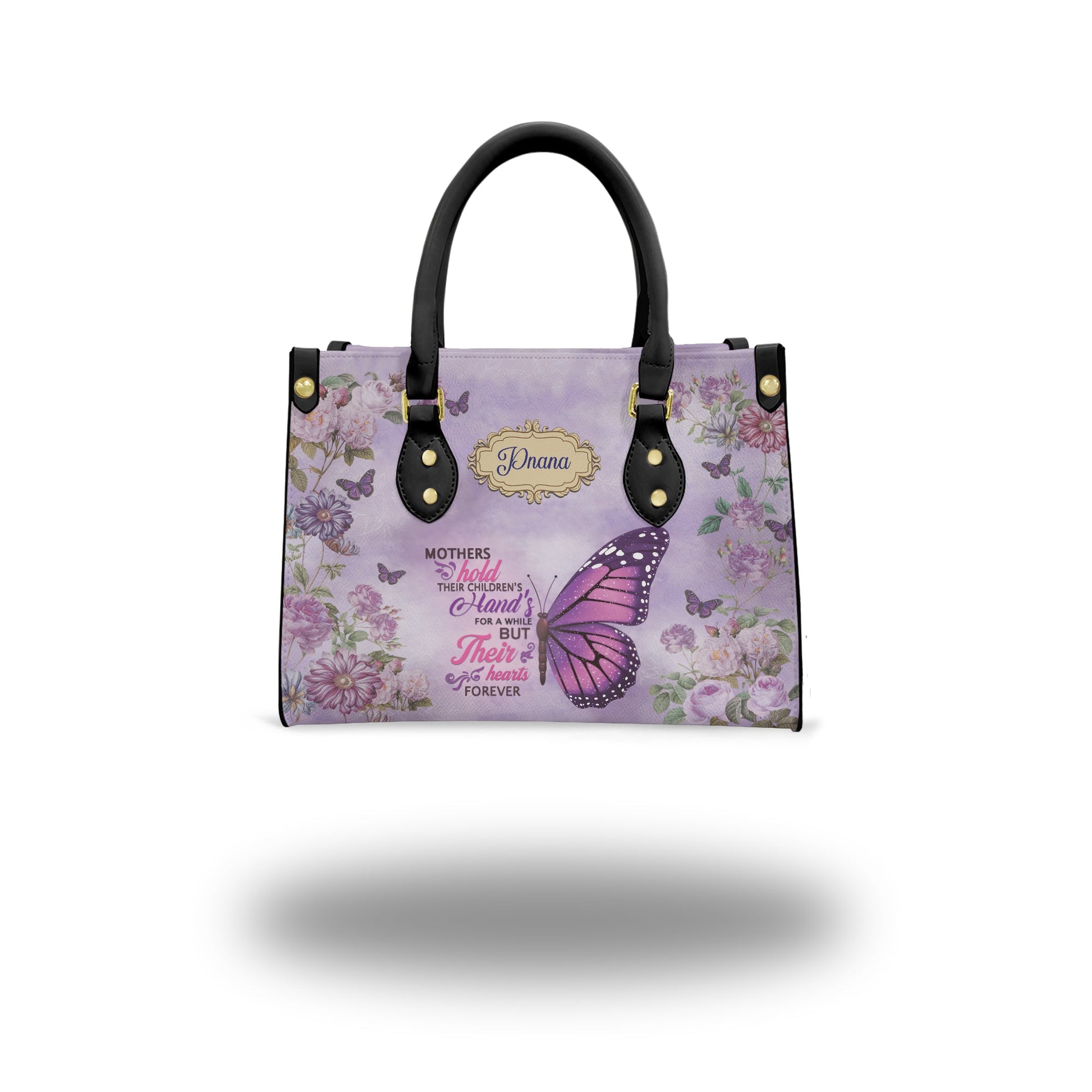 HB88 - Personalized Mom Butterfly Handbag โ Mothers Hold Their Children's Hand But Heart Forever โ Floral Christian Gift for Her