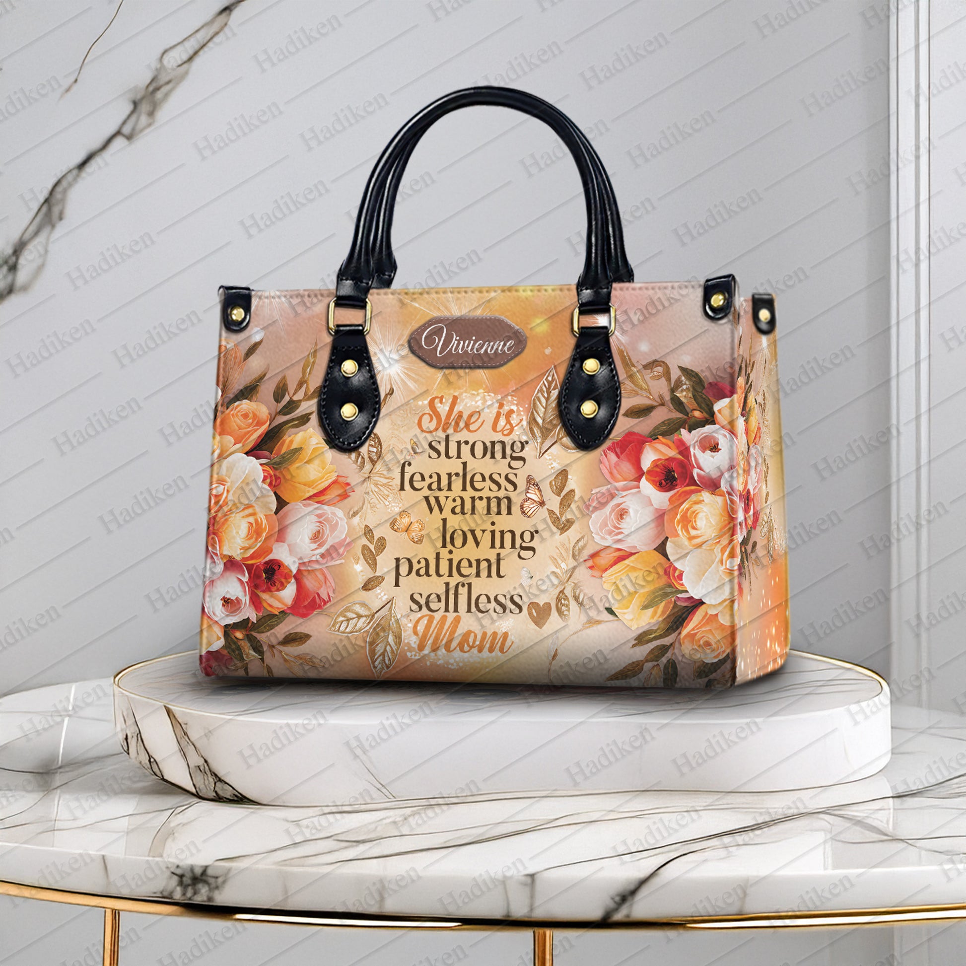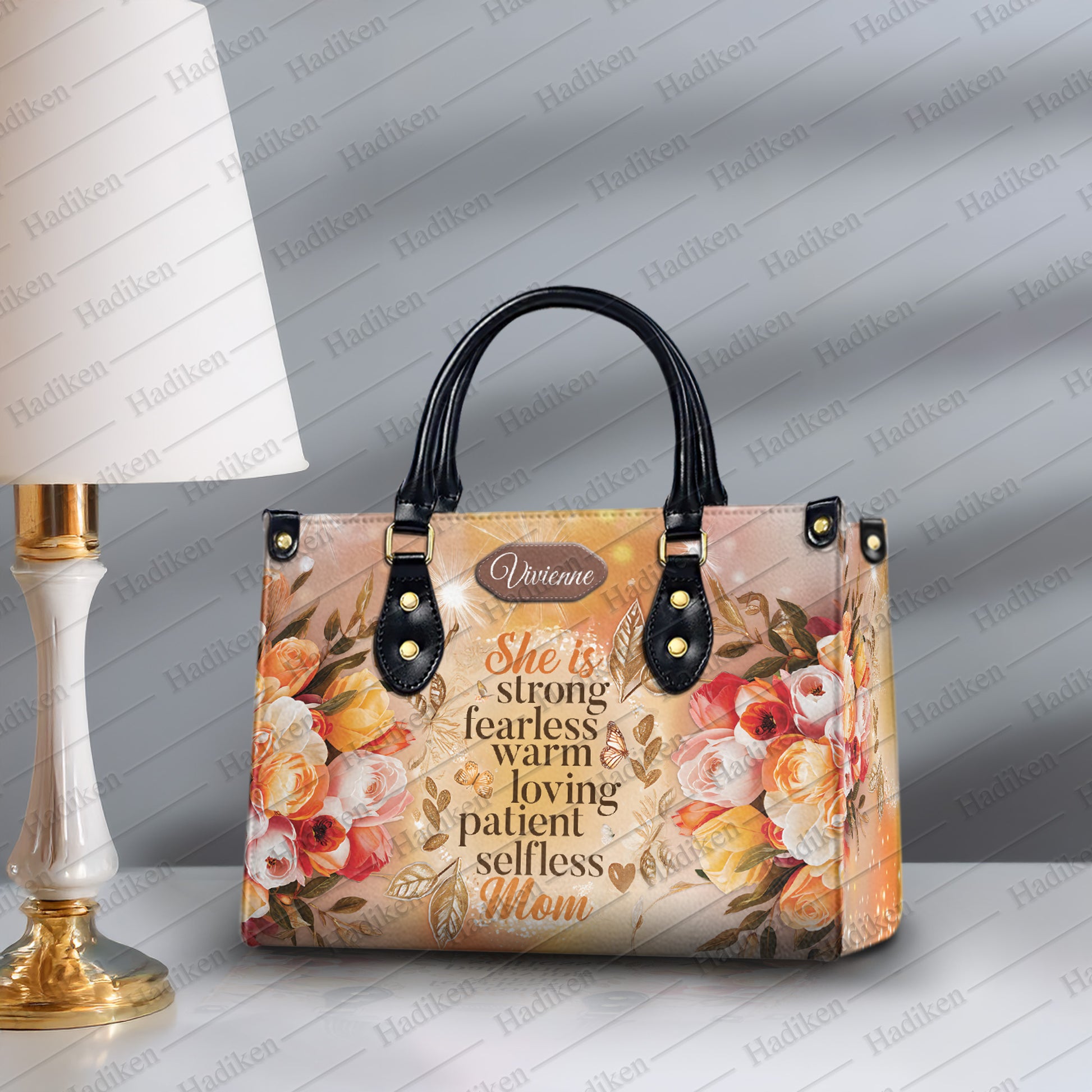 HB91 - Custom Name Floral Handbag for Mom – Strong Fearless Loving Quote Purse – Personalized Mother’s Day Gift – Elegant Christian Tote Bag