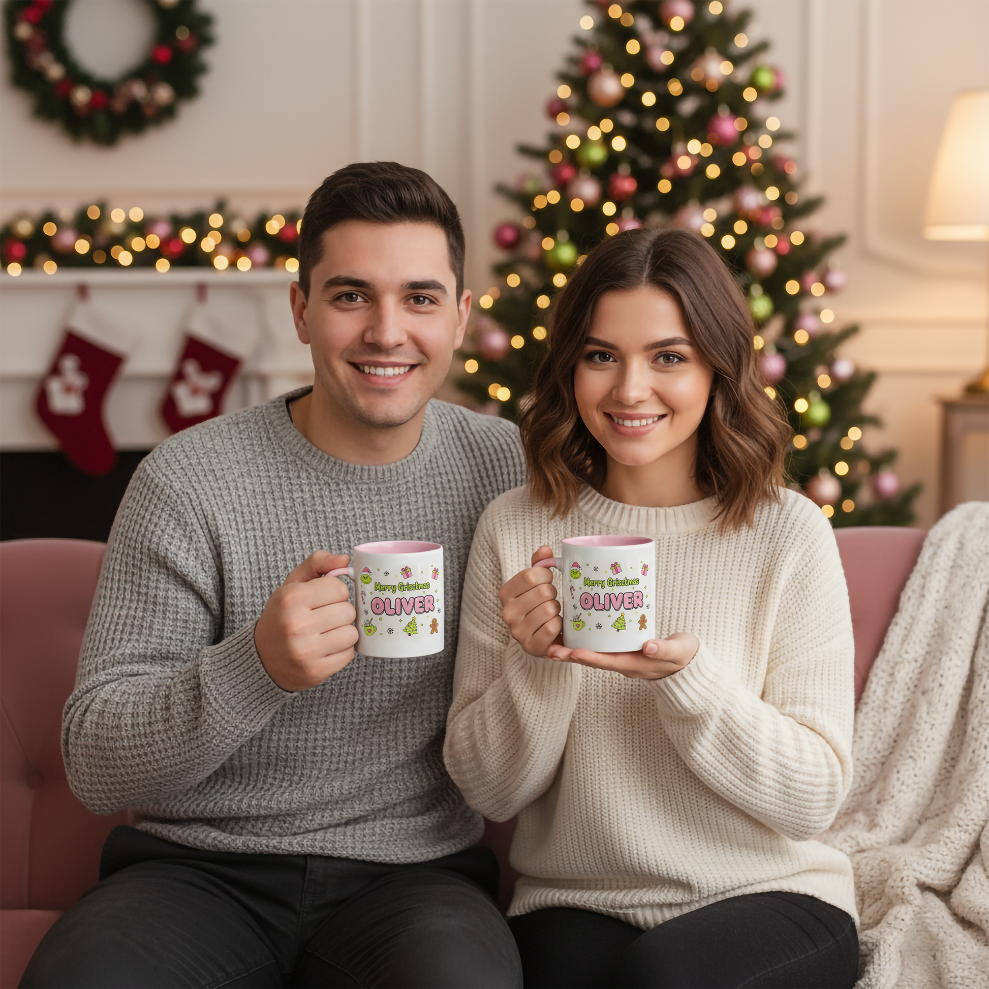 Bring extra cheer to the holiday season with this Personalized Christmas Mug, featuring a cute festive illustration and your custom name. Designed to brighten cozy mornings and make gifting more meaningful, this mug is the perfect Christmas surprise for kids, friends, or anyone who loves adorable holiday designs.