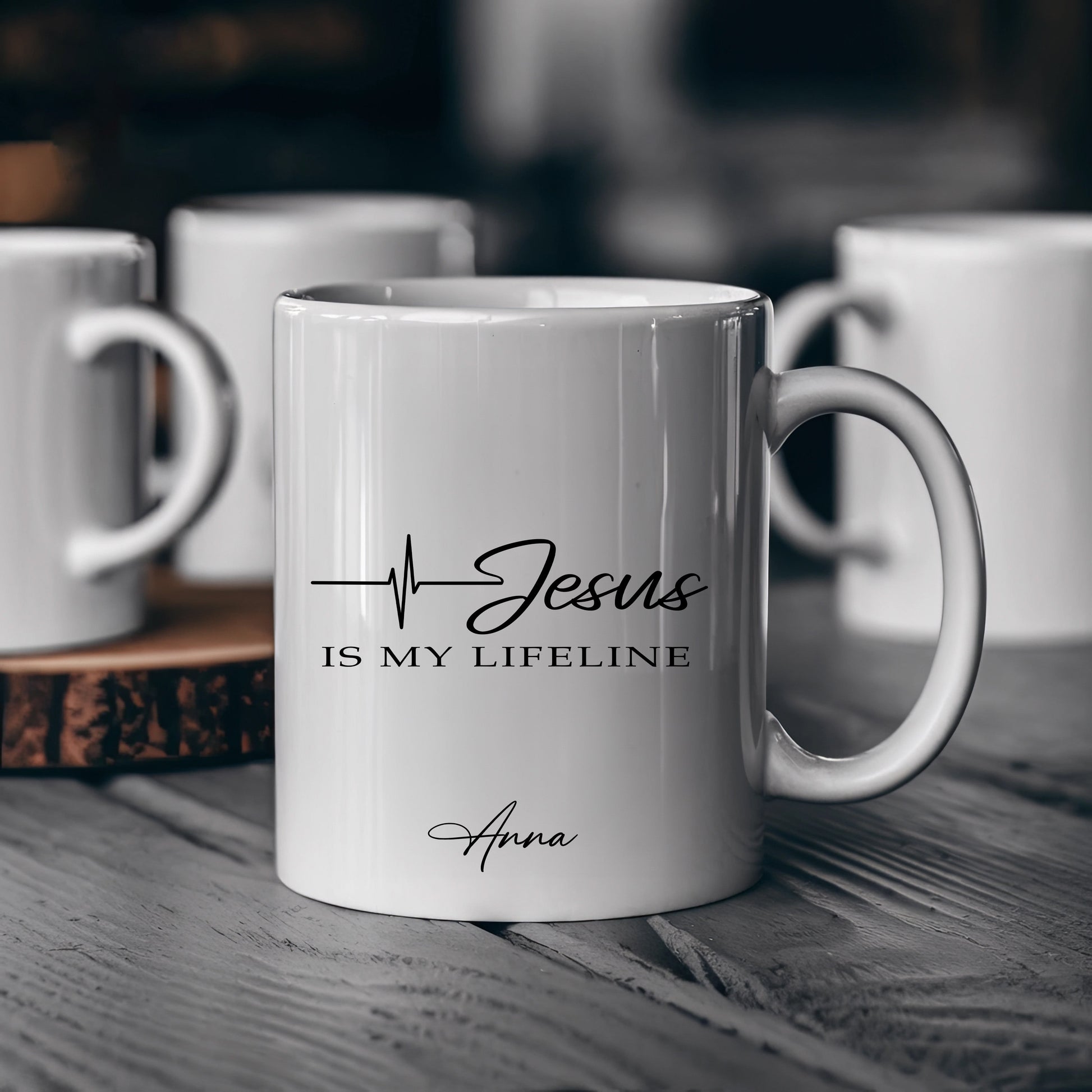 Jesus Is My Lifeline Mug, Personalized Christian Coffee Cup, Faith Mug for Her, Religious Gift, Custom Name Mug, Mom Gift Idea