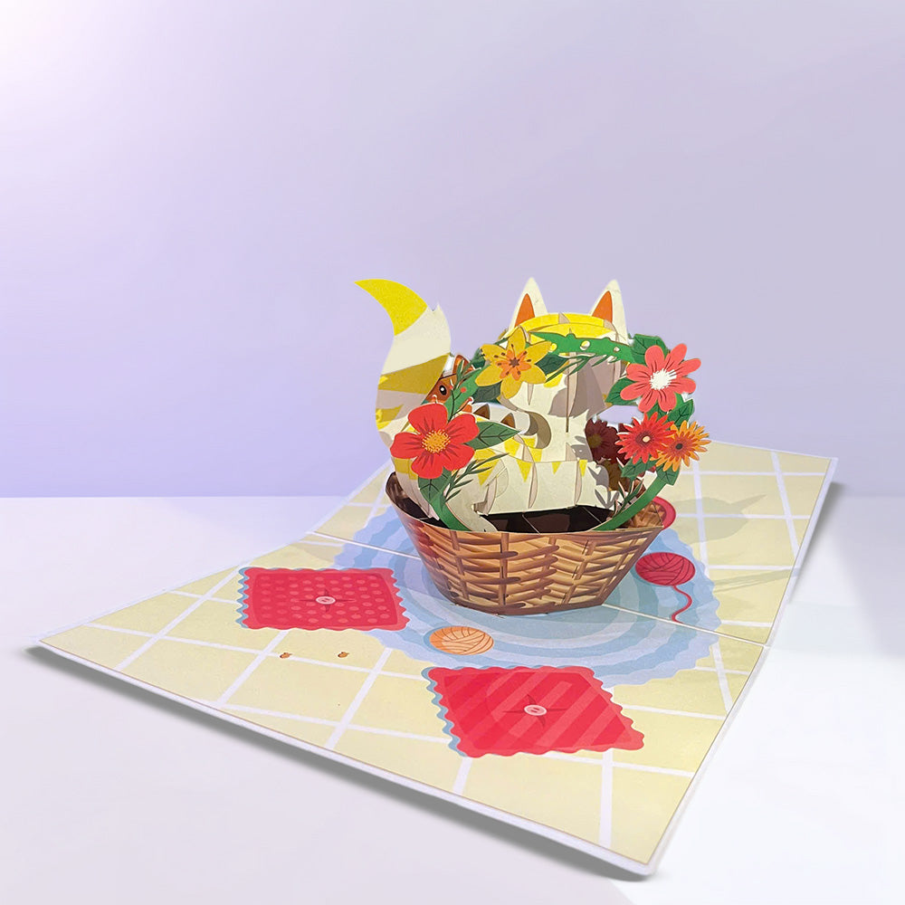 Looking for a card that stands out from the rest? This adorable 3D pop-up greeting card features a sweet mother cat surrounded by her playful kittens and vibrant flowers, creating a delightful scene that springs to life the moment it's opened.