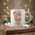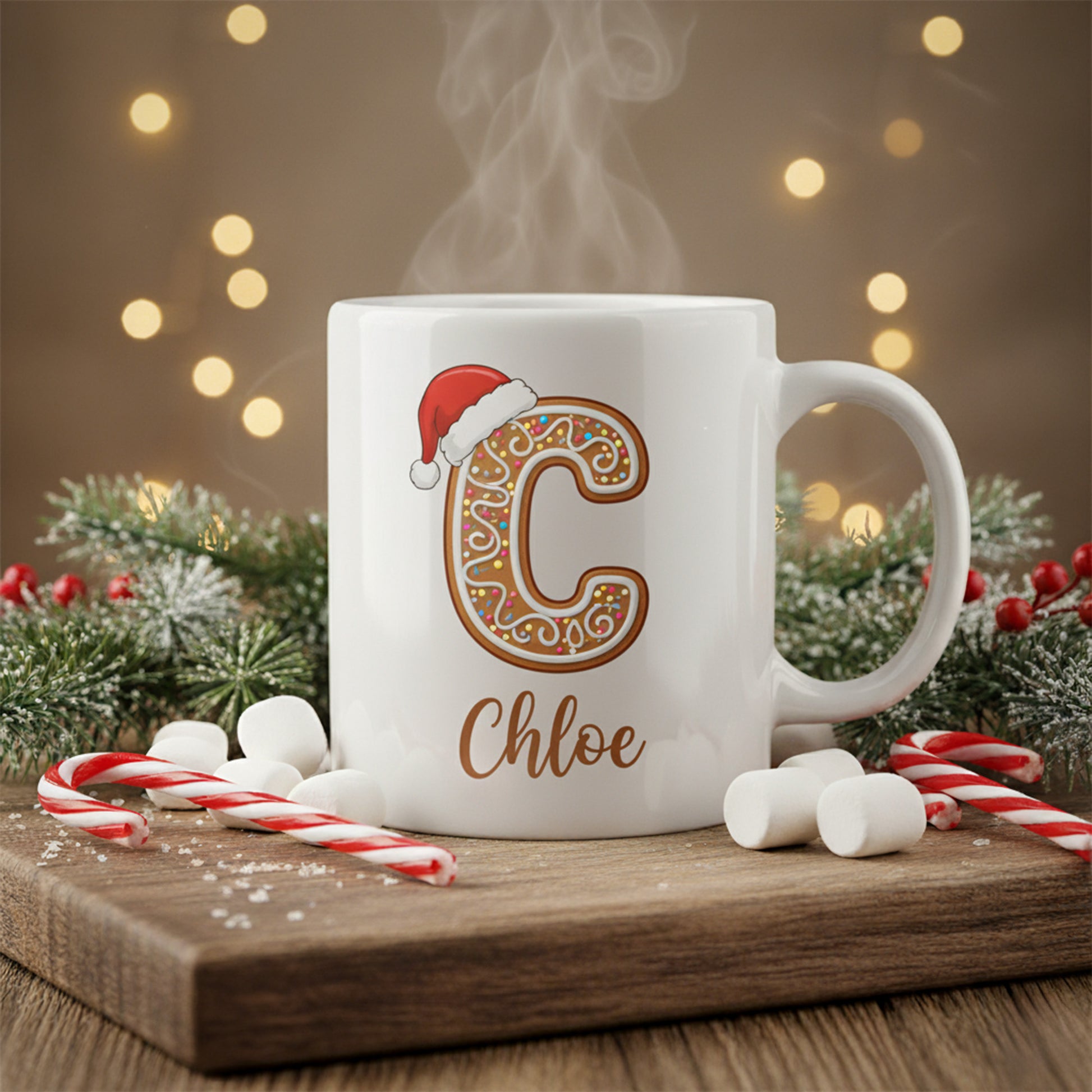Personalized Christmas Mug, Custom Name Holiday Mug Gift, Cute Gingerbread Letter Cup, Kids Cocoa Mug, Festive Monogram Initial Mug| Mug 28