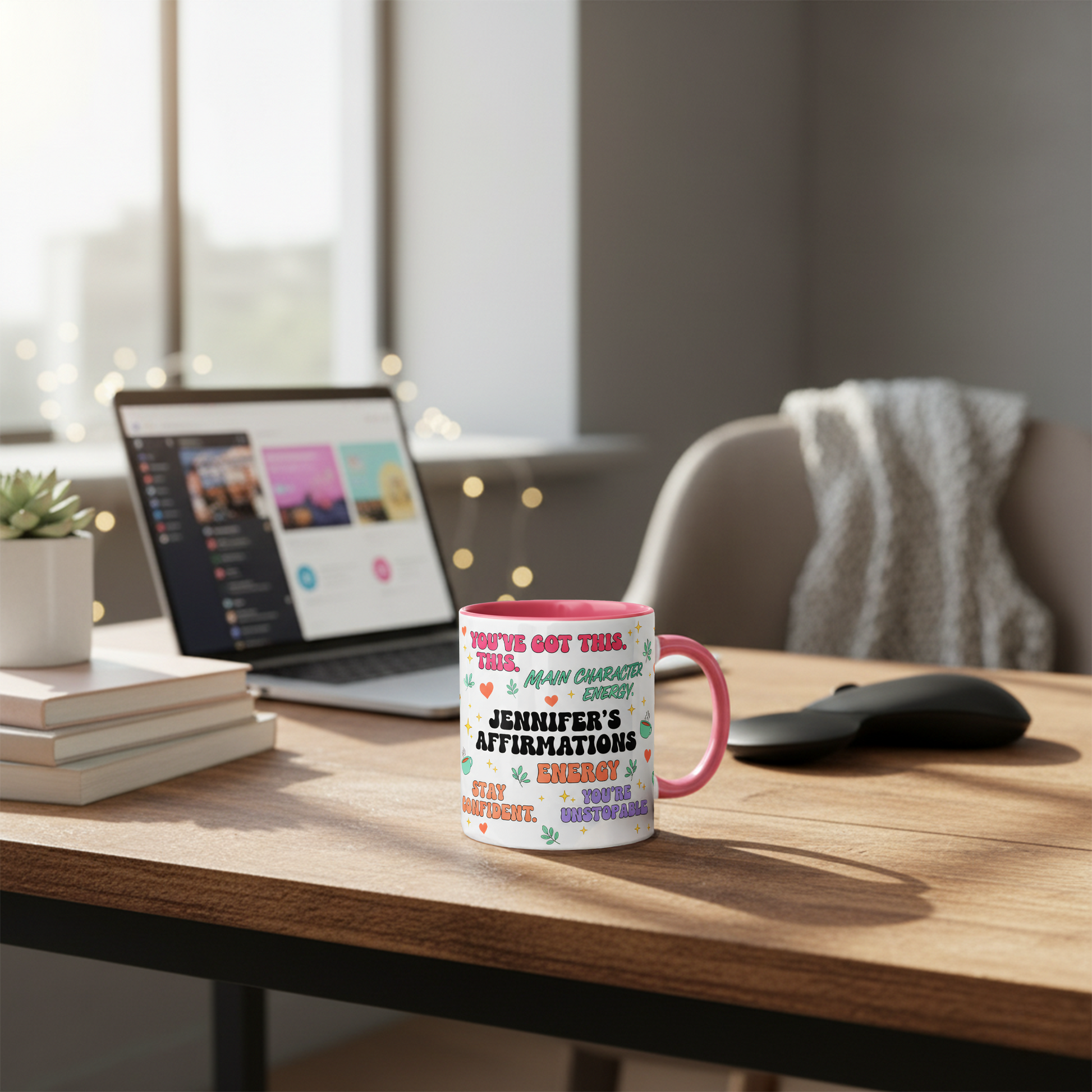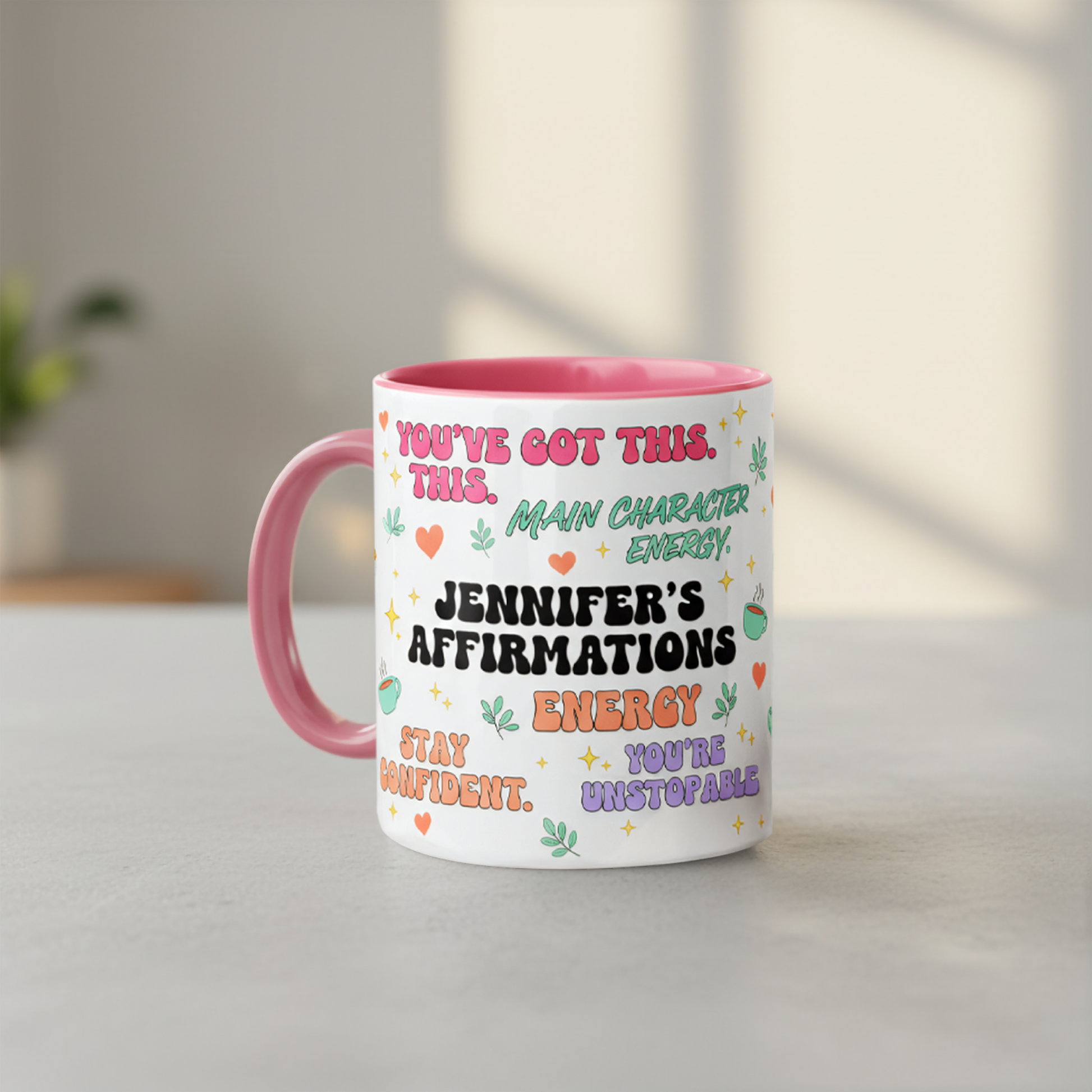This personalized affirmation mug brings daily motivation with every sip – a gentle reminder that you are strong, capable, and worthy of great things.