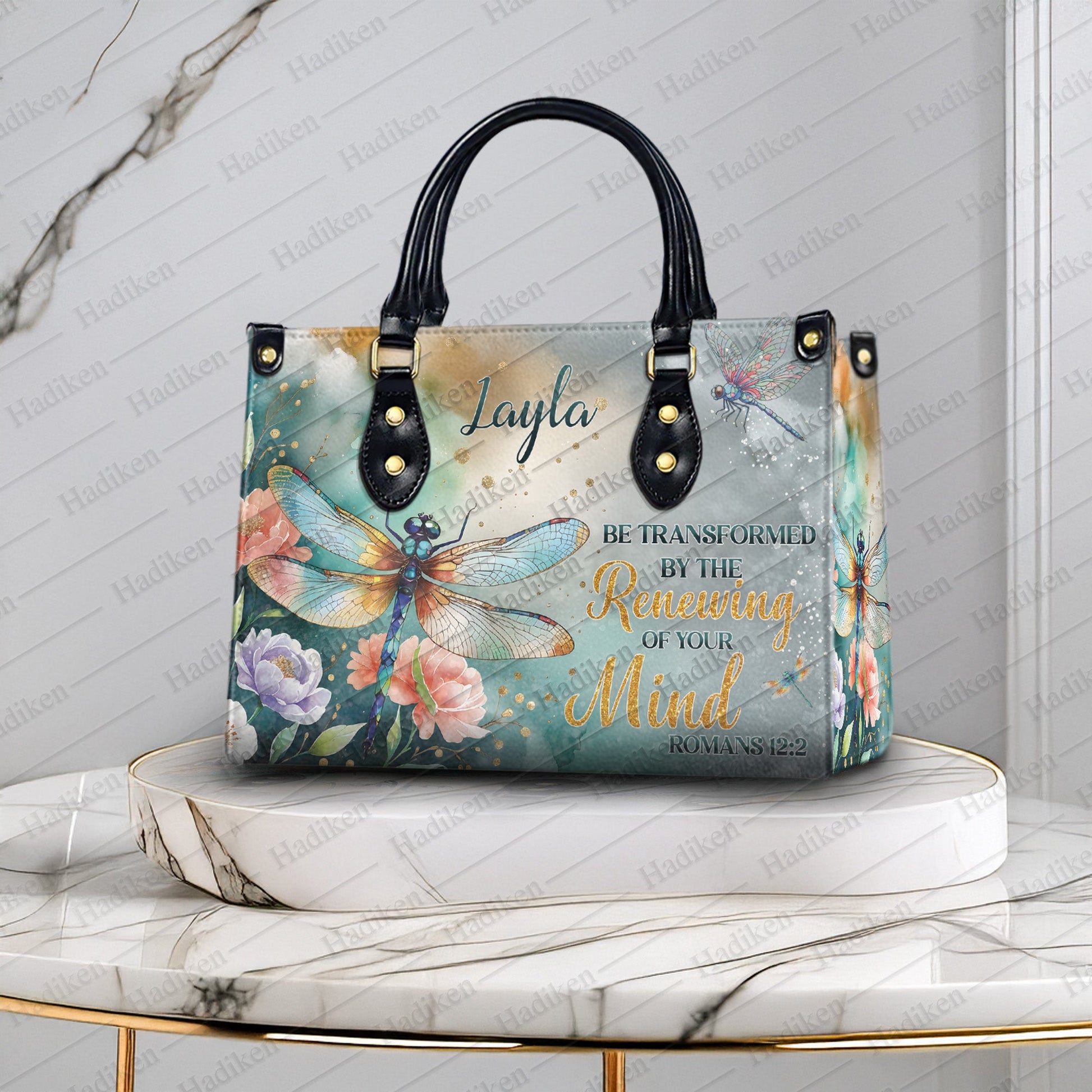 HB102 - Custom Christian Handbag with Romans 12 2 Bible Verse, Renewing of Your Mind Faith Purse, Personalized Gift for Women