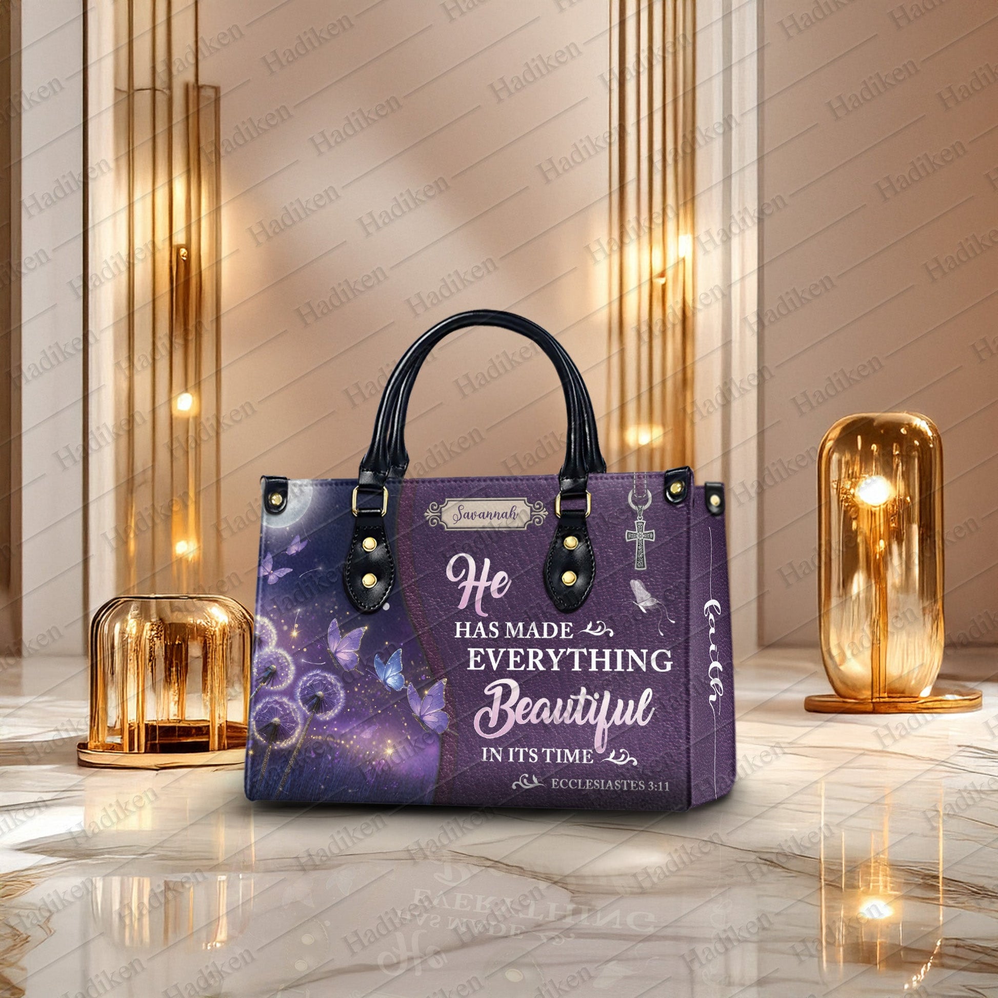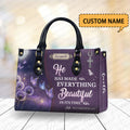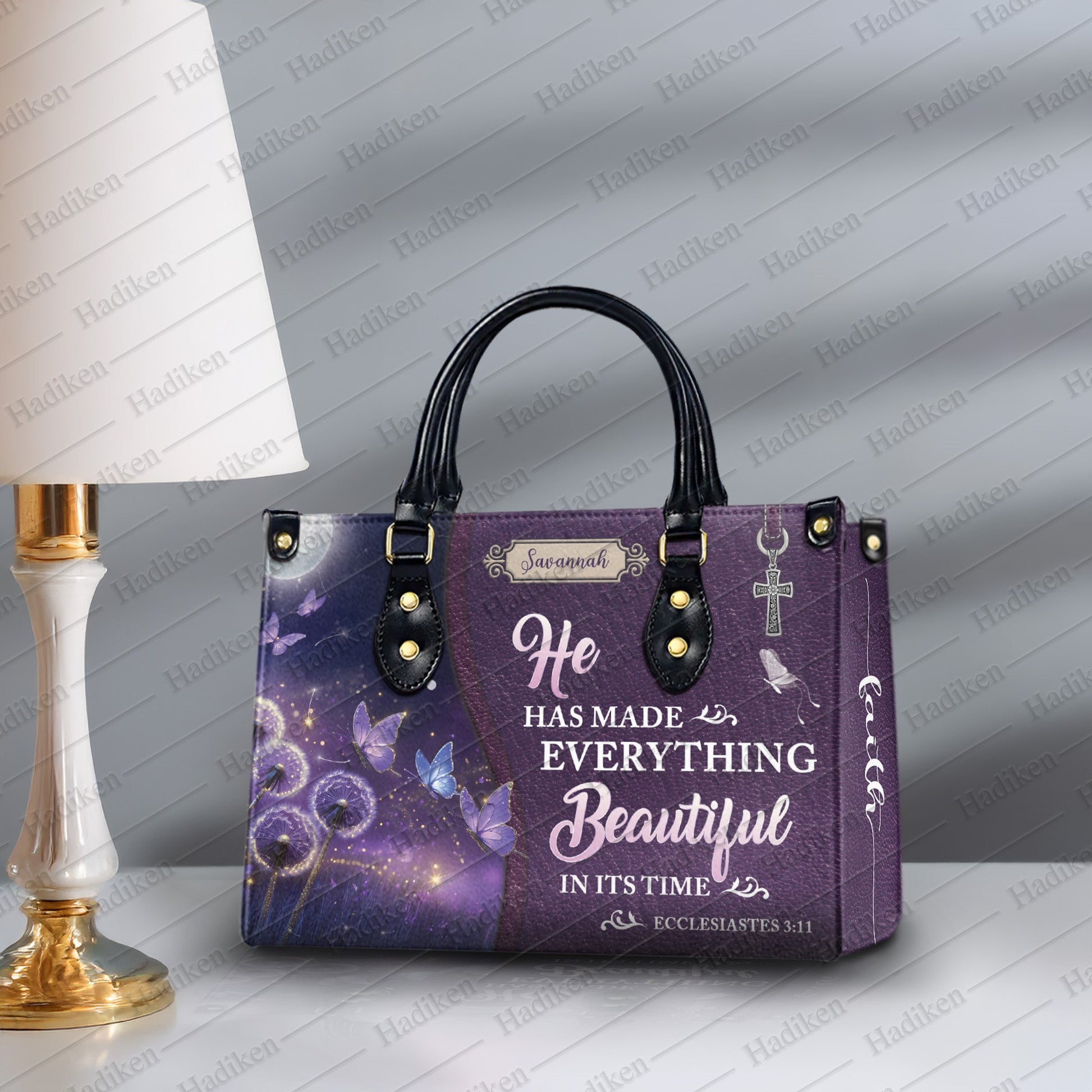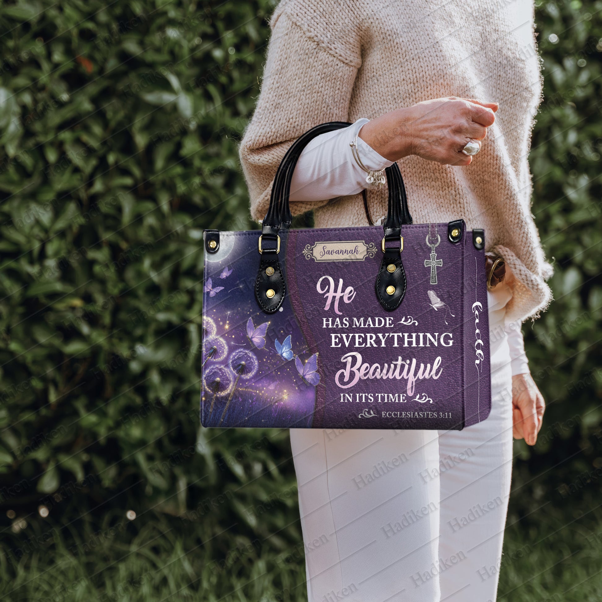 HB103 - Christian Handbag with Ecclesiastes 3:11 Verse, Custom Name Purple Faith Tote, Inspirational Gift for Women of God