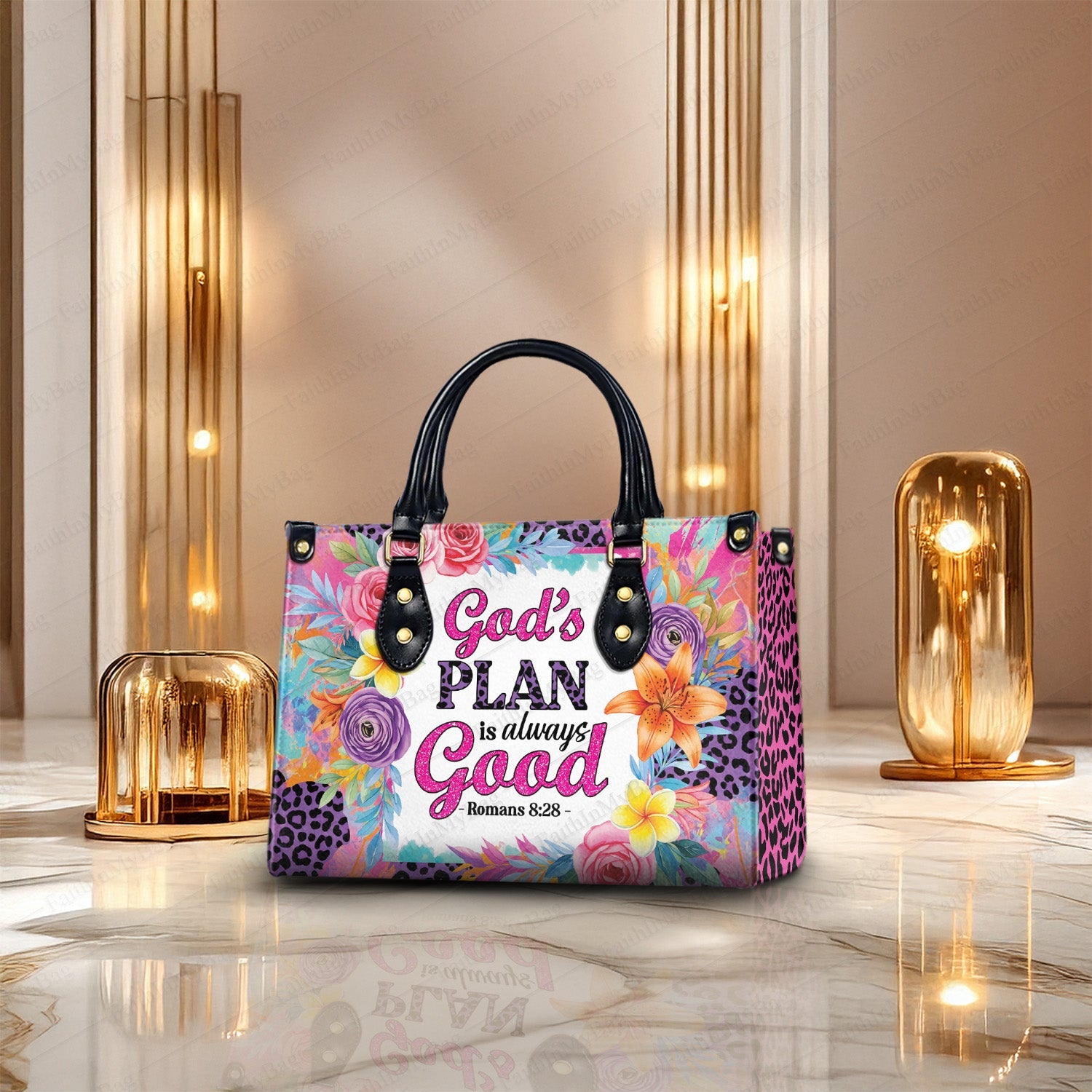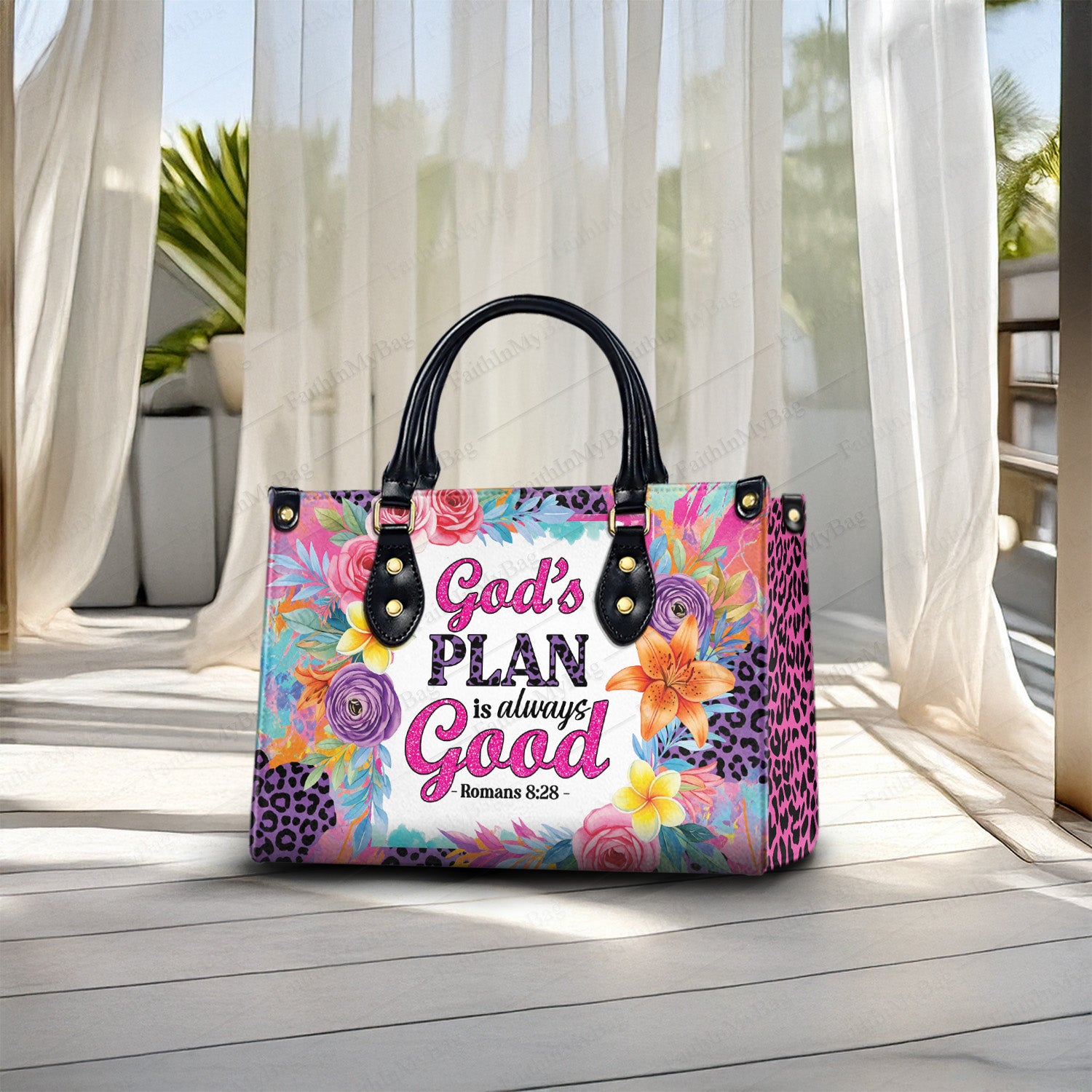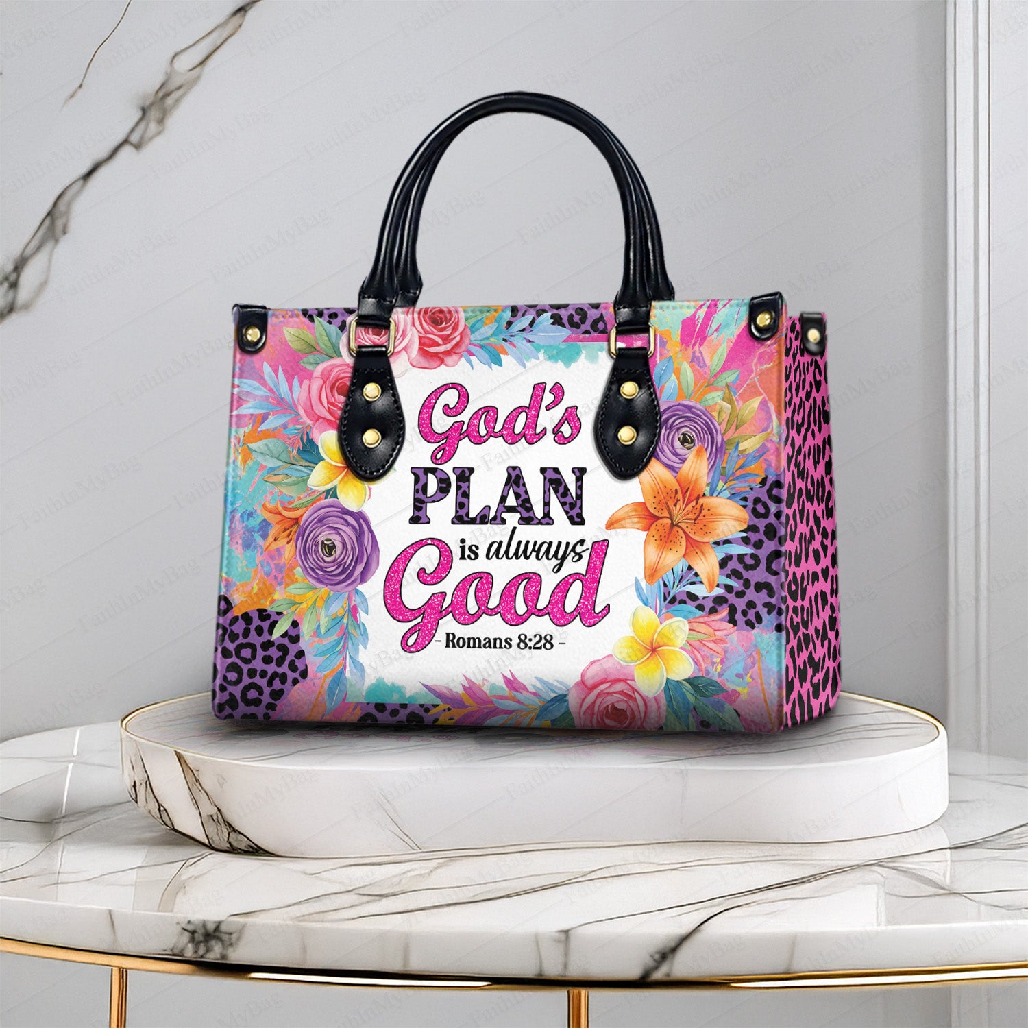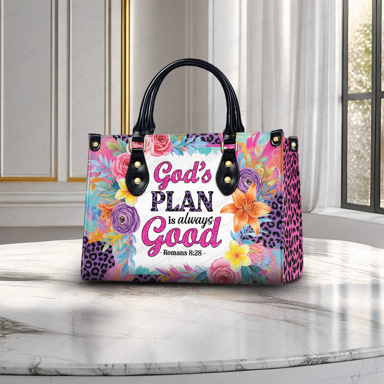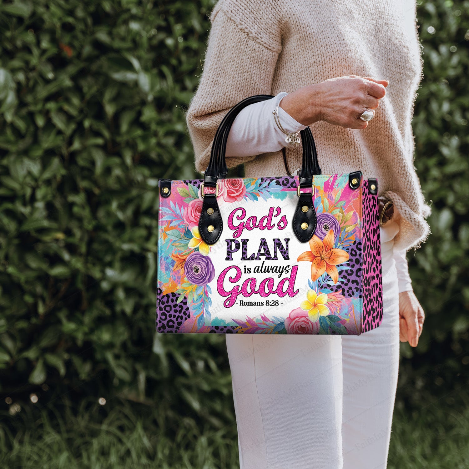 🌸 God’s Plan – Personalized Christian Handbag with Bible Verse (Romans 8:28)