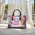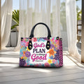 Celebrate your faith in every step you take with this stunning Christian handbag — designed to uplift, inspire, and remind you of God’s eternal goodness. Featuring the powerful Scripture “God’s plan is always good – Romans 8:28,” this bag is more than a fashion piece — it’s a declaration of trust in God's purpose for your life.