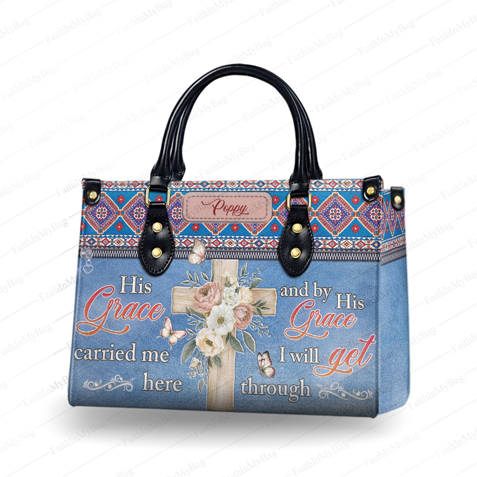 HB144 - Christian Handbag with Bible Verse – His Grace Carried Me Here – Personalized Faith Purse, Custom Name Gift for Women