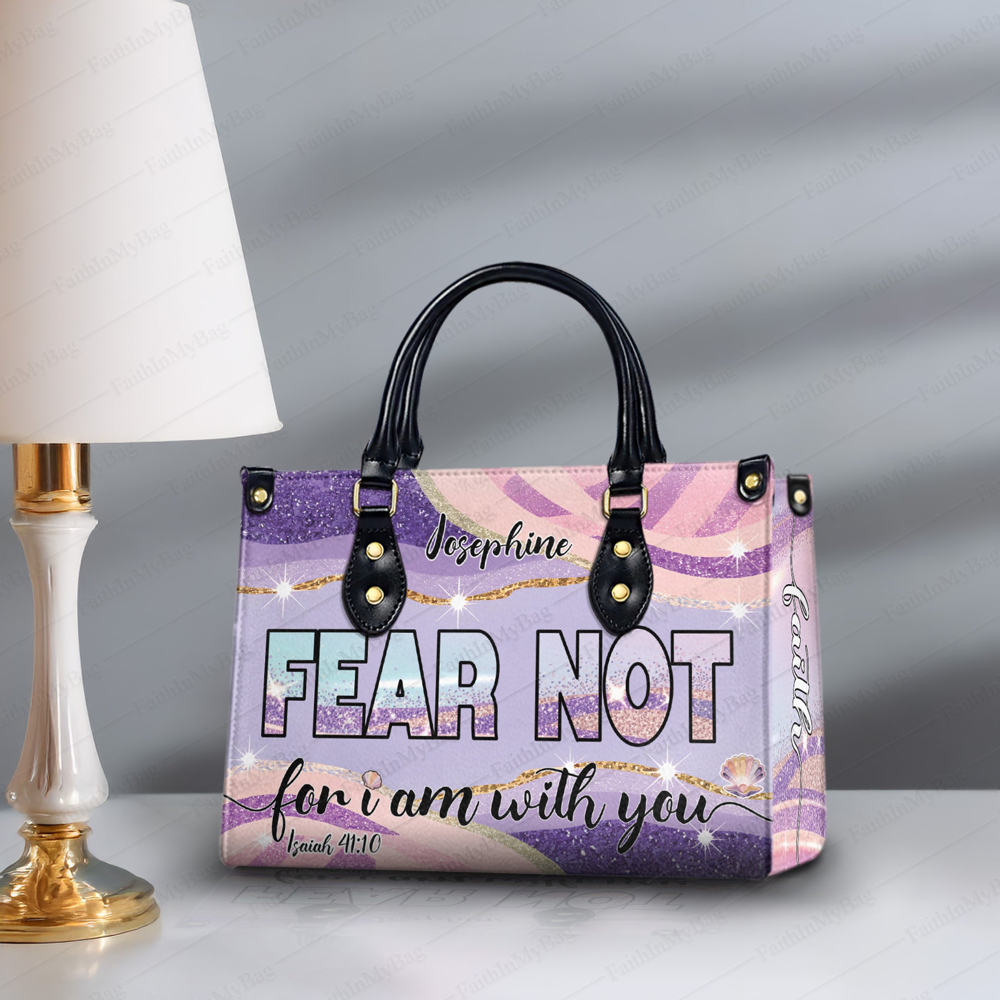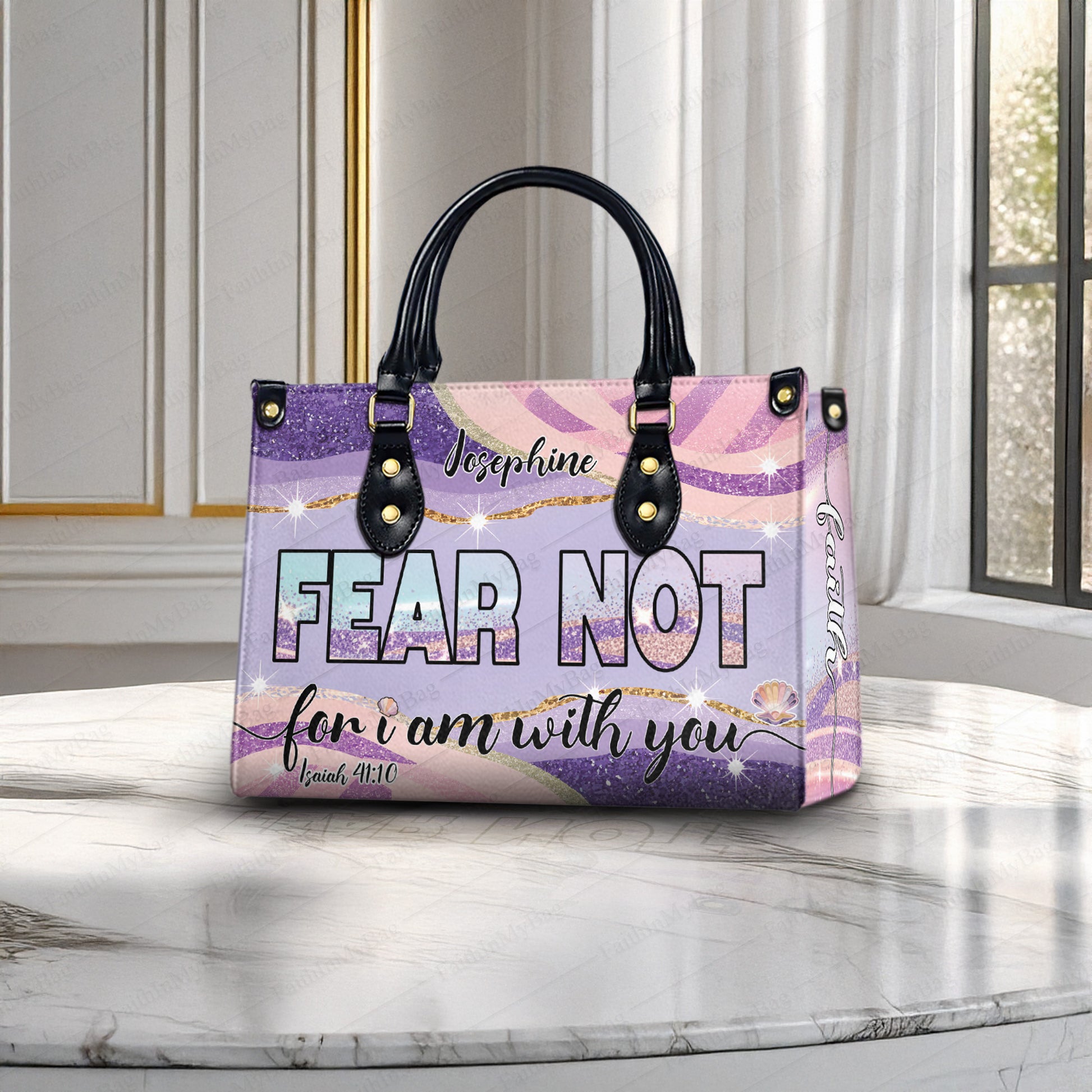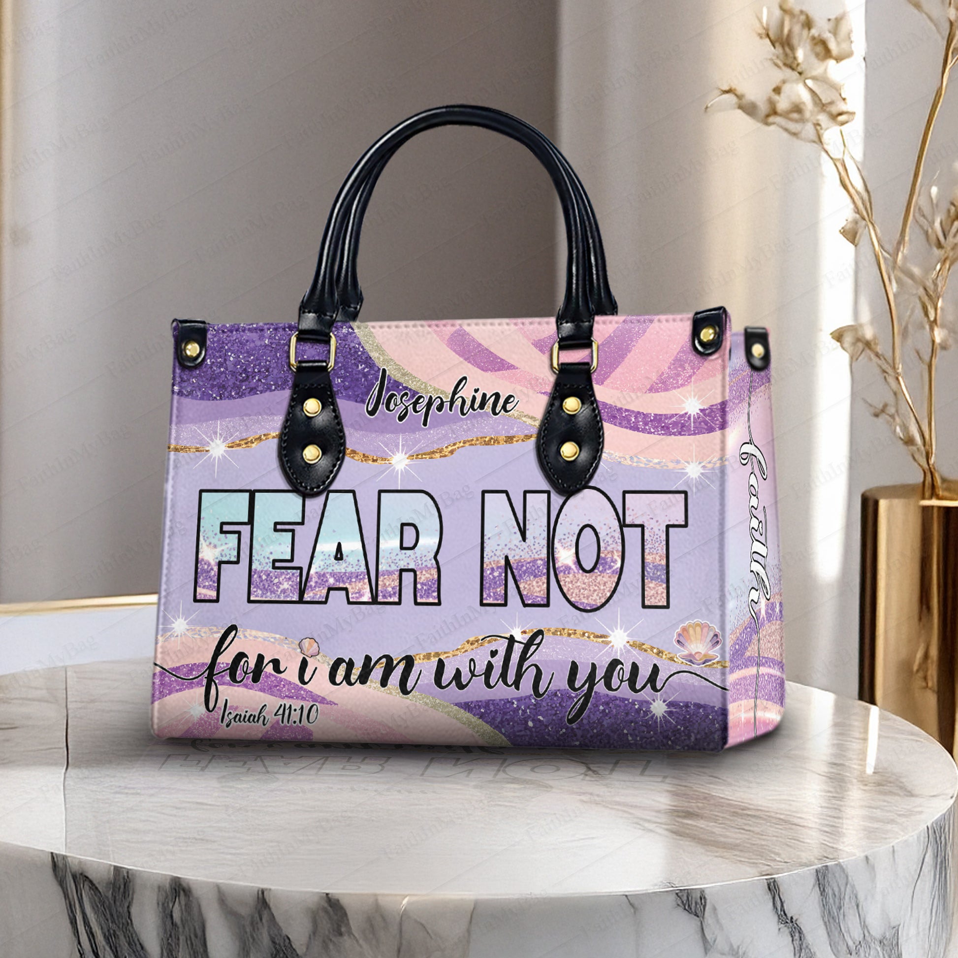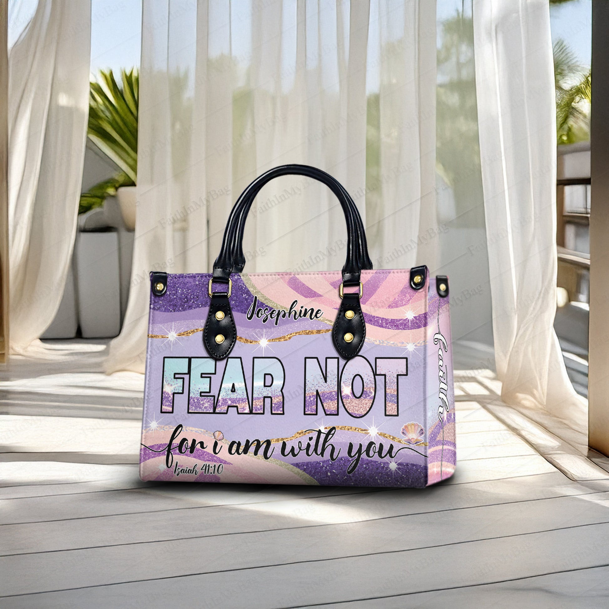 HB125 -Fear Not Bible Verse Handbag, Isaiah 41:10 Christian Tote, Custom Name Faith Purse, Inspirational Scripture Gift for Women