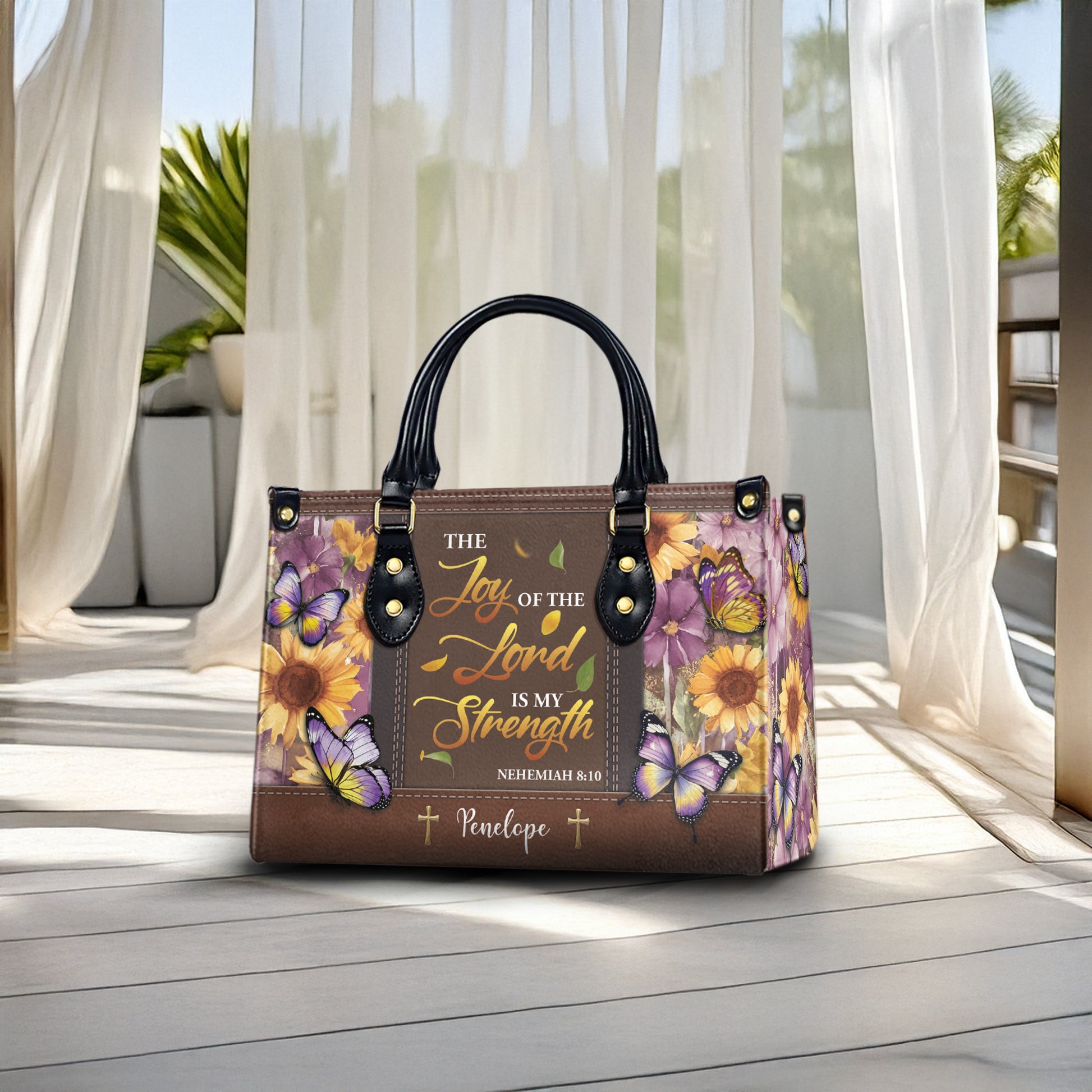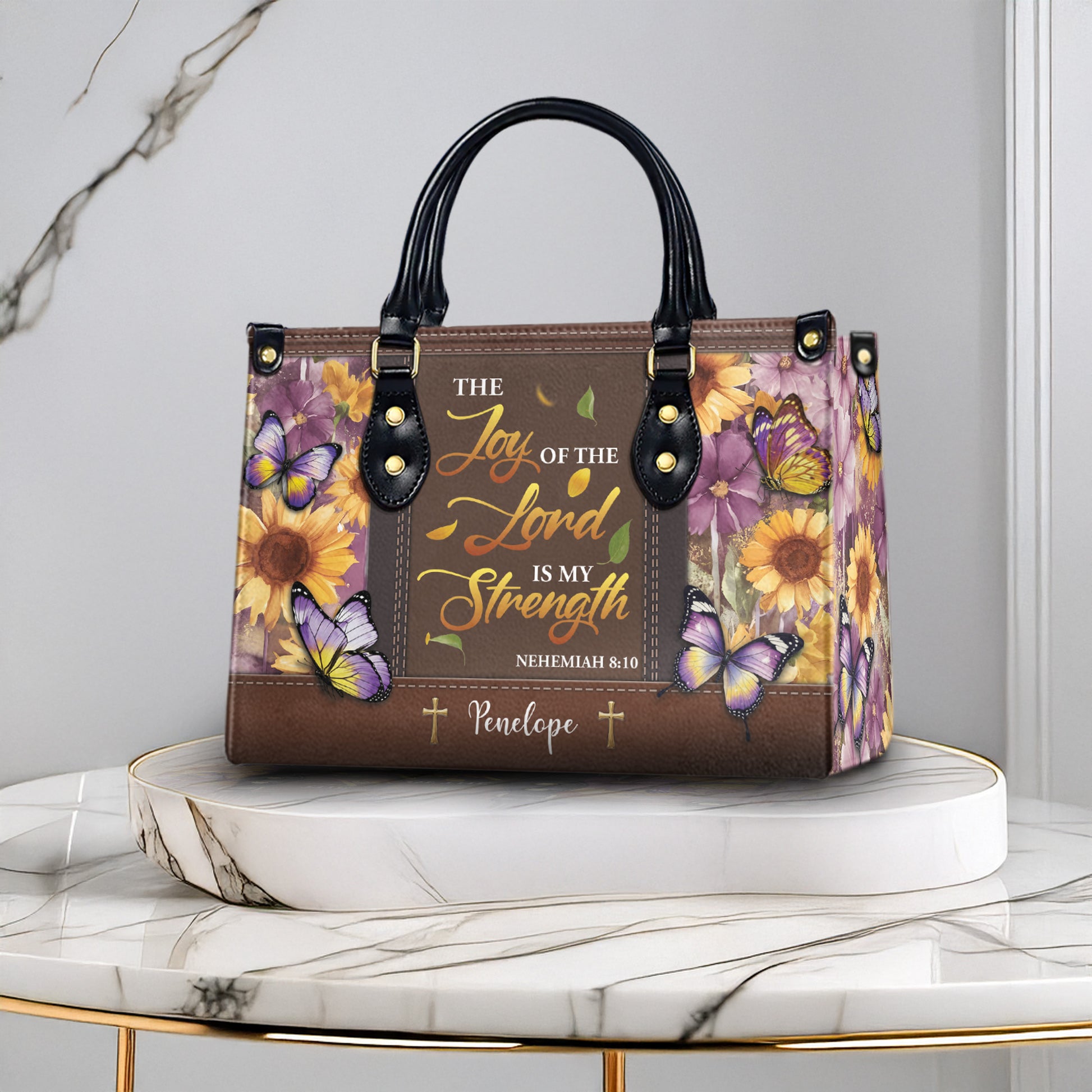 HB109 - Custom Christian Handbag with Bible Verse – Nehemiah 8:10 – Faith Leather Tote Bag – Joy of the Lord Personalized Purse