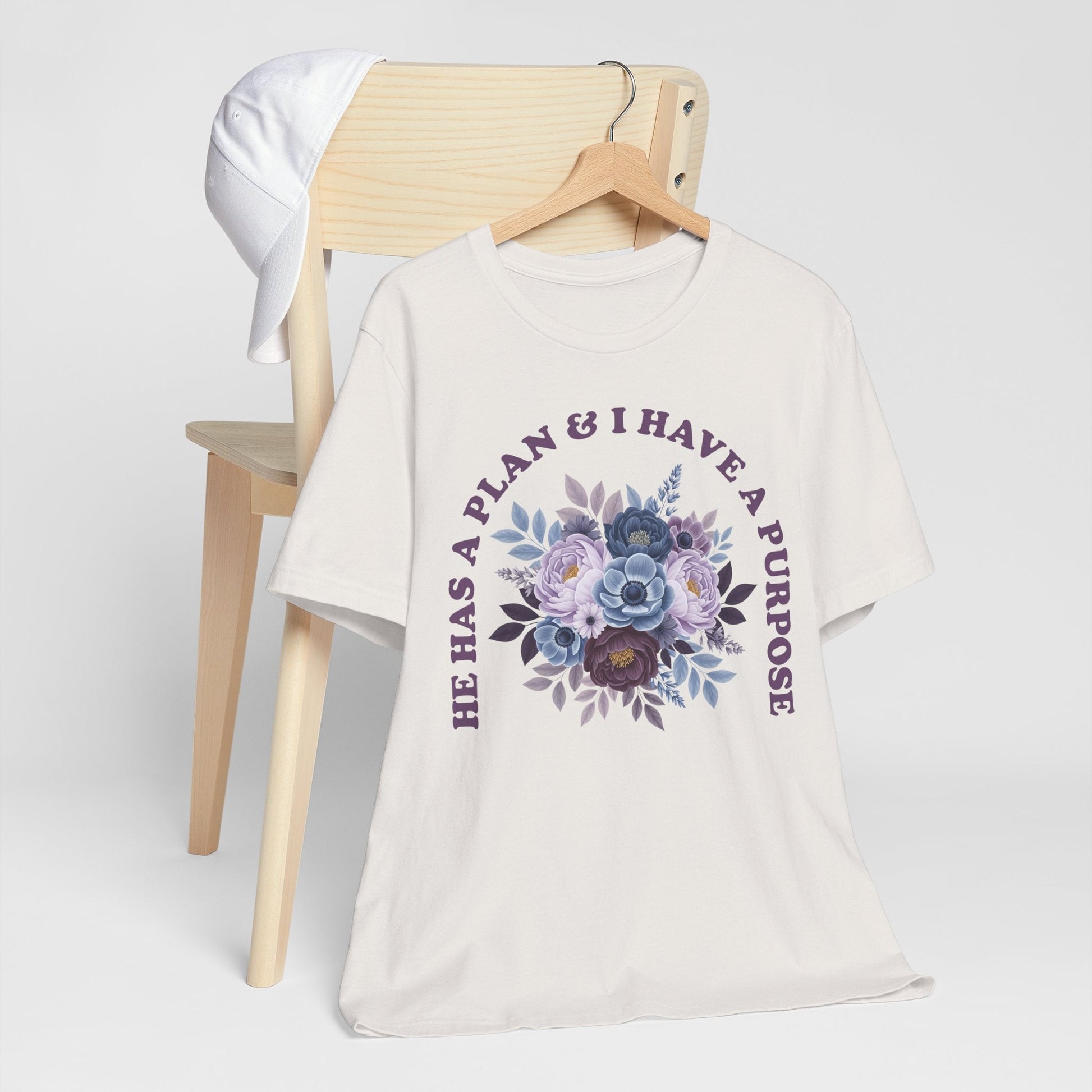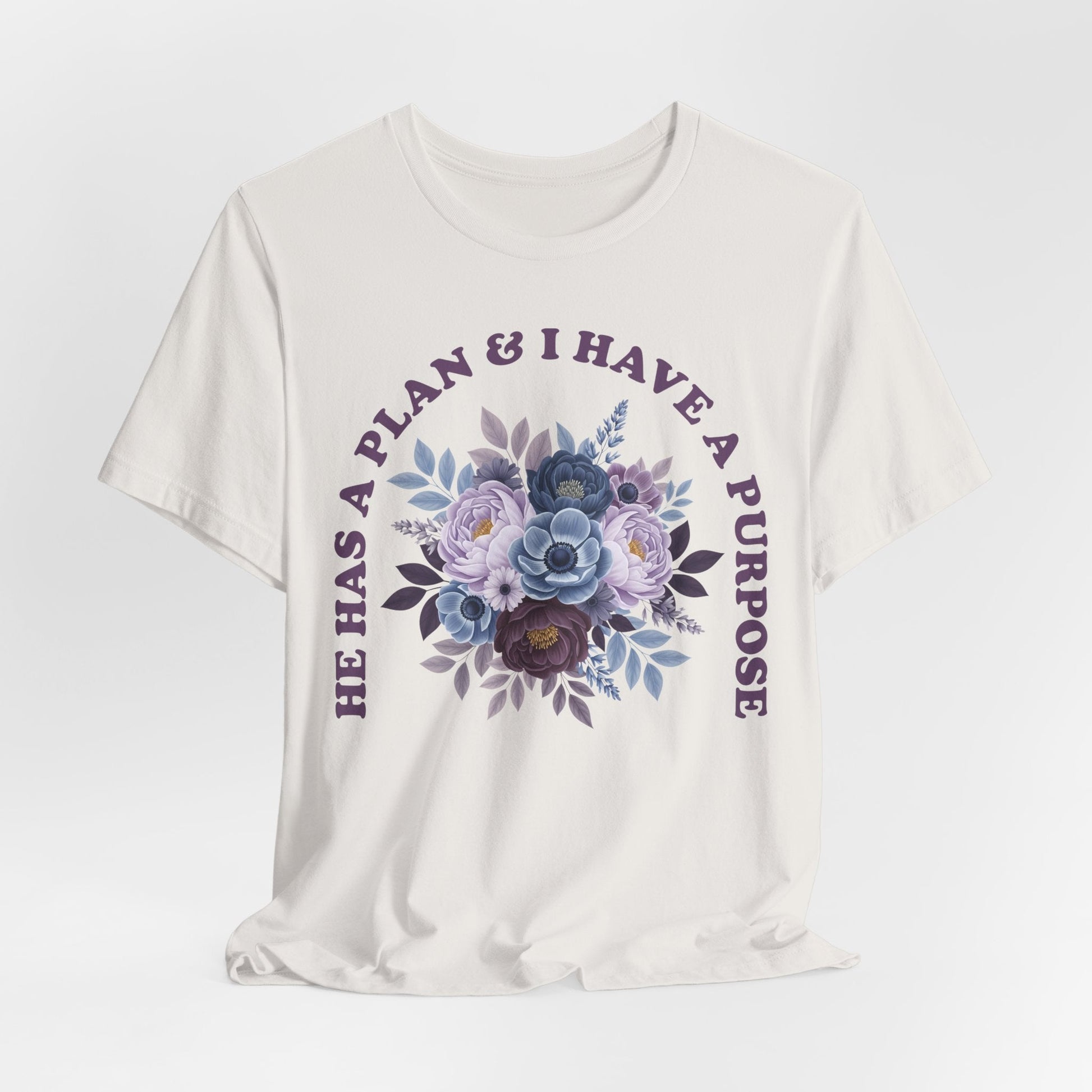 🌸 He Has a Plan & I Have a Purpose – Christian Floral T-Shirt