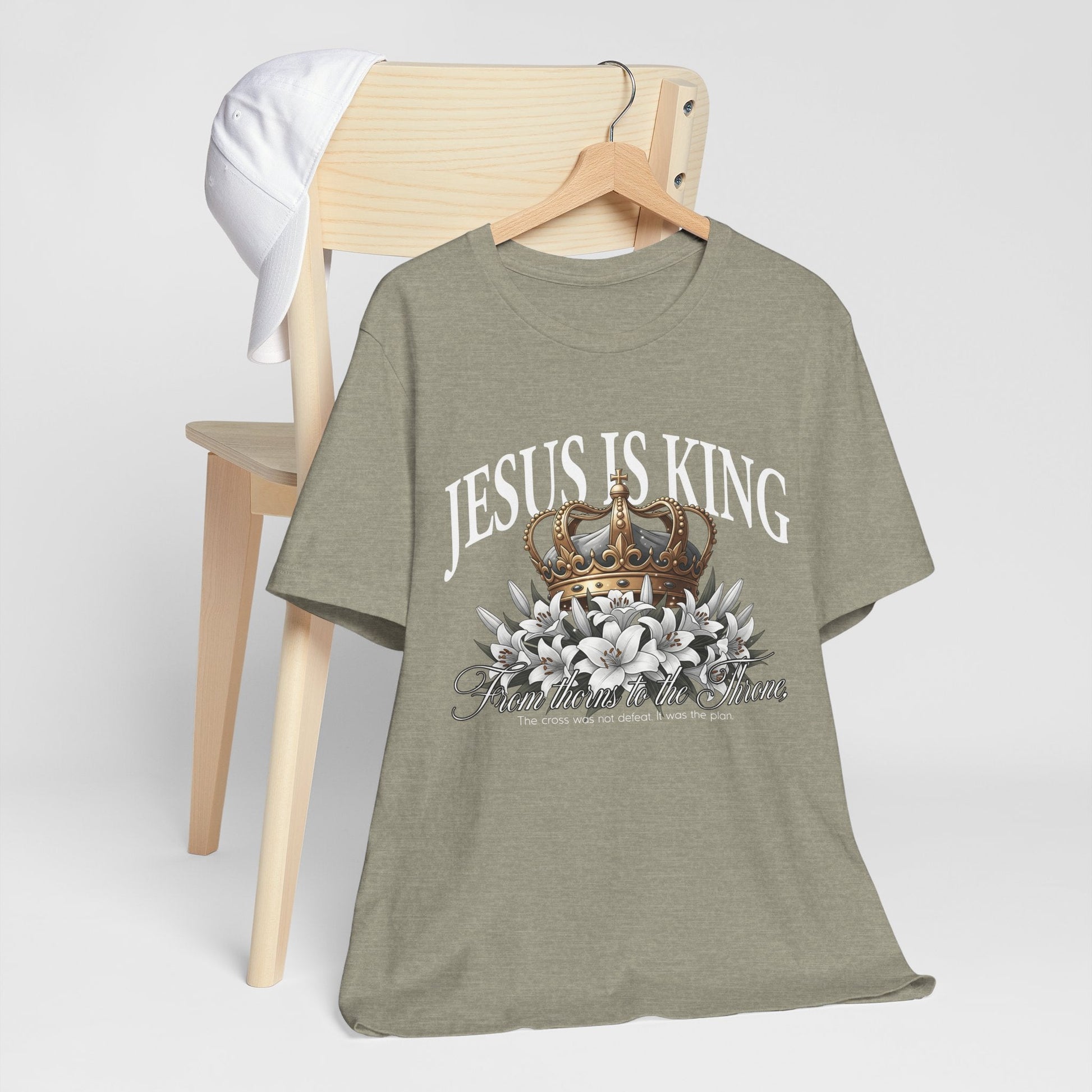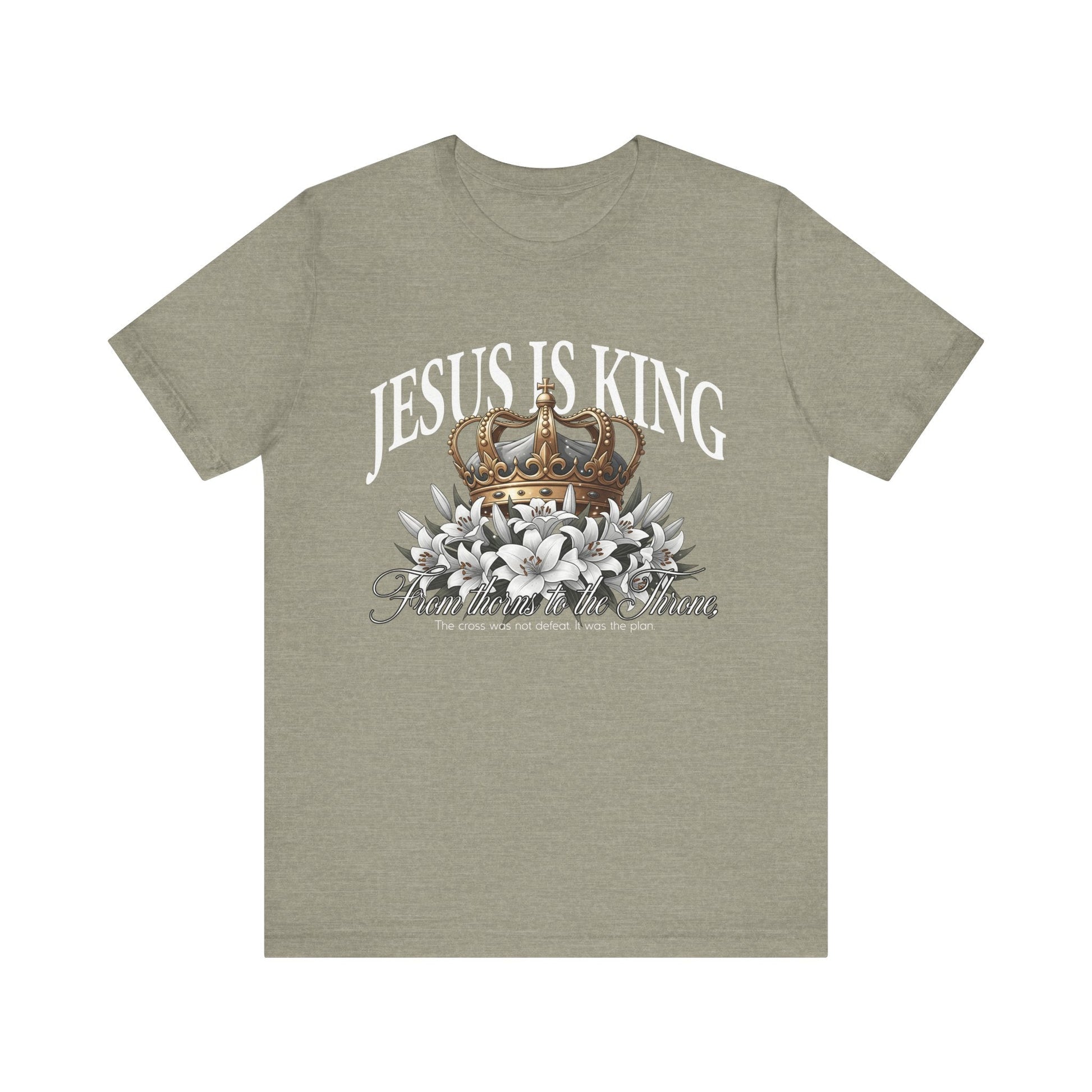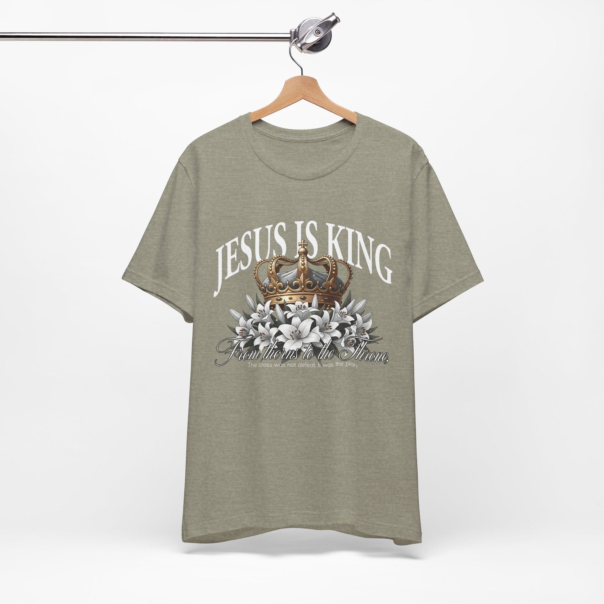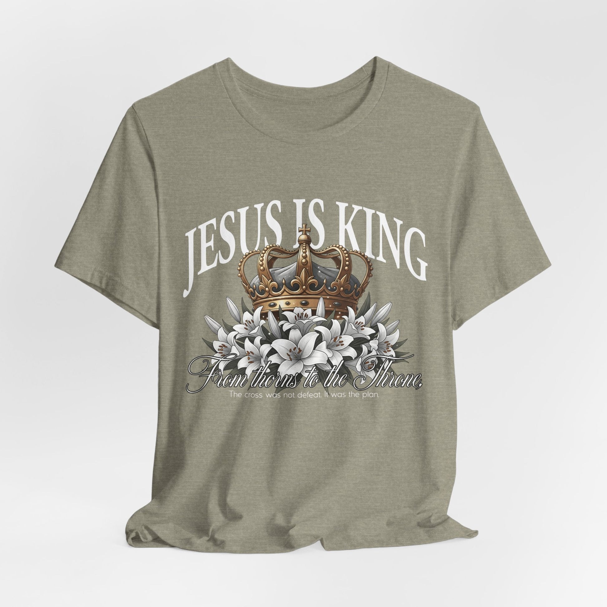 Jesus Is King Christian T-Shirt, From Thorns to the Throne Shirt, Crown and Lily Graphic Tee, Faith Based Apparel, Inspirational Jesus Shirt
