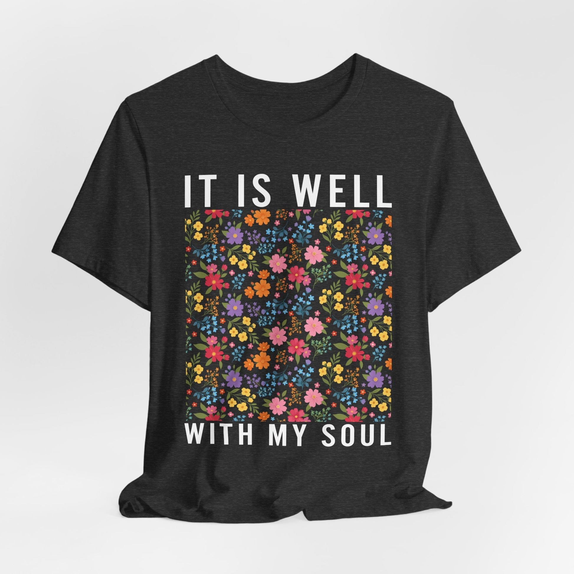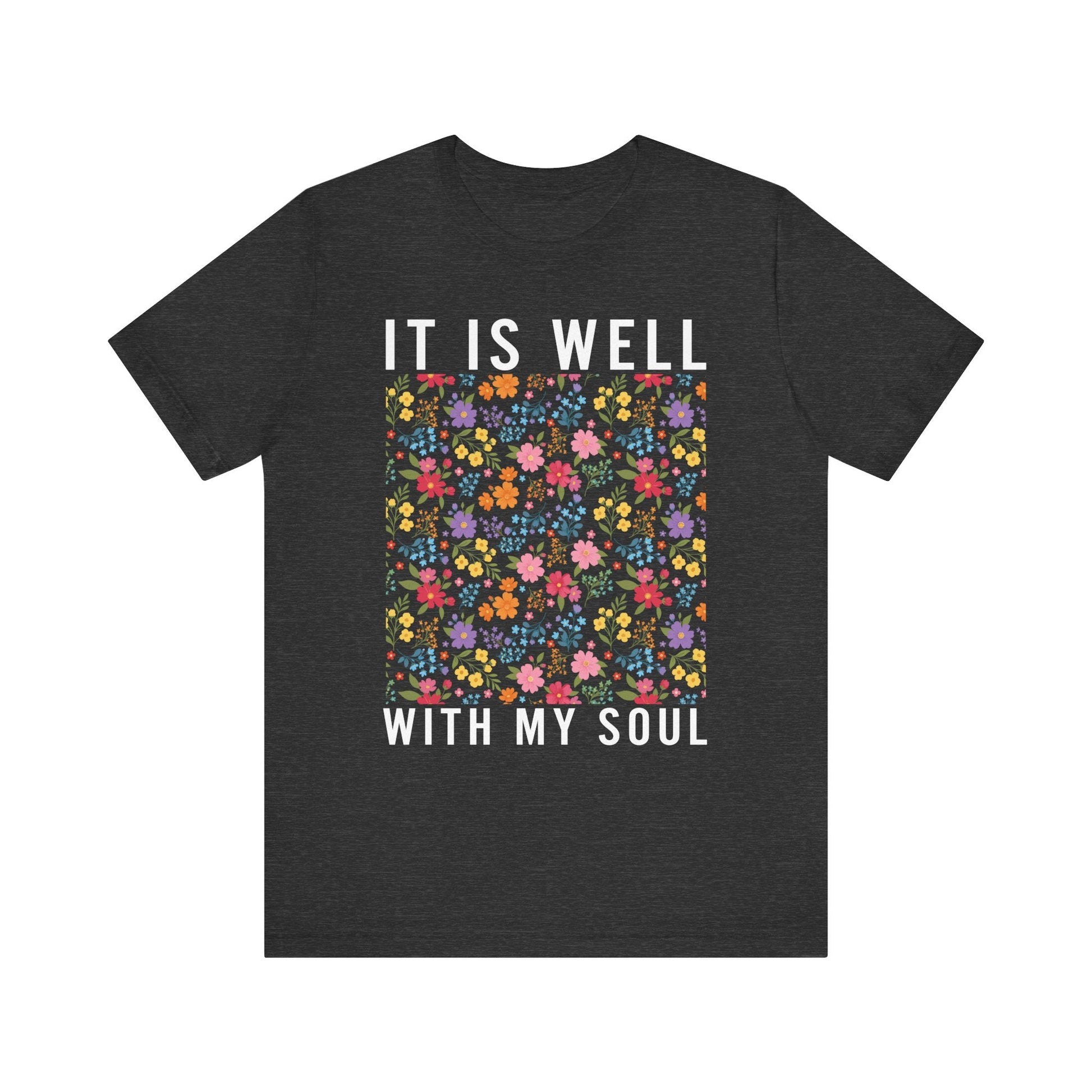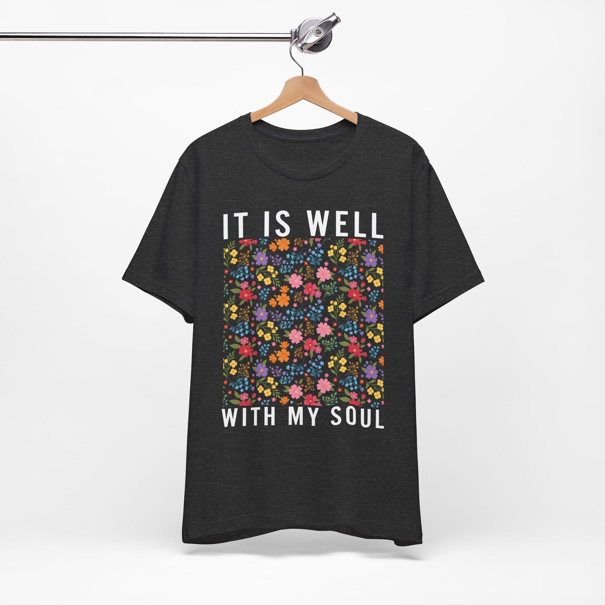 It Is Well With My Soul T-Shirt, Christian Hymn Shirt with Floral Design, Faith Based Comfort Tee, Inspirational Bible Verse Gift