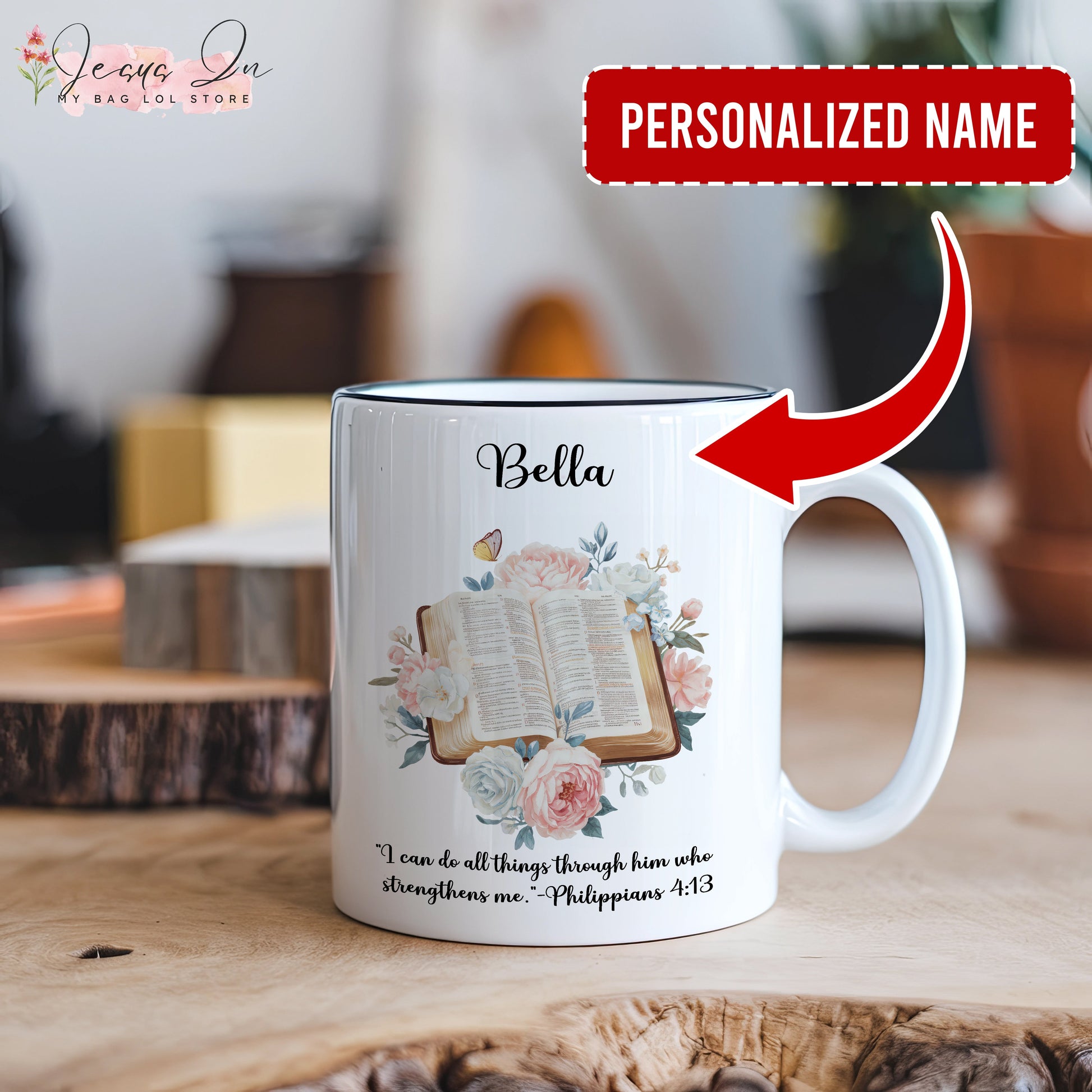 ✨ Personalized Bible Verse Mug – Philippians 4:13 | Christian Gift for Women ✨