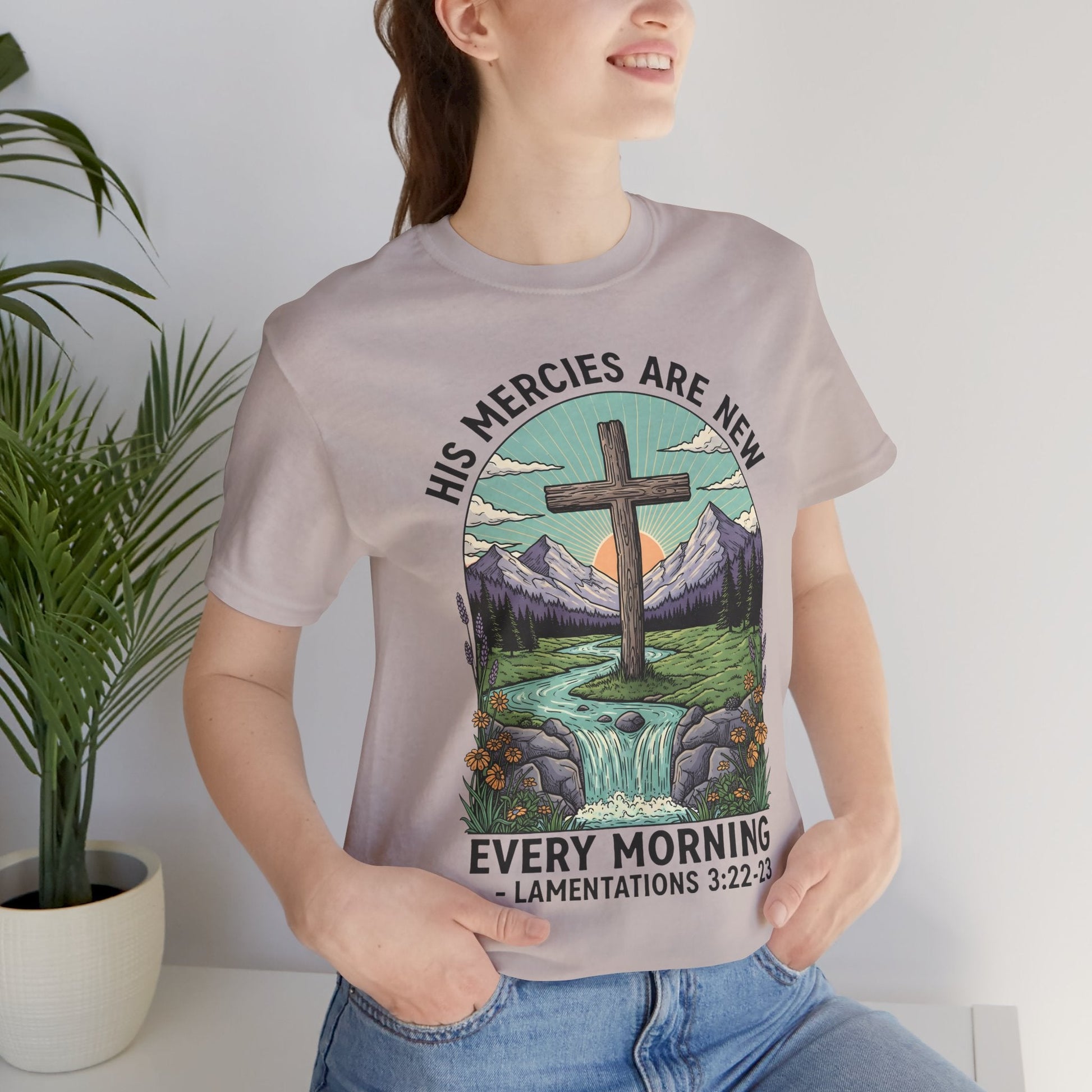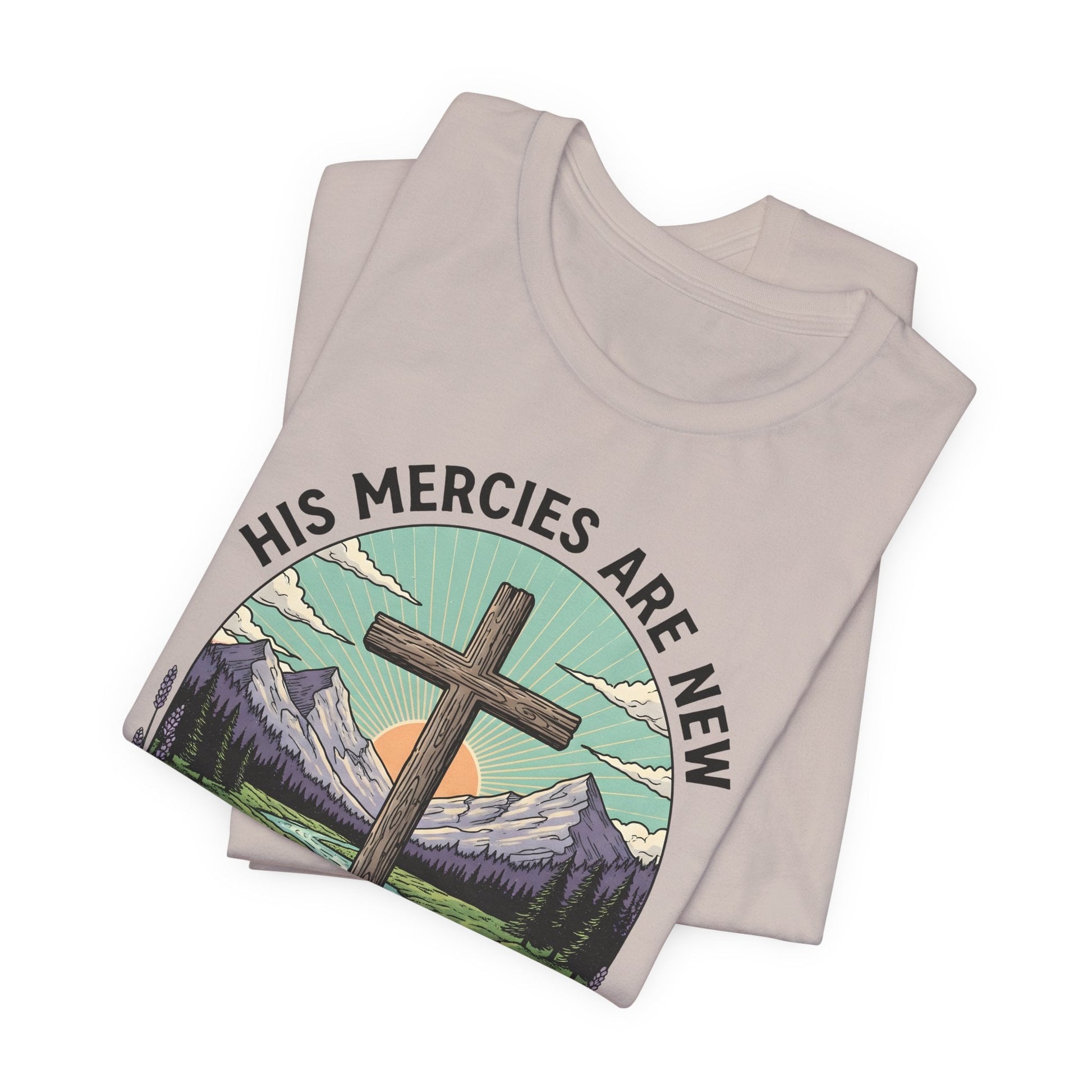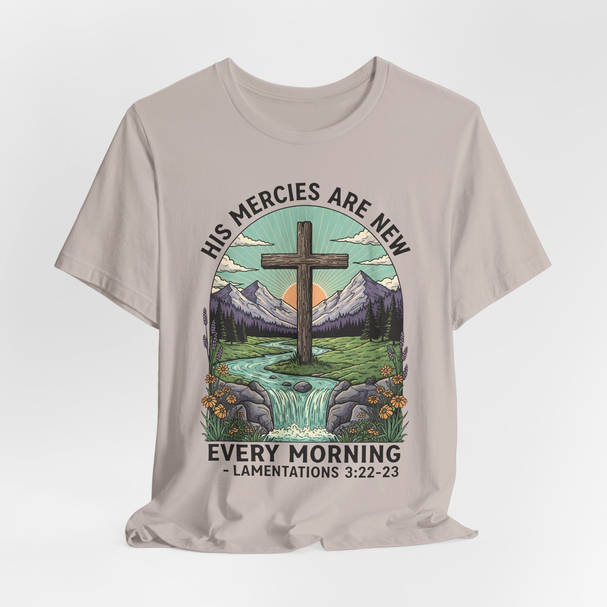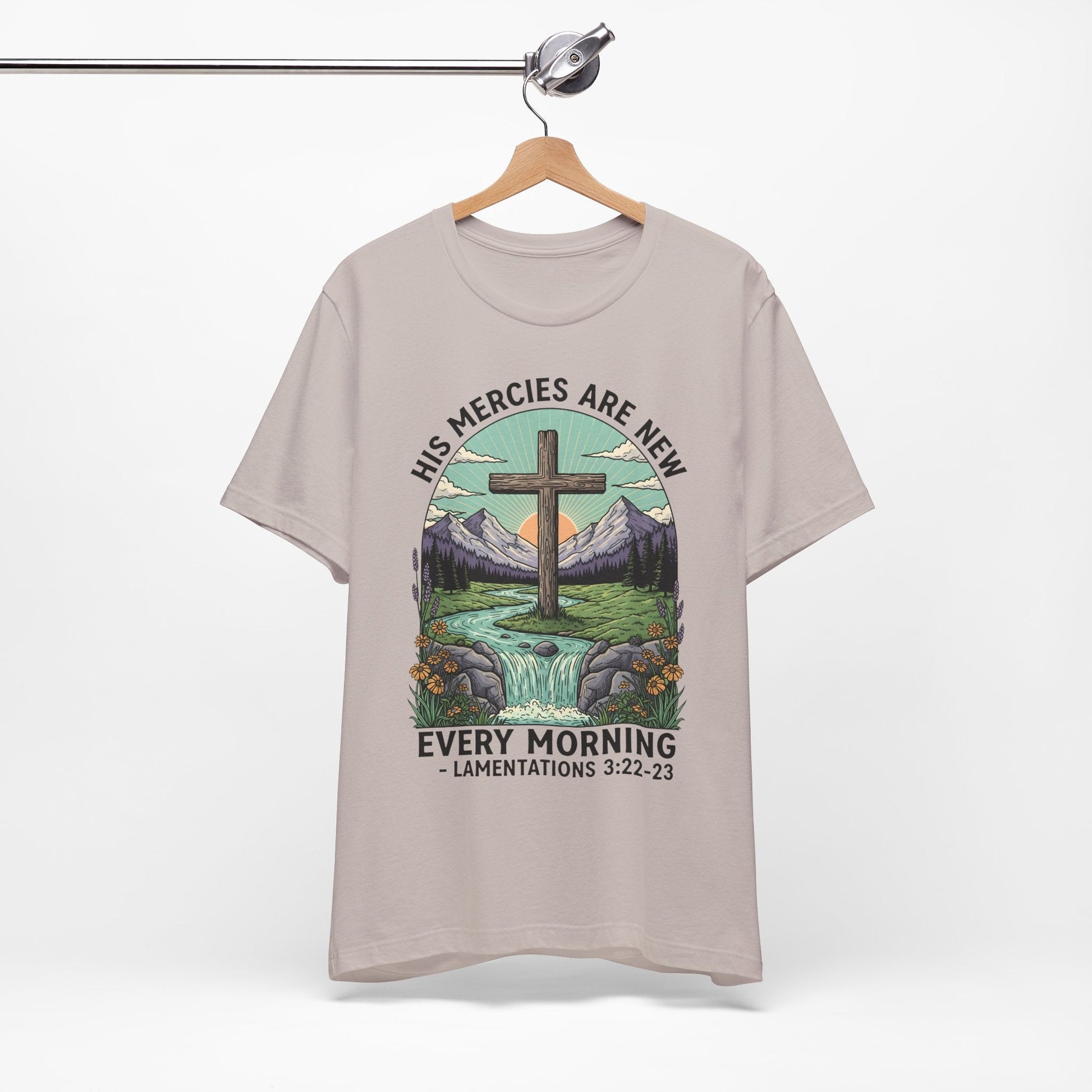 His Mercies Are New Every Morning Shirt – Lamentations 3:22-23 Bible Verse Tee – Christian Nature Faith T-Shirt Unisex