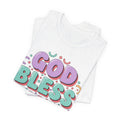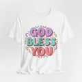 God Bless You Christian T-Shirt, Colorful Faith Graphic Tee, Inspirational Bible Verse Shirt for Women, Cute Christian Gift Idea