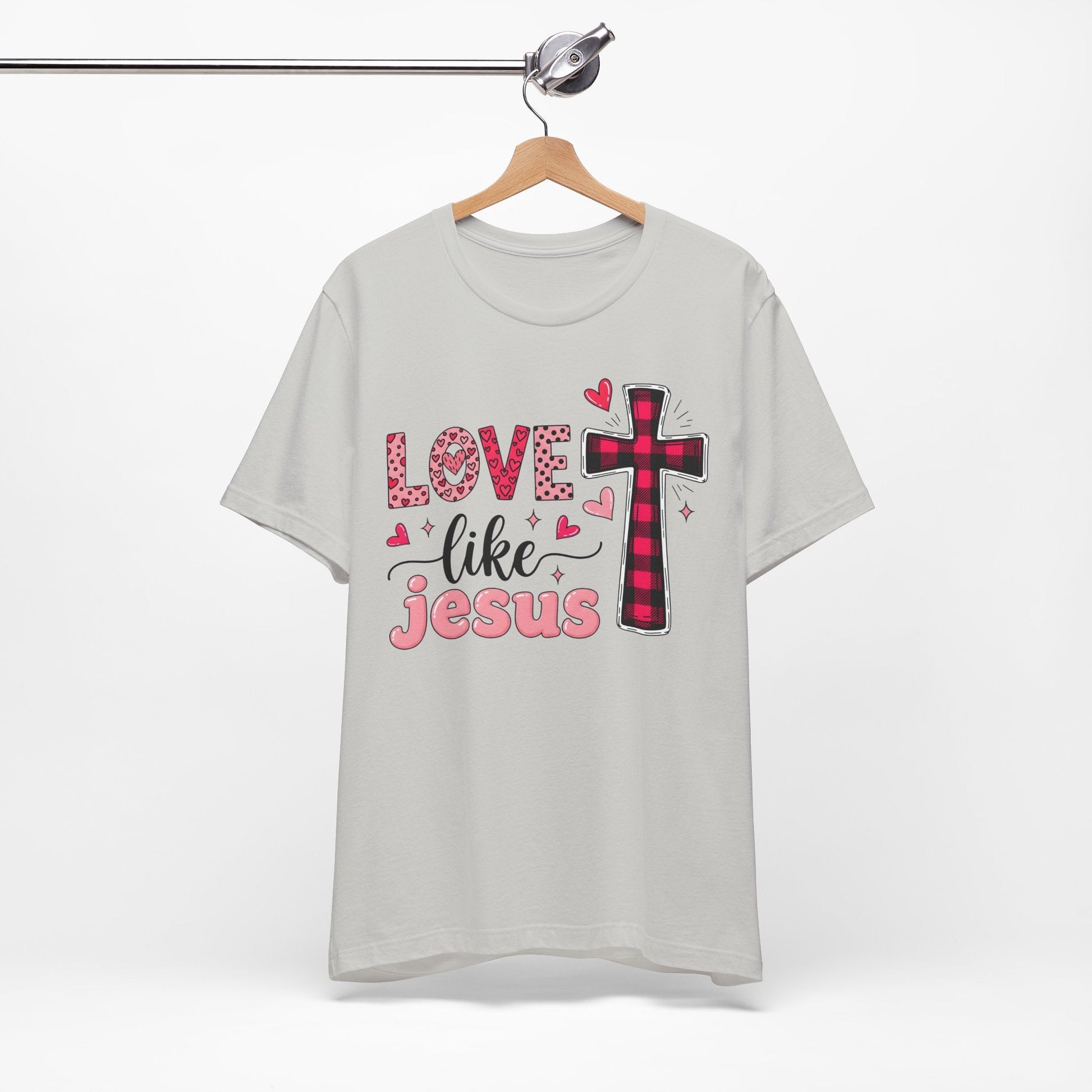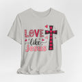 Love Like Jesus Shirt, Christian Graphic Tee for Women, Bible Verse Shirt with Cross, Faith Based Valentine Shirt, Jesus Love T-Shirt