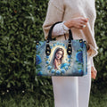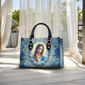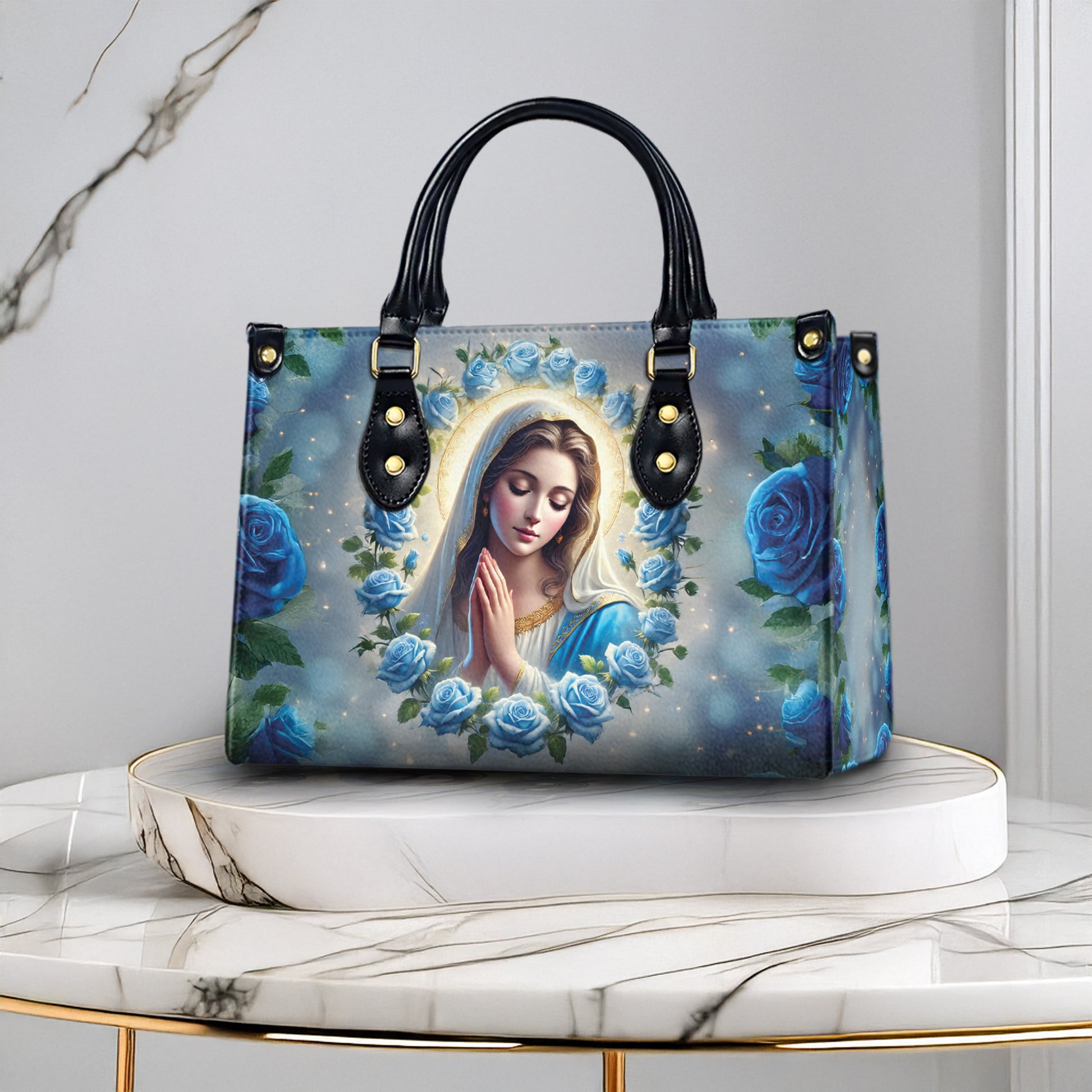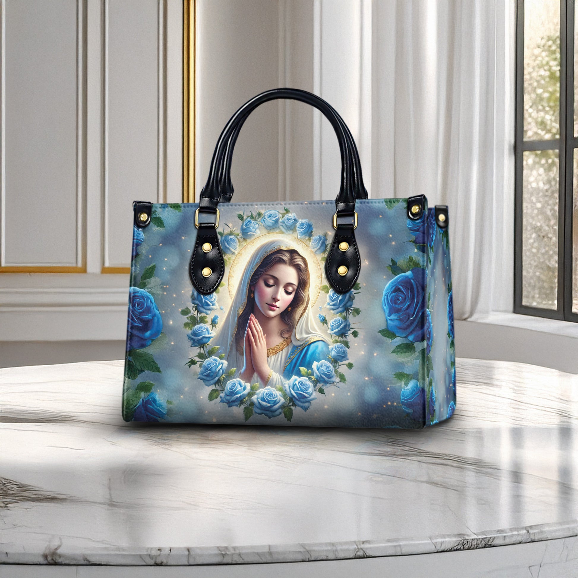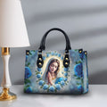 HB82-Personalized Virgin Mary Handbag β Blue Rose Christian Purse for Women, Catholic Gift, Faith-Based Religious Tote