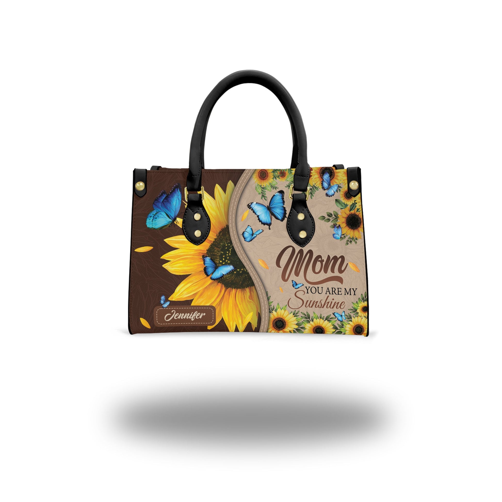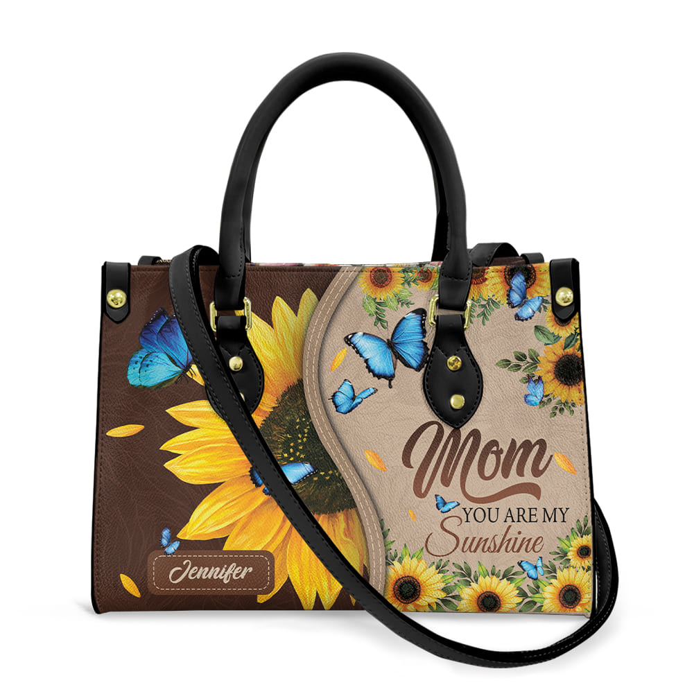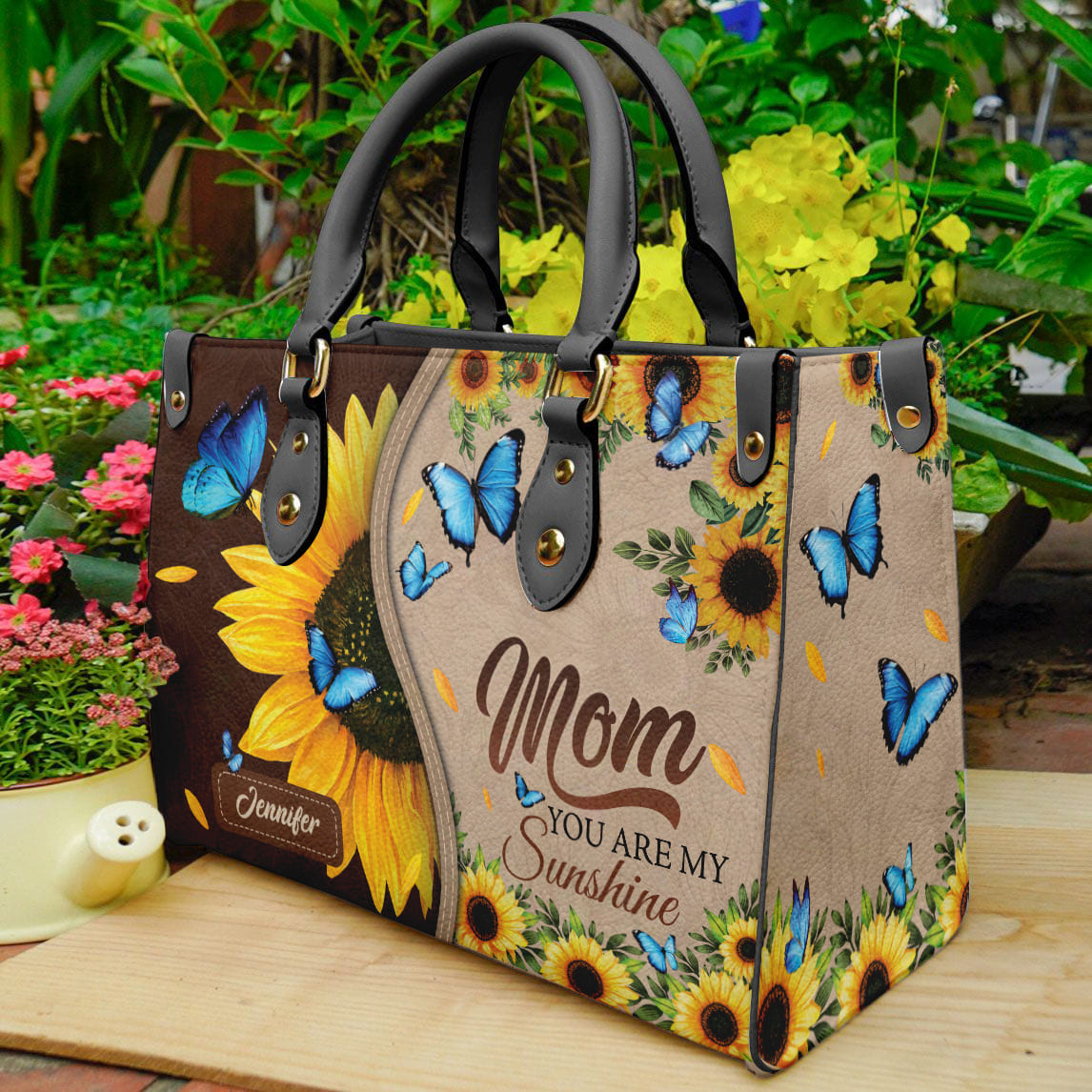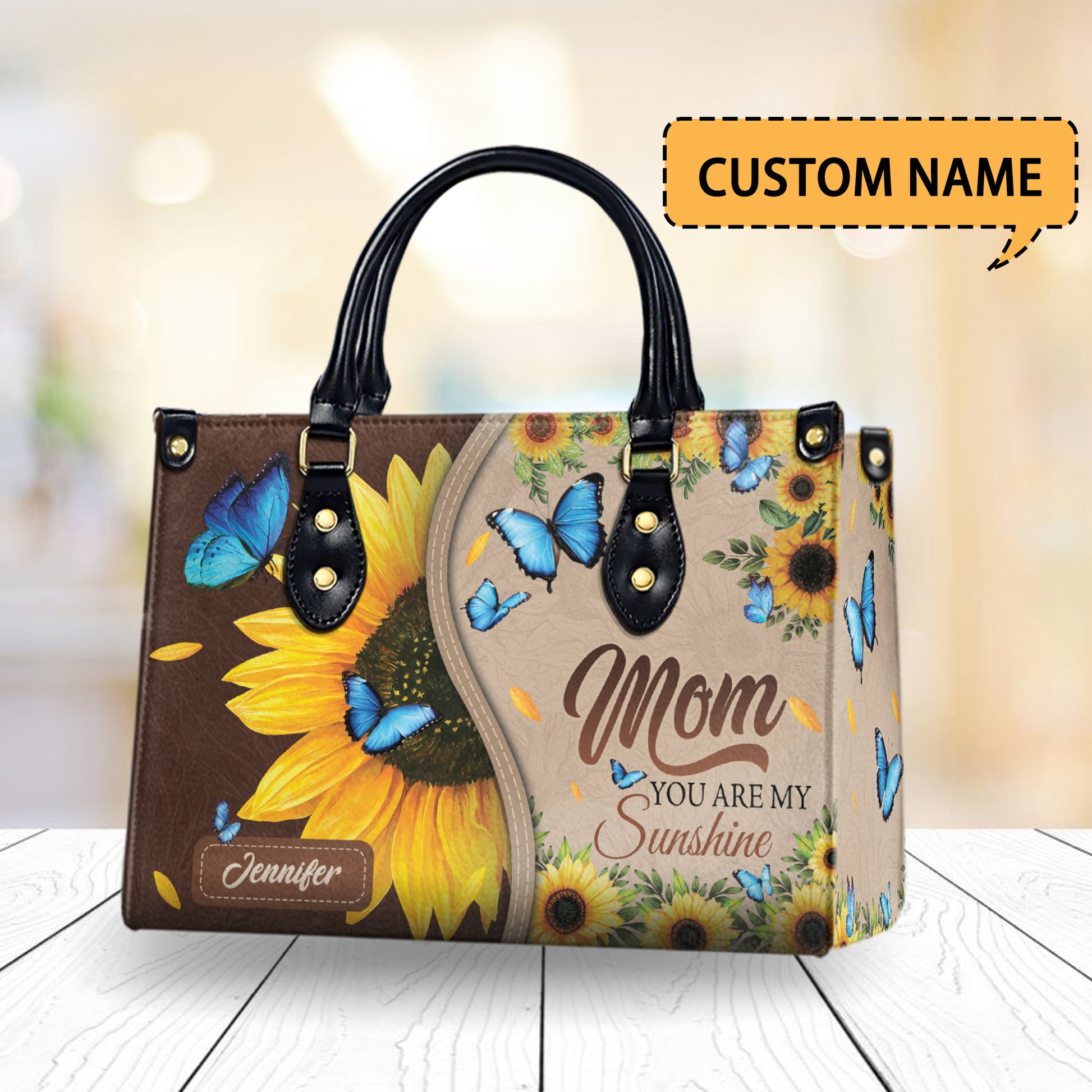 HB86 - Custom Name Sunflower Christian Handbag – Be Still and Know That I Am God – Psalm 46:10 Leather Tote Bag for Women