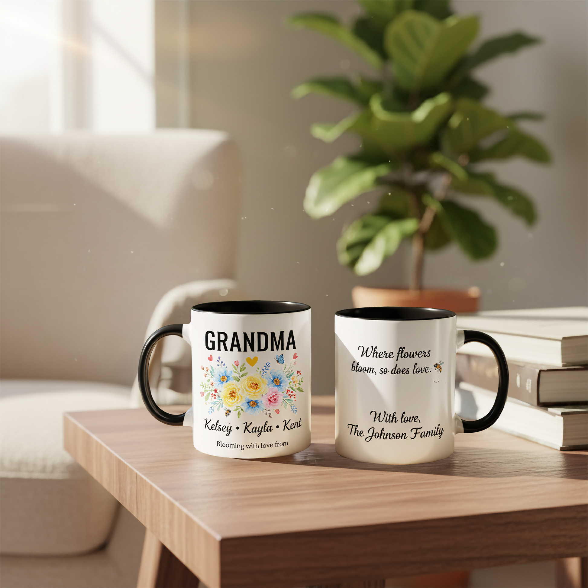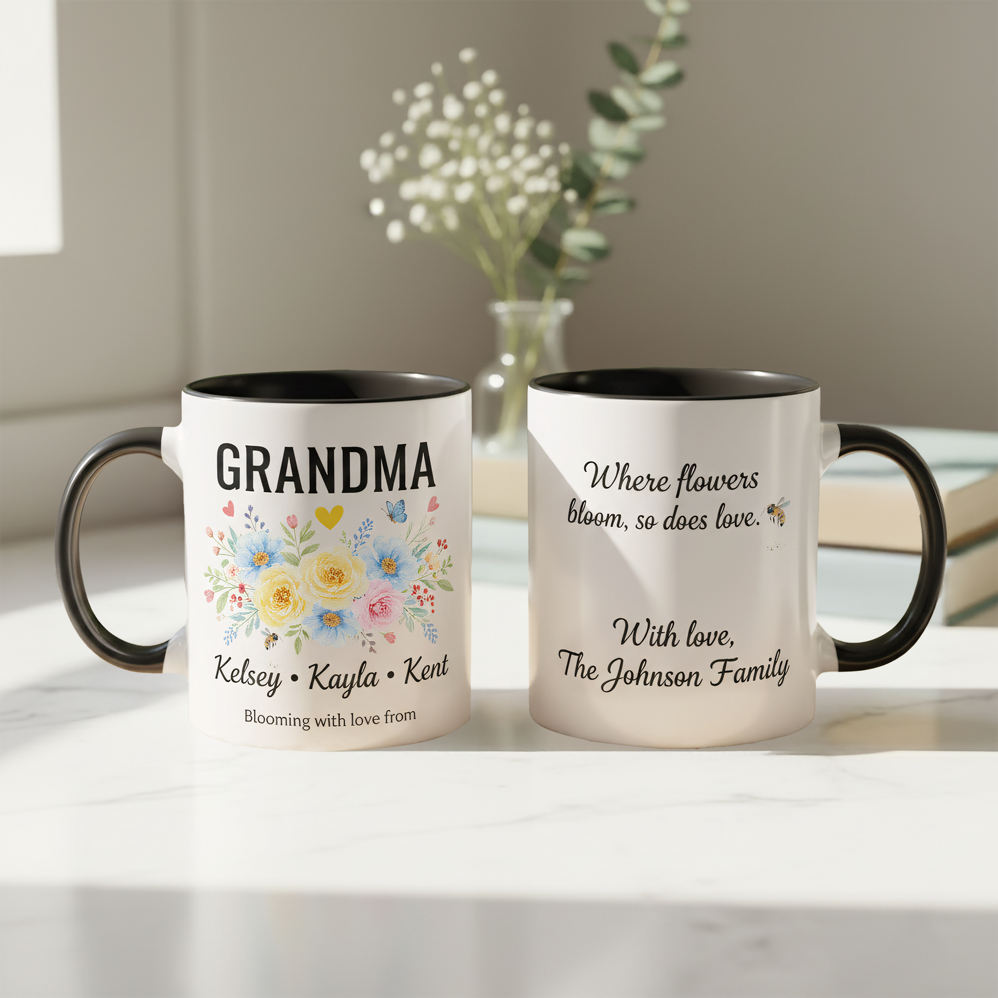 There’s something magical about the way Grandma turns ordinary moments into memories — the way she listens, the way she laughs, and the way her love quietly fills every corner of the home. This personalized floral mug was created to celebrate that gentle magic.