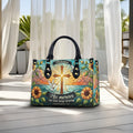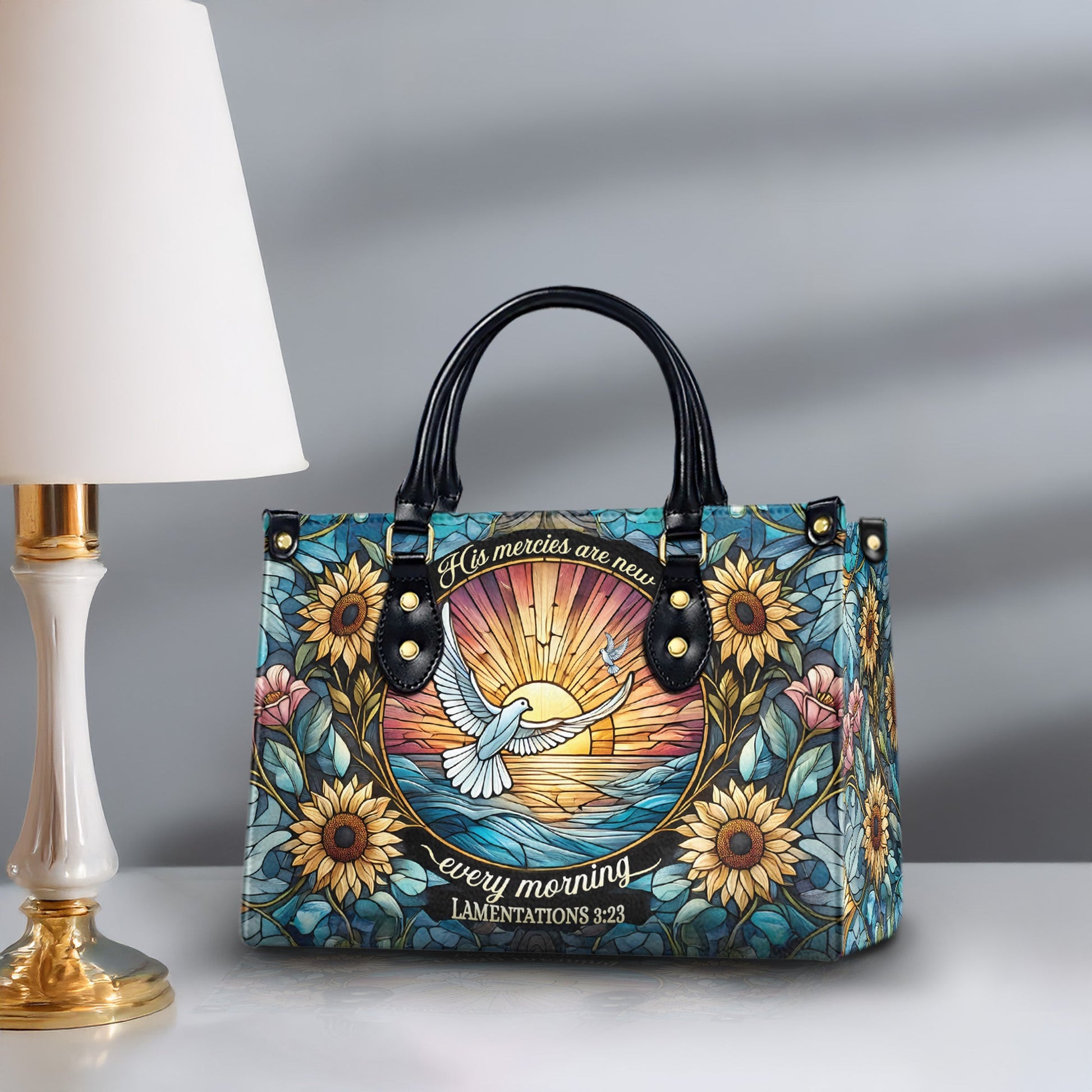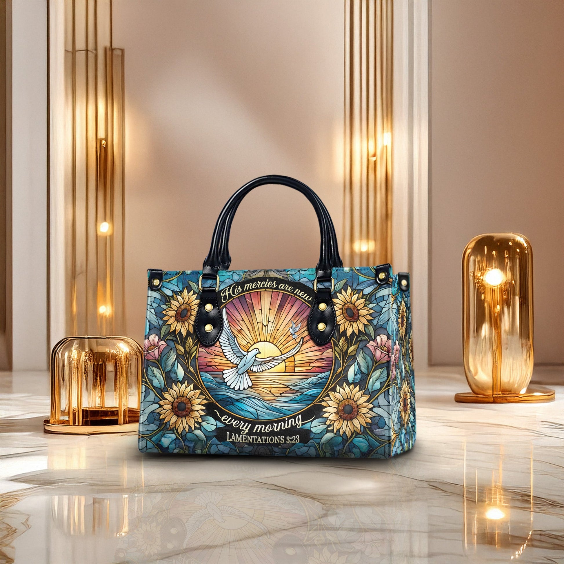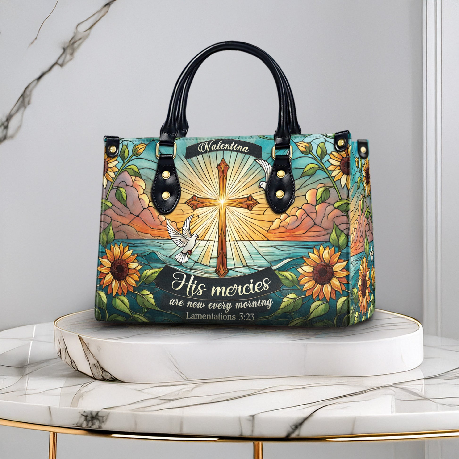 HB11-Christian Leather Handbag, His Mercies Are New PU Leather Purse, Bible Verse Tote Bag, Faith-Based Gift, Floral Sunflower Handbag for Women