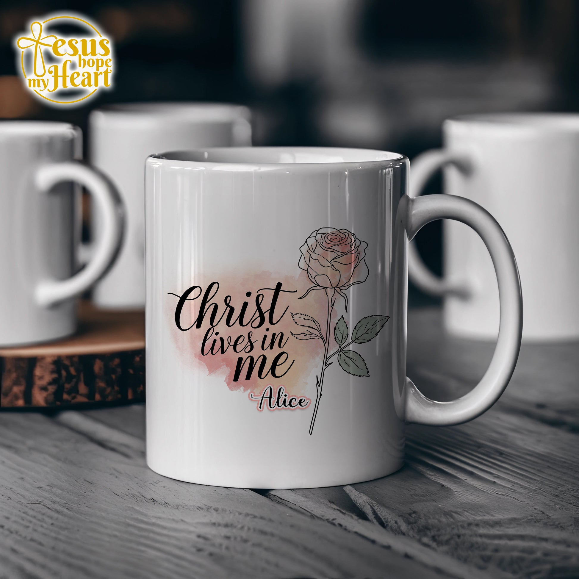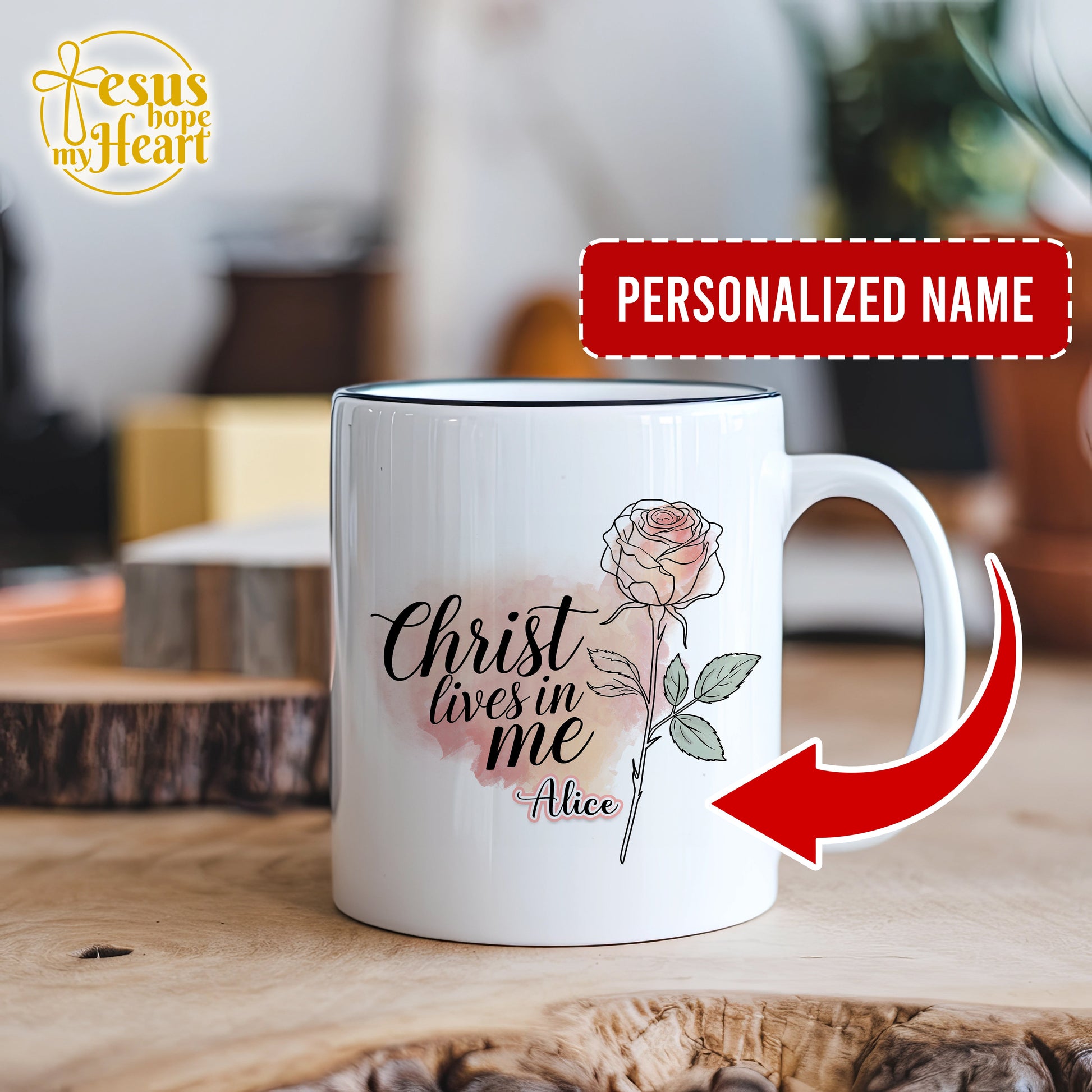 Personalized Christ Lives In Me Mug, Christian Rose Flower Cup, mother gift, pink mothers day present, wife for sister, birthday gift