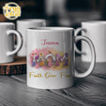 Celebrate a mother’s strength, beauty, and unwavering faith with this gorgeous Personalized Mom Mug. Featuring her name, delicate floral lettering, and the uplifting message “Faith Over Fear,” this custom mug is the perfect reminder of who she is in Christ — brave, beloved, and deeply blessed.