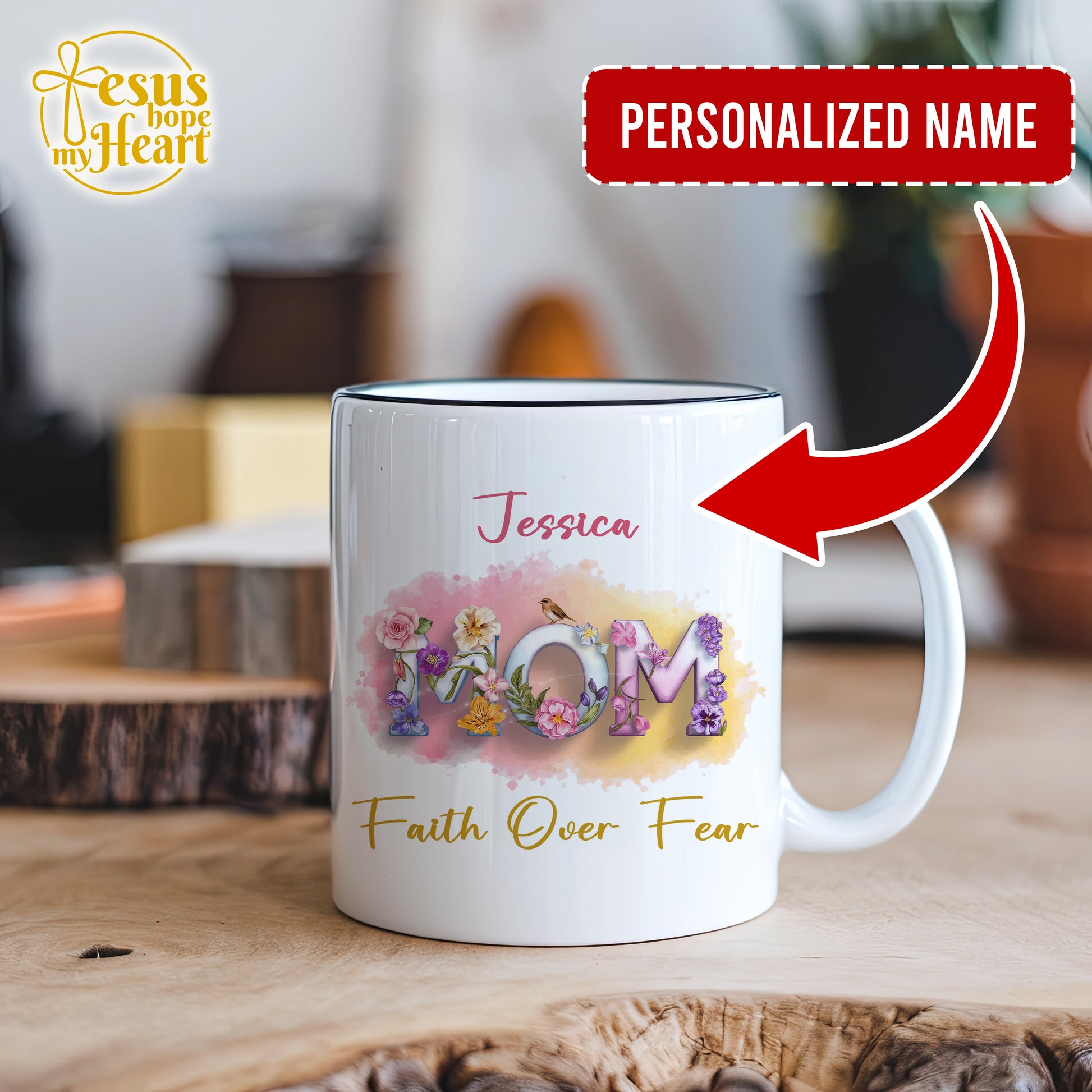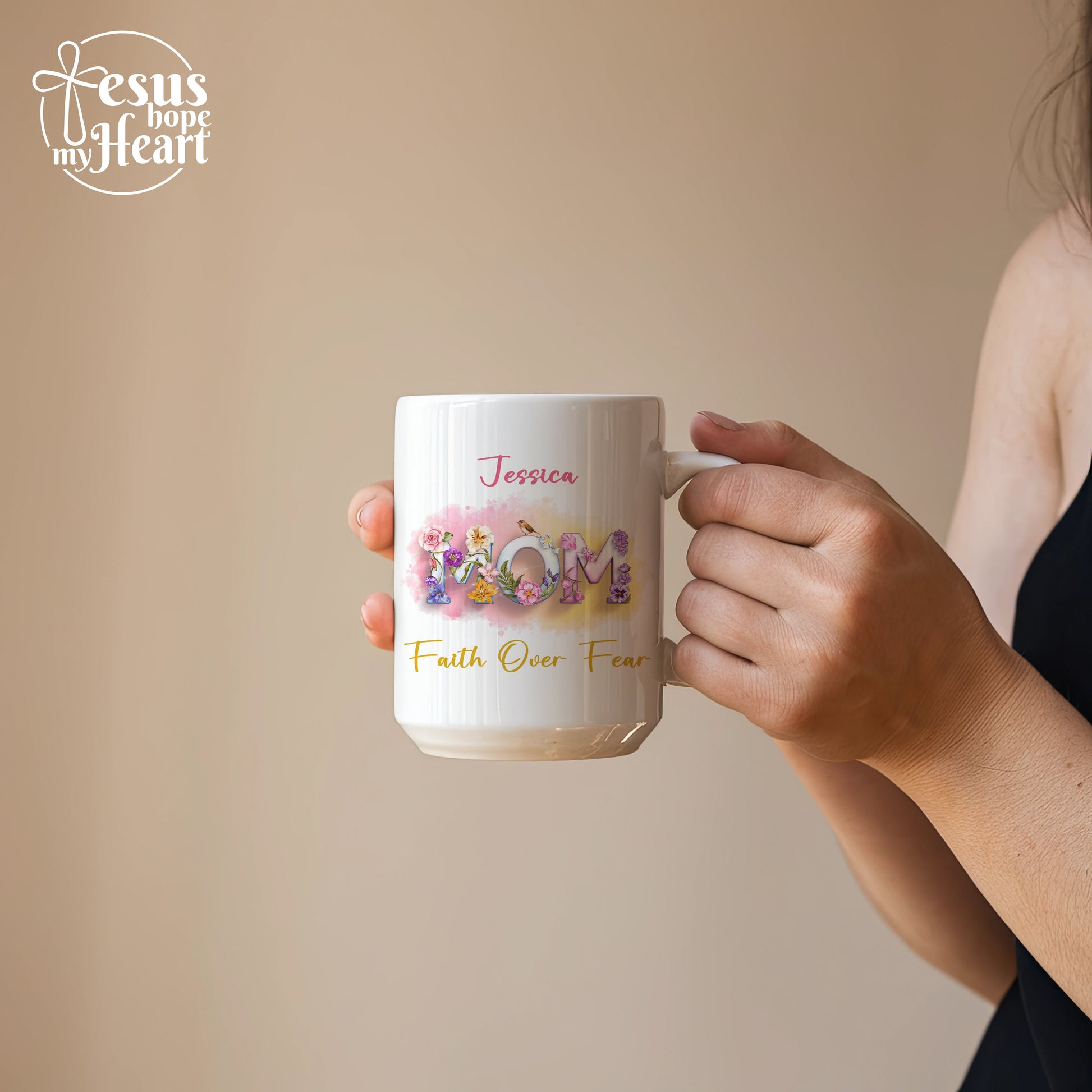 ✨ Personalized Mom Mug – Faith Over Fear – Christian Gift for Mother’s Day