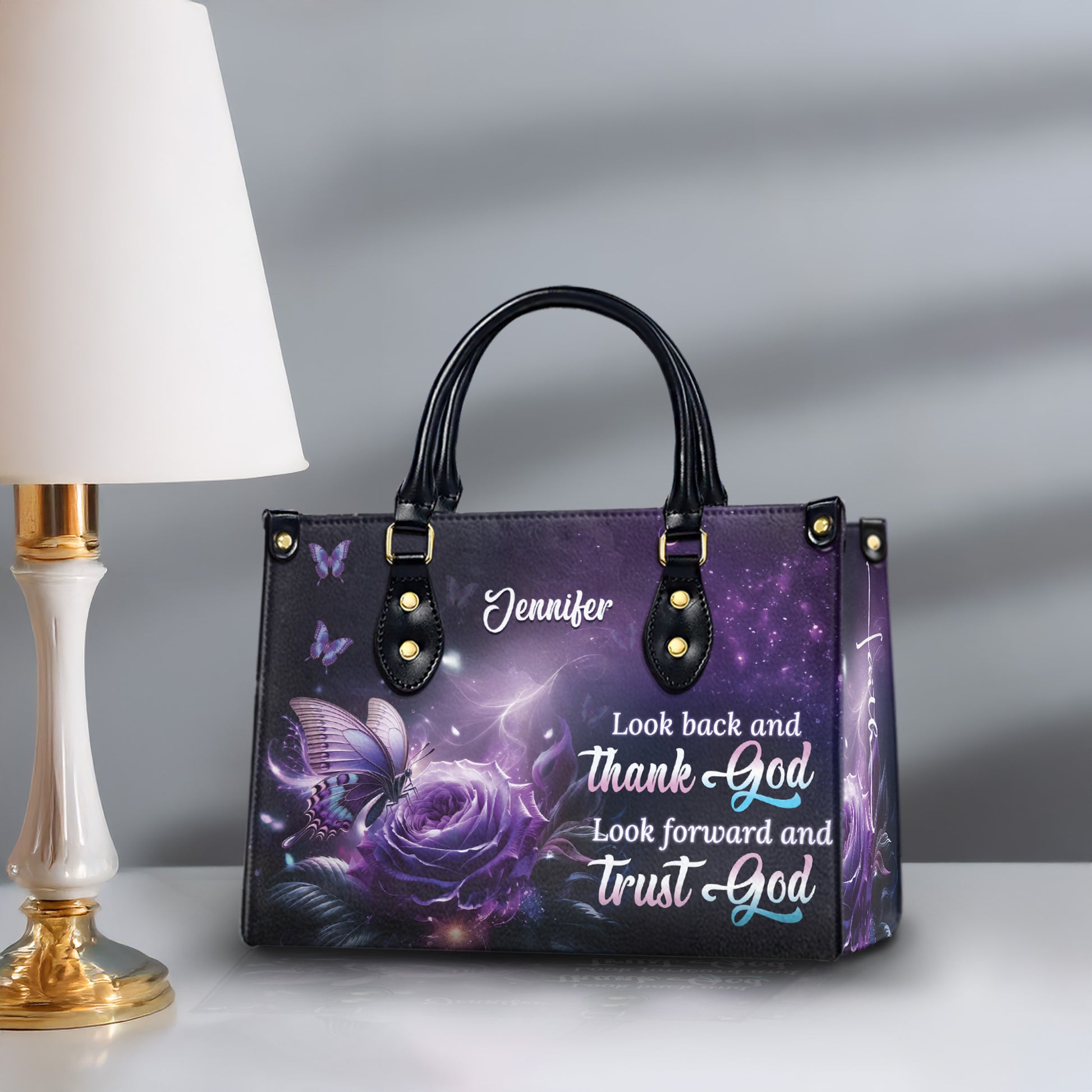 ✅ Faith-Inspired Gift – A meaningful handbag featuring the heartfelt message "Look Back and Thank God, Look Forward and Trust God", making it a perfect reminder of faith and gratitude.