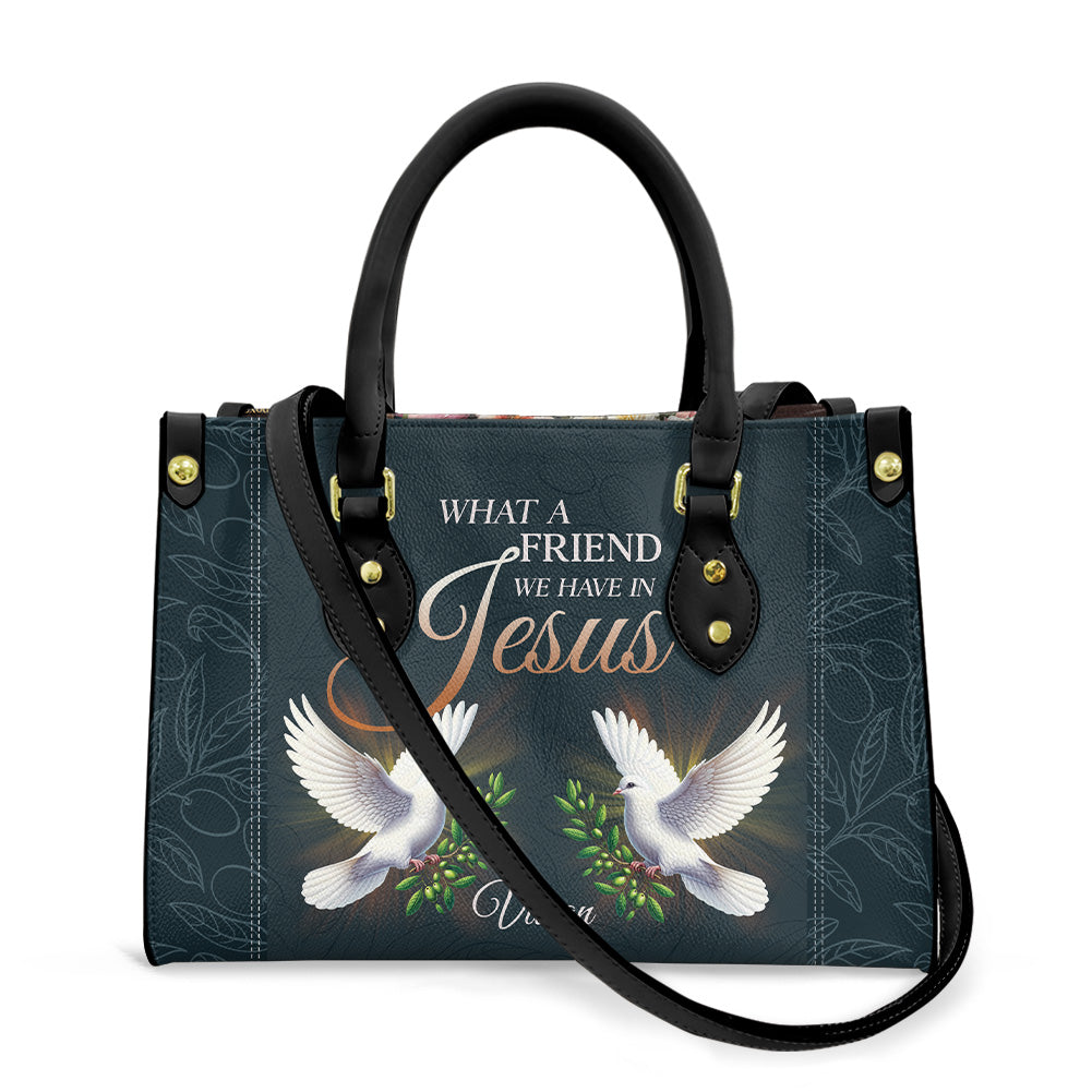 HB96 - Personalized Christian Handbag โ What a Friend We Have in Jesus with Doves | Custom Name Faith Purse for Women